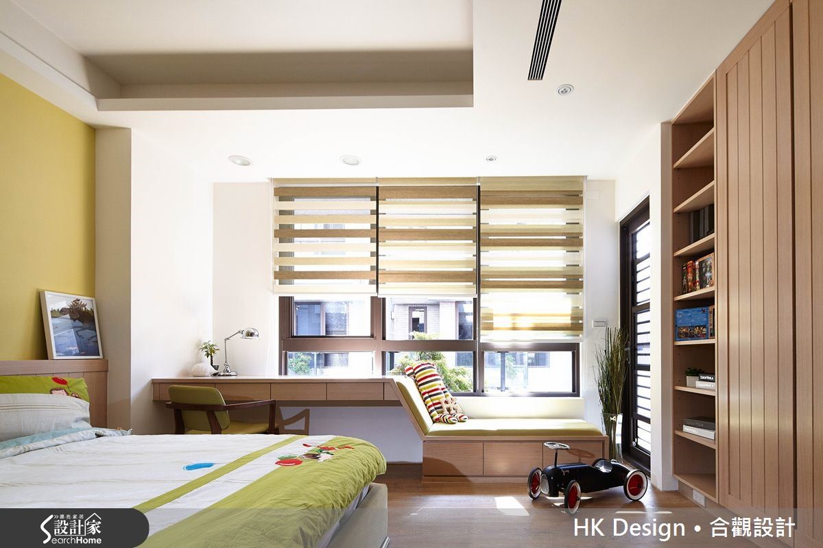 为了让自己的孩子能够在明亮宽敞、温馨舒适的空间中生活。设计师为这户座落于台中市南区的空间,以自然材质打造出舒适的环境,提供下一代更好的成长空间。【高冷墙面搭暖色家具,增添暖度】客厅运用大面积的落地窗,创造明度,并结合清水模、皮革沙发、毛皮地毯和暖黄灯具来增加空间暖度。客厅、餐厅和厨房采用开放式设计,使视觉延伸;梯间则利用浅灰色透光的楼梯扶手,使室外光线能够毫无屏障地洒落于室内。主卧房同样是以大片落地窗面引光入室,并用粉灰墙面、浅绿沙发、黑白格纹抱枕、实木地板和旋转电视架等素材。次卧的大面采光窗处分别设置书桌和飘窗,另外以拉门区隔出更衣间,除了有具收纳功能的木质抽屉柜外,还用铁件设计了能够承重的衣物弔挂区。