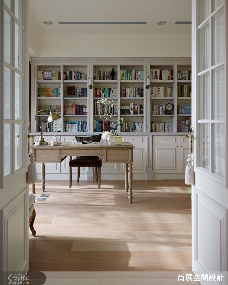汉普顿风的居家在家具的挑选上相当讲究,空间中的家具往往耐用持久,展现历久弥新的质感。因此,本案的书柜特别采取仿旧处理,并搭配复古桌椅,赋予深刻的人文氛围。