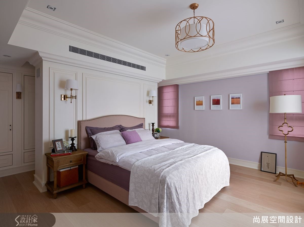 传统观念总认为居室数量越多越好,但吴启民总监的作法却是减去不必要的房间,每个居室都能展现别墅般的开阔气度。像是本案的主卧与更衣室串联,床头墙后方便是通往更衣室的走道,扩大使用机能。