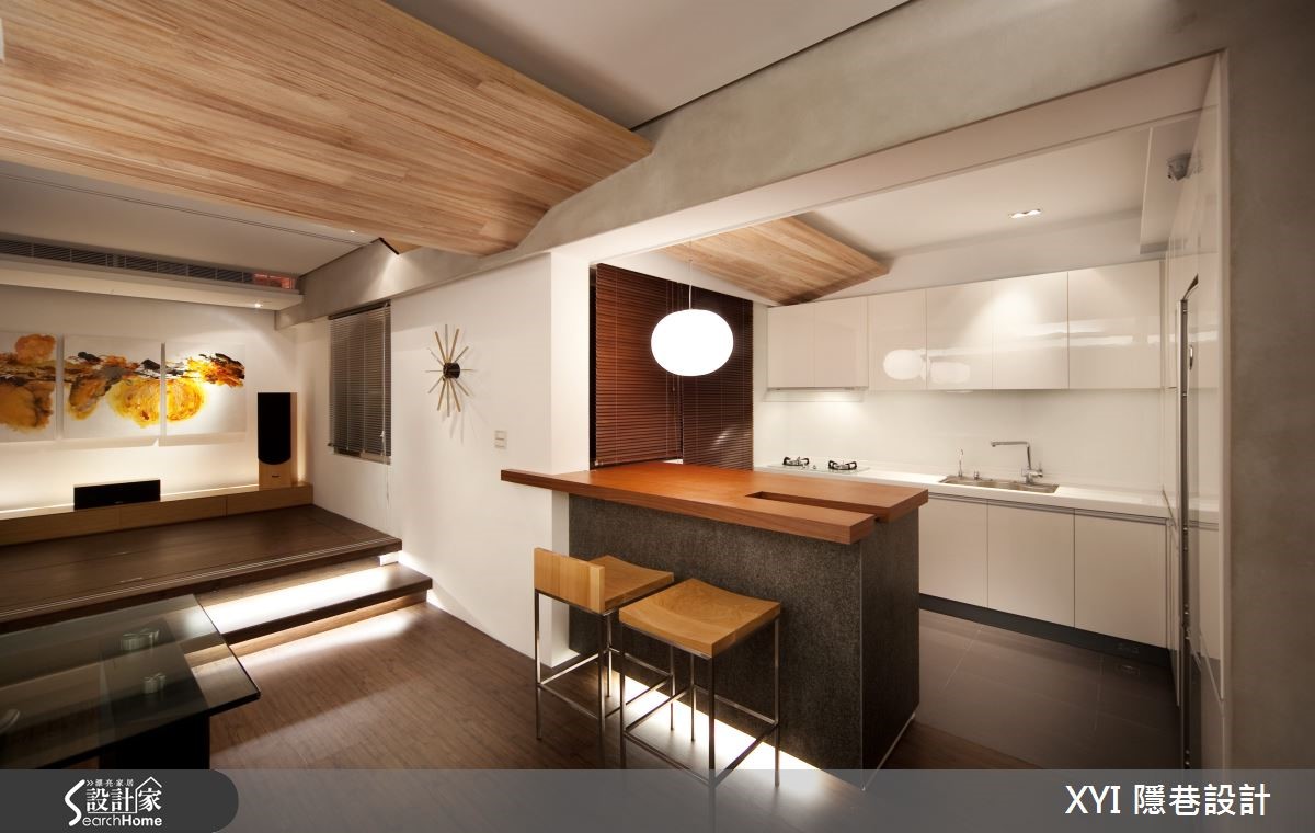 本案的这户老房,有着屋主满满的童年记忆,然而历经数十年的沧桑岁月,房屋也变得老旧、舒适性不足。为了能让这座充满珍贵记忆的老屋得以延续风华,设计师重整格局,赋予全新风貌!【开放设计,还原明亮好采光】设计师表示,屋案本身有着三面通风采光的优良条件,但却因为内部原有格局规划不良,使采光进驻的路径被遮蔽,加上高度较低,使空间显得较为阴暗,而生活动线分配也不够流畅,需从整体格局上进行改善。设计师重新以开放式手法来规划老屋格局,空间一分为二,客厅及餐厨仅以半高电视墙区隔,重现原有的开阔明亮。而卧室则隐身于玄关高柜后方,让公私领域的动线得以明确区分。餐厅与厨房则以吧台区分,而餐桌上方的不规则梧桐木板设计打造为视觉亮点。在客、餐厅一侧,则分别规划了开放书房和视听室;以和室概念打造而成的视听室,运用通透的推拉门设计,让空间维持开放感,而内部的架高地板也方便作为客房使用,让老屋的生活机能更加丰富精彩。