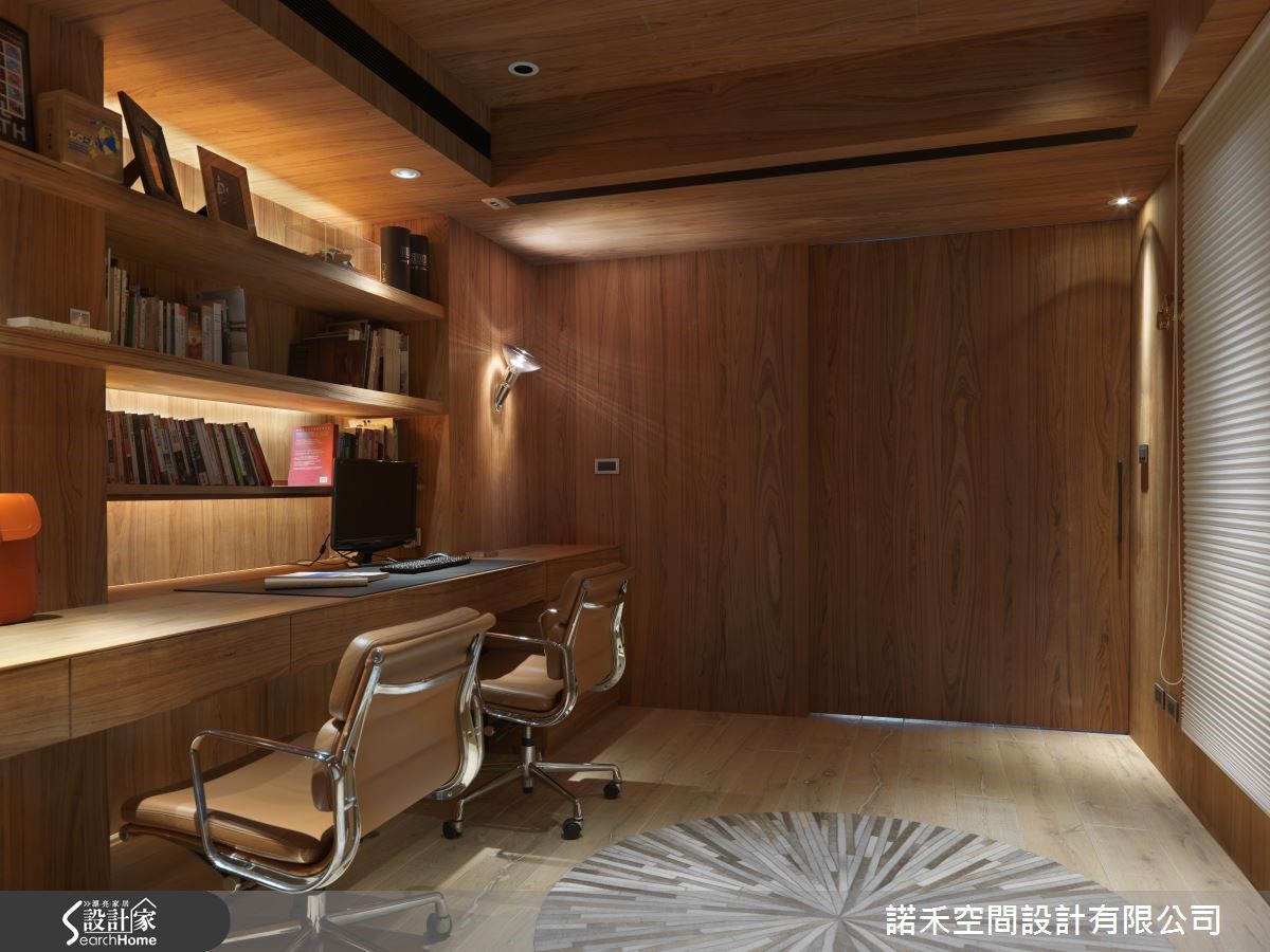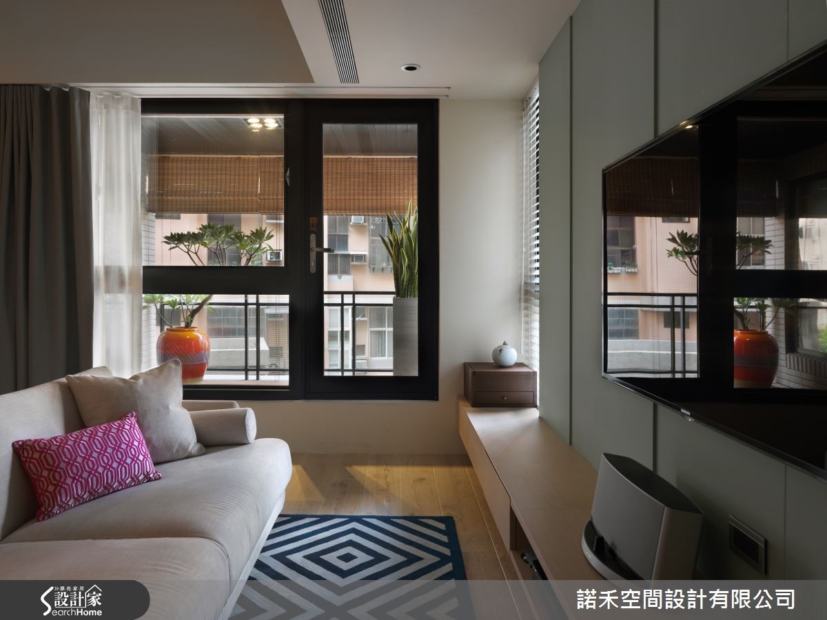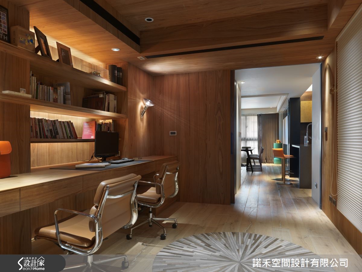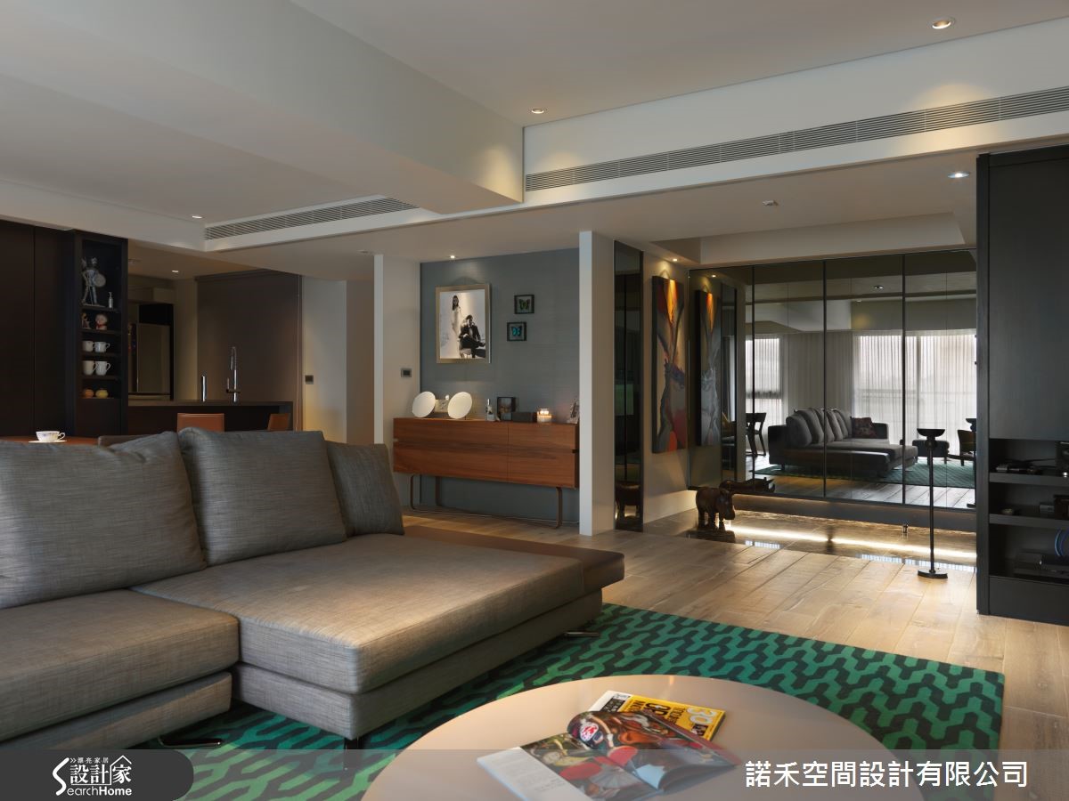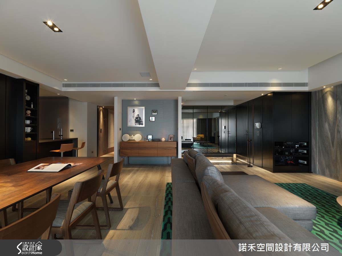 抢眼的色彩、利落的设计线条,大胆玩出现代风前卫有型的设计感,营造出充满年轻气息的大空间,跳脱现代风给人冷调的刻板印象,打造出都会人士所梦想的好宅。【简约线段,营造大器个性】290平方米的宽敞空间,透过简洁线条来铺陈,落地窗引入的柔和光线,使开放式的客餐空间,大器又不失个性风采。玄关地面选用石材,流泄出低调的奢华感,恰巧与公共空间的木地板产生区隔,营造出里外之分。【引入木石元素,展现自然意境】客厅因绿色几何图样的地毯,令人细细玩味空间的巧思,带有石材纹理之美的电视背墙,恰好与耐磨木地板,呈现出木石对话的自然意境。沙发后方则是餐厅,黑色壁面映衬色彩鲜明的画作,内敛的黑色,流露出艺廊的美学品味。【随时陪伴彼此的工作空间】为屋主所打造的书房空间,以木质建材为主,搭配上层板收纳,不仅可摆放大量书籍,更可陈列收藏品,长桌造型的工作台设计,结合书桌与计算机桌的双重设计,除提升空间的机能性,更可让屋主夫妻两人,共同阅读、工作,让生活更加甜蜜。【跳色装饰,成就美型艺术宅】化繁为简的设计线条,以自然光影创造出家的细腻表情,开放式的空间,透过设计师利用墙色与家饰品,建构出丰富的空间美感,大胆跳色的家饰软件,以及色彩缤纷醒目的画作,让家变身成为美型艺术美宅!