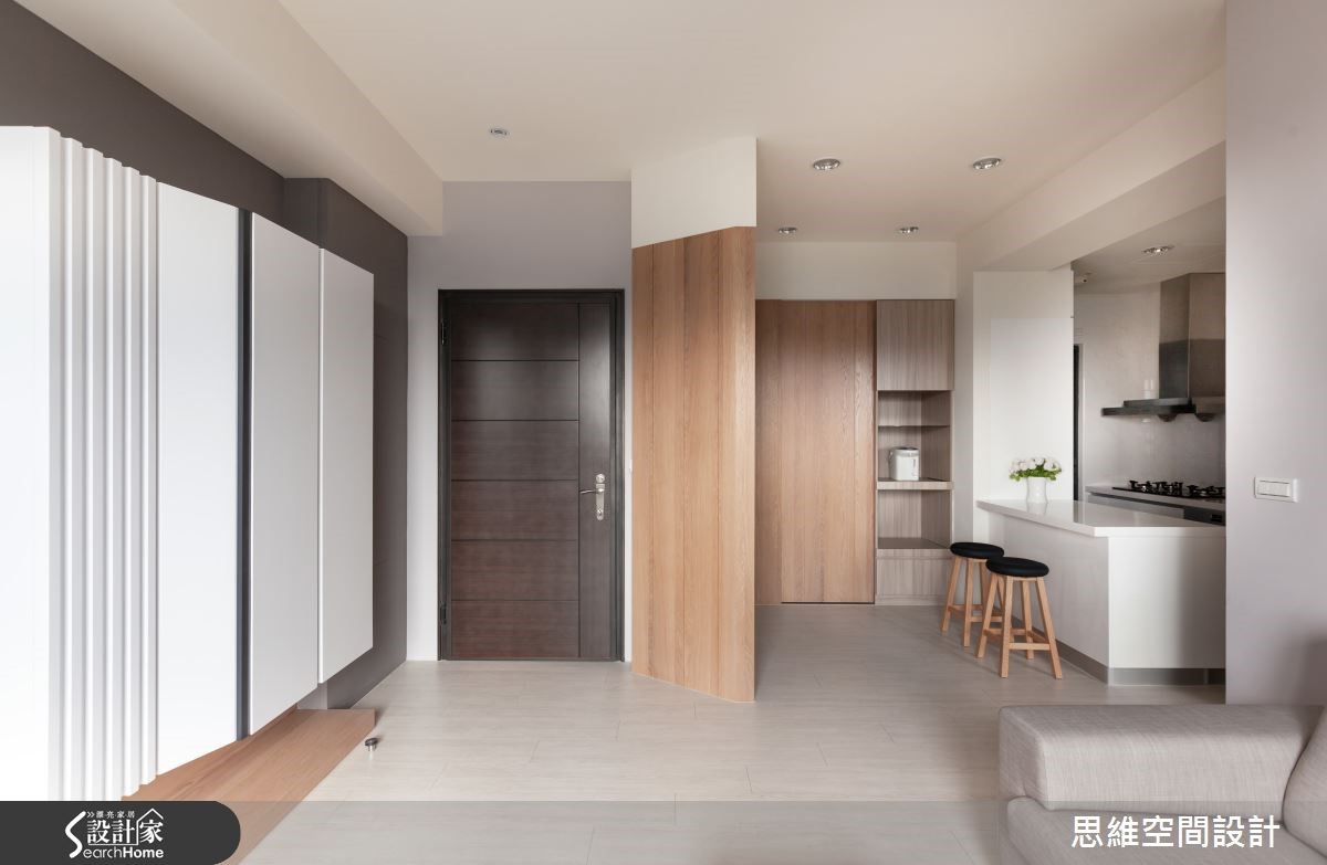 由于屋主与设计师达成良好的信任与默契,因此全权交由设计师规划风格。以清爽浅色定调,创造出舒服的现代感;同时也强调收纳空间,满足一家人藏酒、居家用品等储物需求。在3室2厅的格局下,开创出小而美的机能生活。【大地色搭配纯白,视觉更突出】走进开放公共领域,以浅色偏白的木地板铺陈全室,同时大地色的电视主墙设置纯白柜体,并加入垂直线条设计,给予墙面立体的视感。在餐厅则考虑到屋主的品酒习惯,所以做出藏酒收纳。不仅成为实用的置物空间,格状的镂空设计更增添柜体花样,形成雅致美感。主卧则因空间考虑,合并次卧,更改为专属更衣间,运用清玻作为门片材质,结合灯光与分门别类的格柜,成为美感机能兼具的设计。电视墙面则另外规划隔板与悬吊收纳柜,用以收纳杂物。空间以浅灰色作主调,展现出充满质感的生活况味。