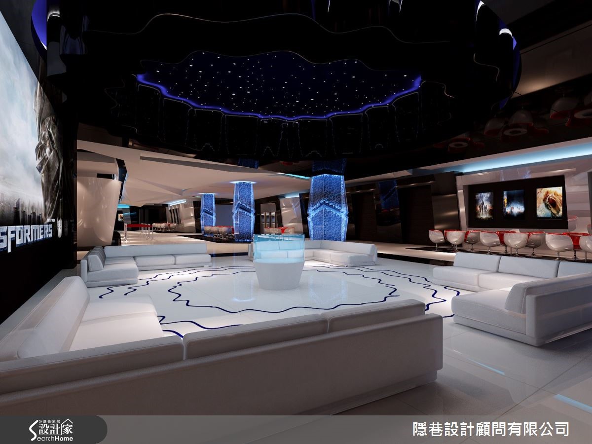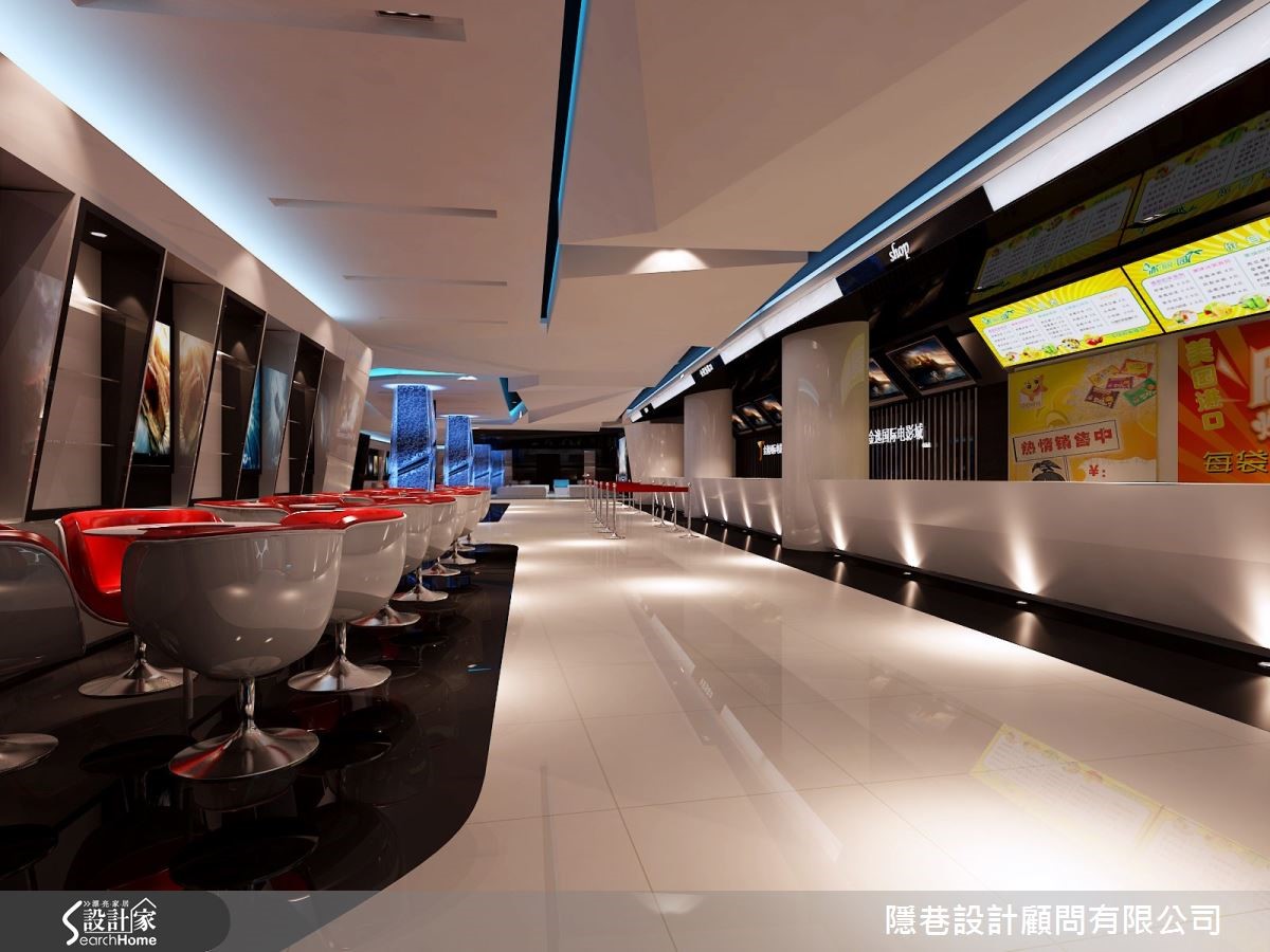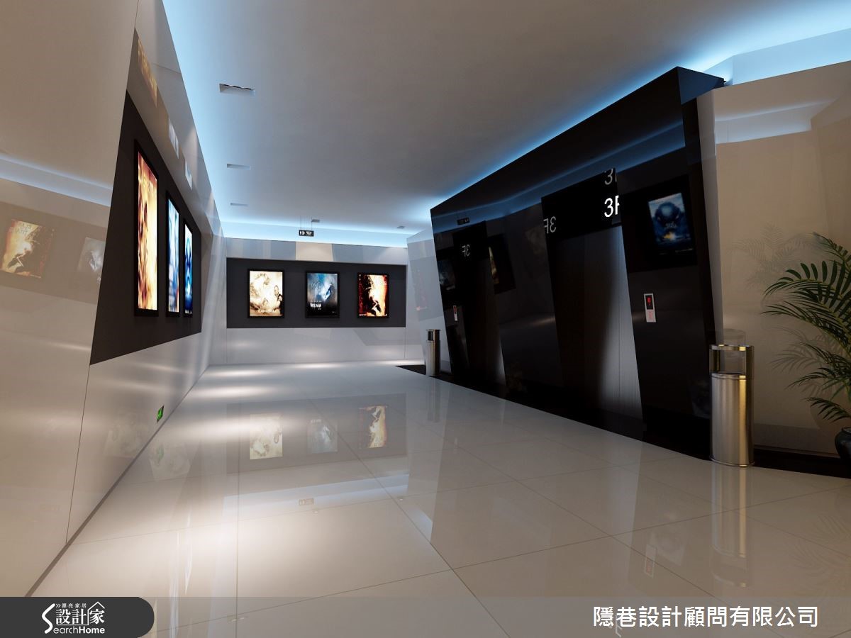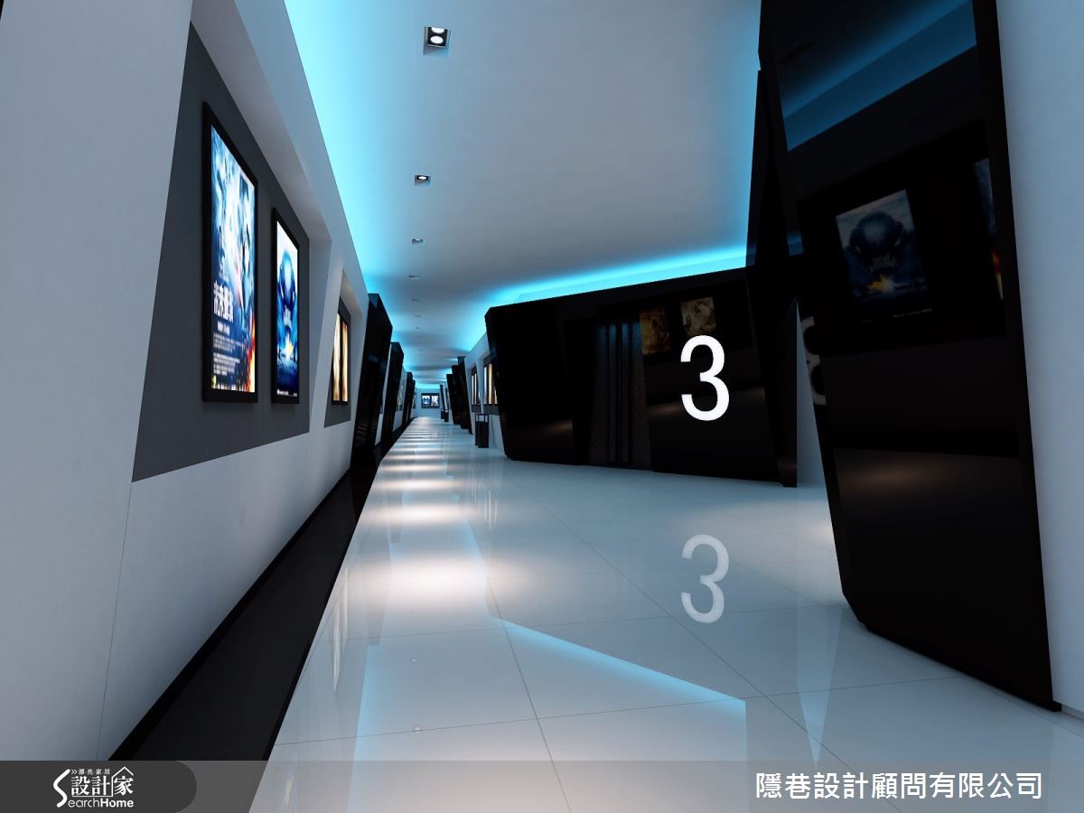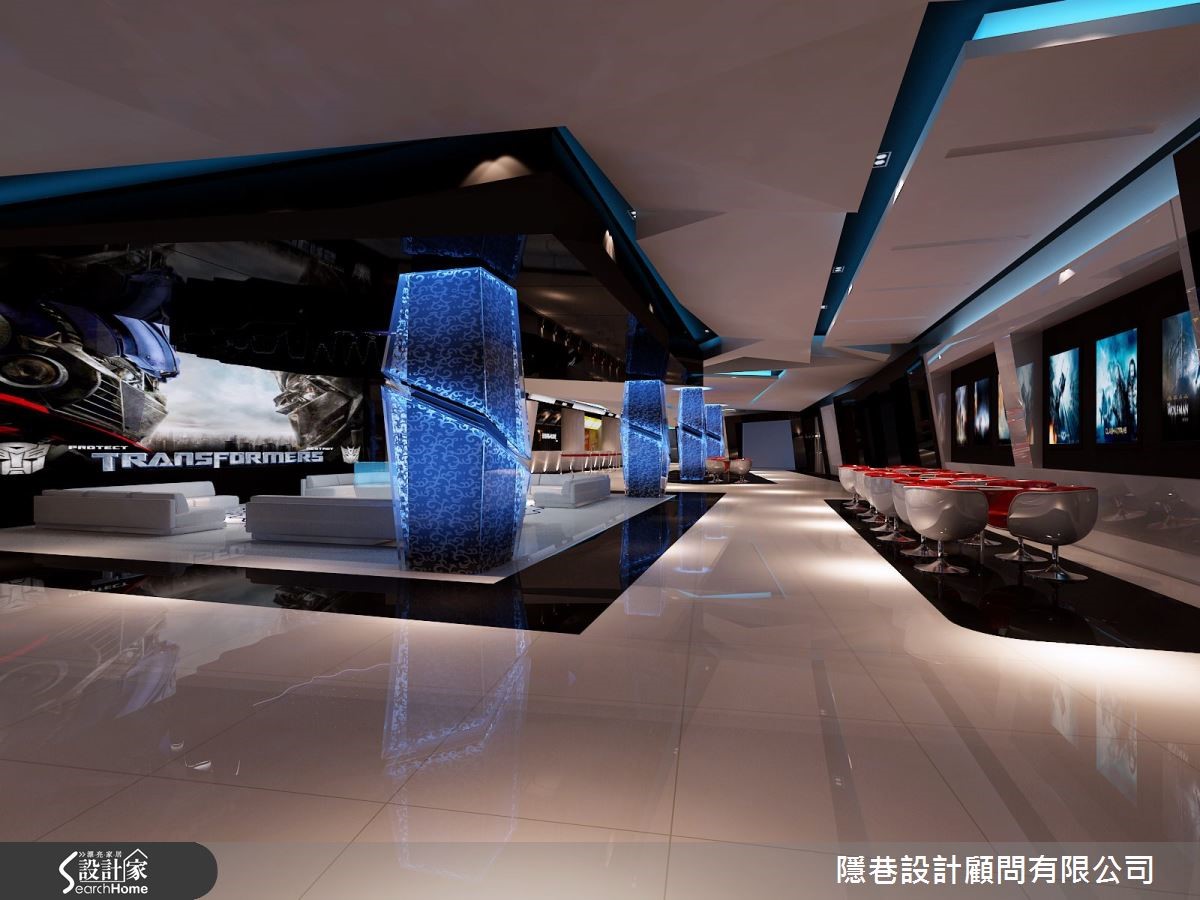 近年来星球电影大肆崛起,类似概念也蔓延到商业空间。在临沂万都兴金逸国际影城里,空间即加入电影《变形金刚》的设计概念,透过材质、色彩及格局规划,营造出外层空间的科幻感,让幻想不再局限于屏幕里,从走进影院即满足人们的想象。 【几何造型切割,打造未来感】位于商场的影院,因考虑到动线人流问题,设计师做出格局规划,所以将售票大厅安排在中央位置,两侧则各为不同的影厅,藉此控制影院观众散场的人流密度。同时在天花板做出不规则立体造型,以三角状的几何切割线条,建构出未来感的空间氛围。而在大厅等候区内,则陈列白色长沙发围塑出一方形领域,以玻璃材质包围结构柱,搭配宛如虫洞的银河造型天花,创造出维妙维肖的太空场景。进入影厅的回廊则以黑色镜面作为墙面材质,运用黑白对比为基调,融入不规则的色块切割,营造强烈的视觉冲击。