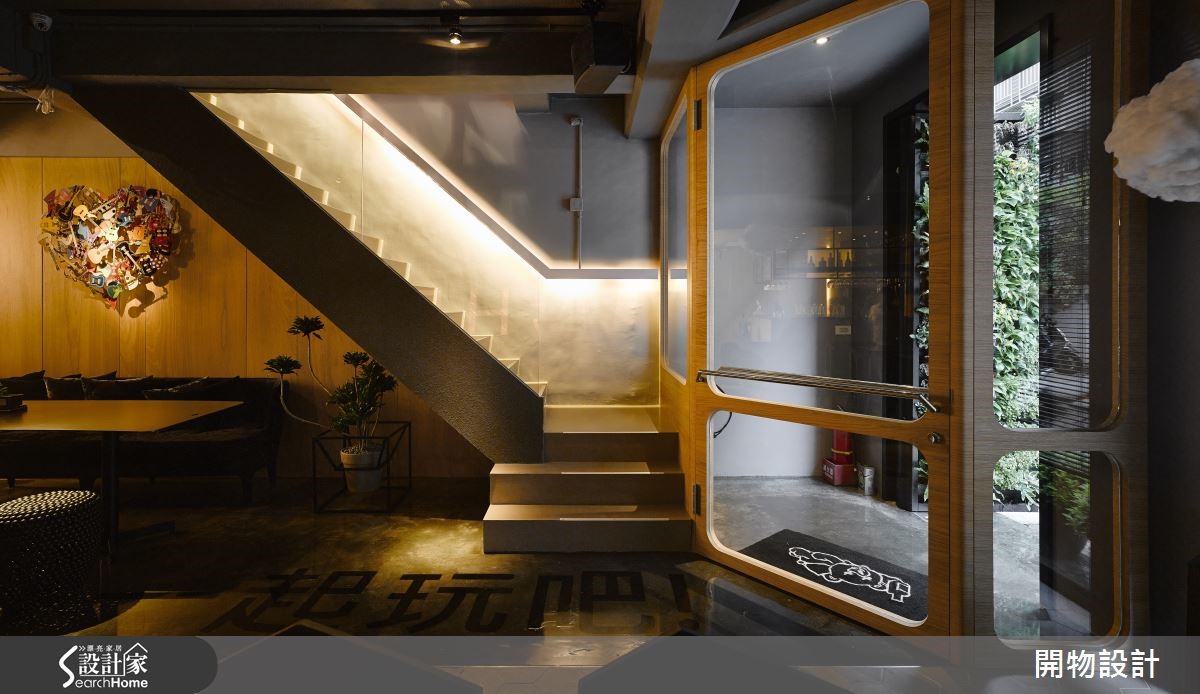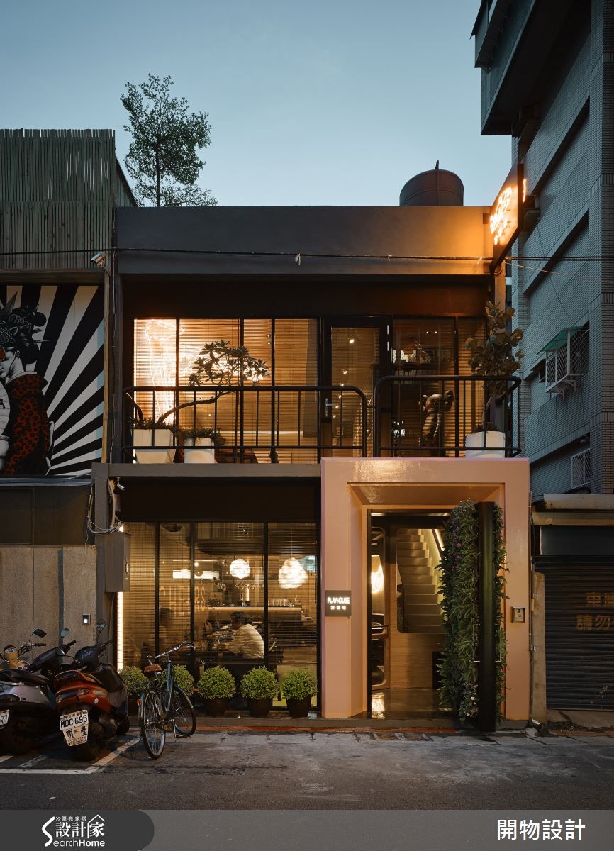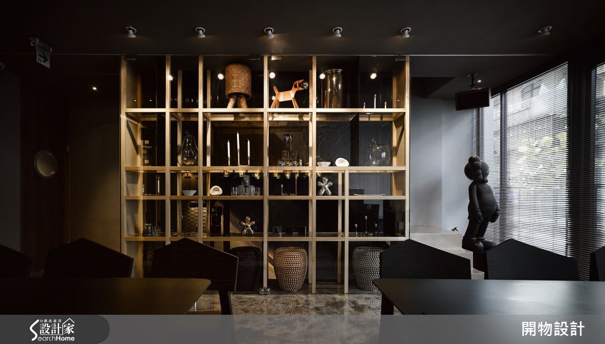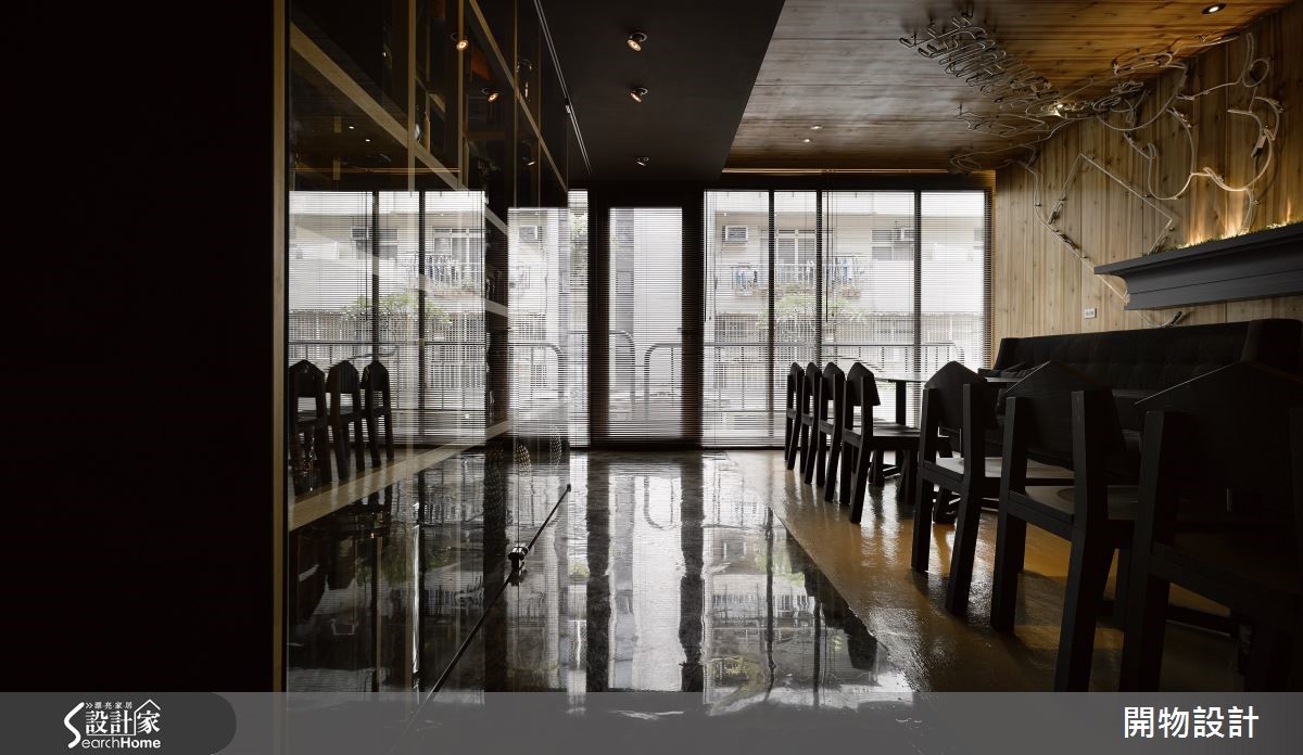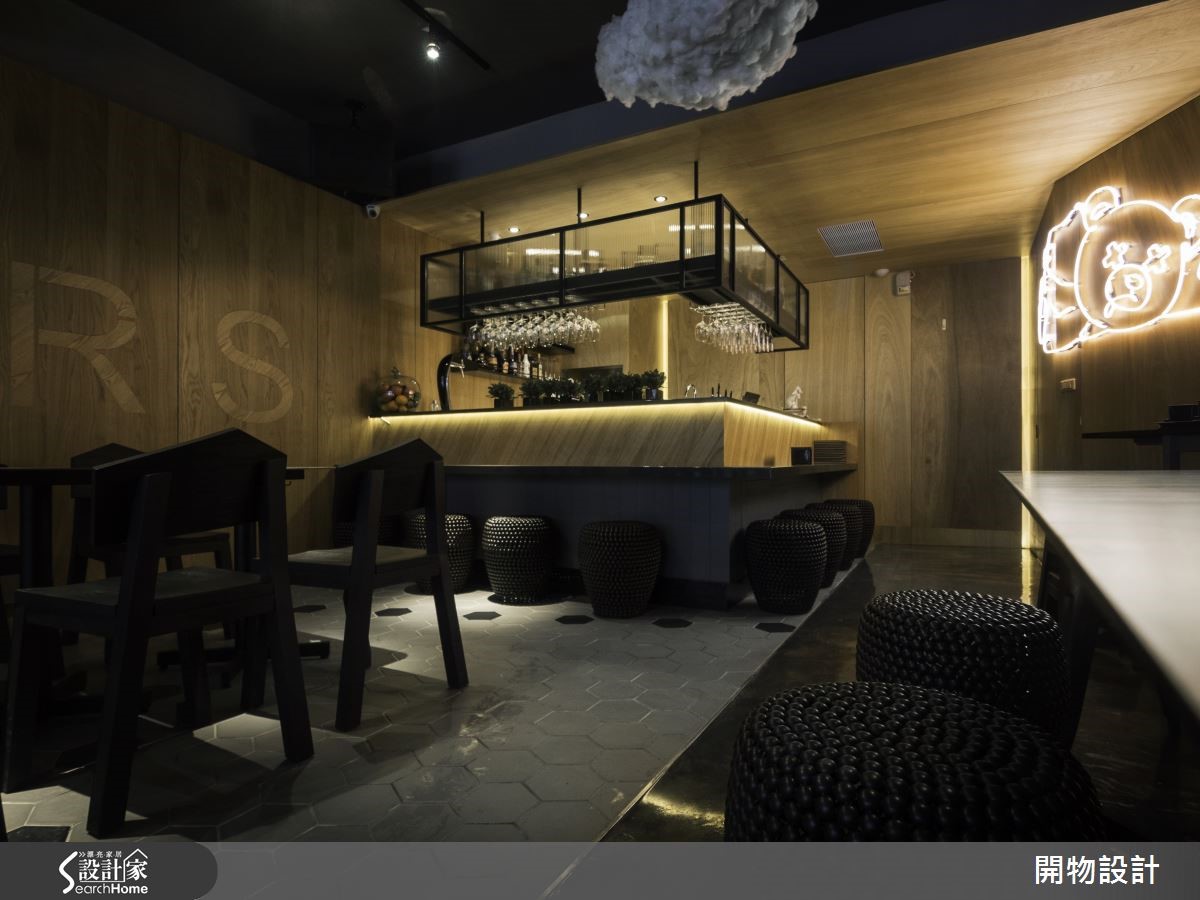 由三位型男开设的餐厅"家家酒",隐身于台北市的巷弄里。店名源自期望带给客人回"家"的轻松自在,搭配好的"家"具,提升生活品味;再来点好"酒",打造放松的用餐体验。【利用不同符号增加空间视觉】设计师把潮流元素、实木材料等融入设计中,同时将符号文字结合光影,成为店内令人深刻的独特标记。白天,这里是充满理性氛围的空间;夜晚,则摇身一变成为感性小酒馆。建物为两层楼规划,大面清玻璃外观,向外传递温和的光影画面,并采以粉色门框搭配绿意植栽,形成引人入胜的城市景观。走进店门口,地坪与墙面以"一起玩吧"、"CHEERS"符号开启逗趣的印象。搭配日影灯光转变,使空间弥漫一股低调的艺文气息,同时透过实木沿面串联用餐区、吧台区,搭配深色餐桌椅与餐吊柜等,展现低调氛围。天花板则在轨道灯之中垂吊一盏云朵造型灯饰。二楼空间则提供包厢空间,以木作建构墙面柜体,搭配其中陈列的展示品,形成艺术性的视觉画面。并在地面材质、清玻柜门、百叶窗帘的陪衬下,反射出光的各种变化,雕琢出空间的立体层次。