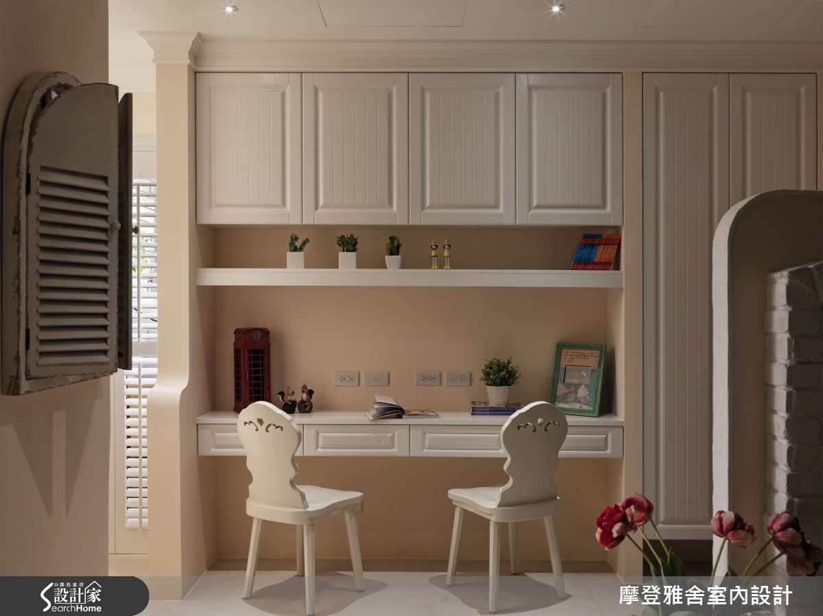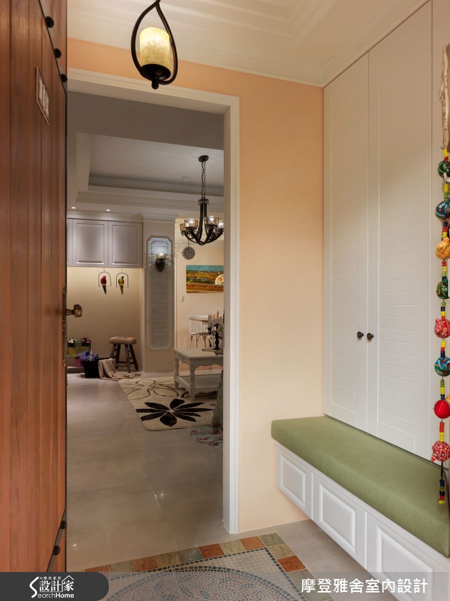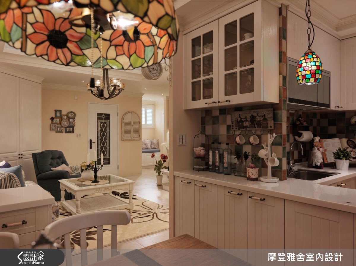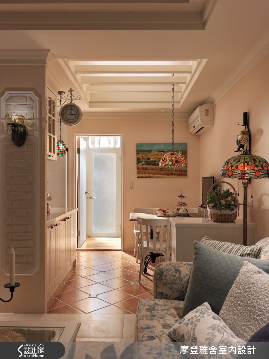 二手房也能成为迷人的乡村风小家,设计师以细腻眼光,替屋主量身打造一户满满夏日况味的居住空间,这里,有着柔软的光影与色彩,丰富但不紊乱的缤纷摆件,让小小的空间,盈满了无限的幸福。快一起走进去看看吧!【清新建材打造质朴空间印象】在玄关处,设计师以马赛克地地砖定义区域,并规划一座绿色穿鞋椅与隐藏收纳规划,开启清新的印象;进入客厅领域,则可见天花板做出挑高设定,并以文化石材质作为电视墙背景,替居宅注入质朴气息。【开放设定,让采光自由穿透】同时于柜体做出斜角切面,让居宅线条获得柔化与缓冲;延伸至餐厅领域,则以复古砖铺陈地平方米,将餐厅、厨房采开放设定,使采光可自由地穿透入内,创造温暖的餐叙氛围。【善用色彩比例,徜徉美好想象】同时让书桌结合楼梯后方的立面,成为公领域中的开放阅读空间,搭配嵌灯与窗外采光照明,开创出明亮的好感氛围;主卧则以天空蓝为整体定调,于床头上方安排悬吊柜体,将空间量体设定为白色,透过完美的色彩比例,给人一股徜徉于蓝天白云之中的美好想象!