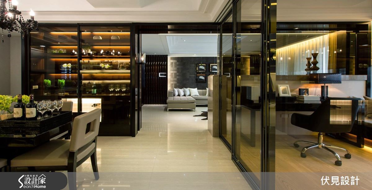 如果自己的家里能够有如酒店般的奢华又舒适那该有多好?此案屋主喜欢古典风格的氛围。因此,设计师以一种带着简单、华贵气质不拘泥于传统模式,简化繁复的古典线条,转化为高雅华贵的气韵,让居家空间在古典与现代中的融合中,展现酒店般的轻奢质感。【深浅材质对比,衬托空间层次】公共空间以皮质、大理石和进口瓷砖创造出高贵又气派的宽敞空间,天花板以古典线条来分隔出客厅与餐厅。为了提供屋主一个能享受阅读与工作的开放式空间,以深色玻璃隔断和木地板营造温暖氛围餐厅设计的机能上也不马虎,设置了许多能让屋主摆设艺术品或收藏品的空间,同时再配置舒适和谐的家具与灯光情境。让住家在当代美式风格中,再加上时尚感的家具搭配,展现出低调内蕴的华丽气质。