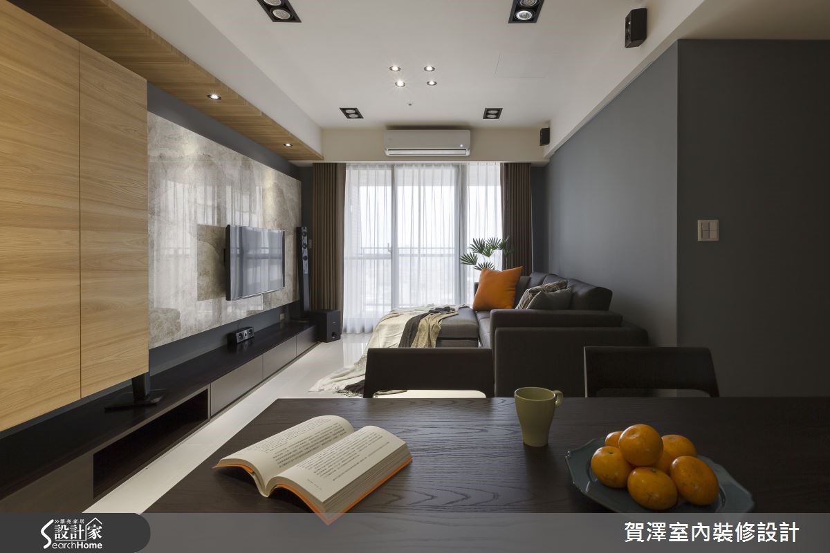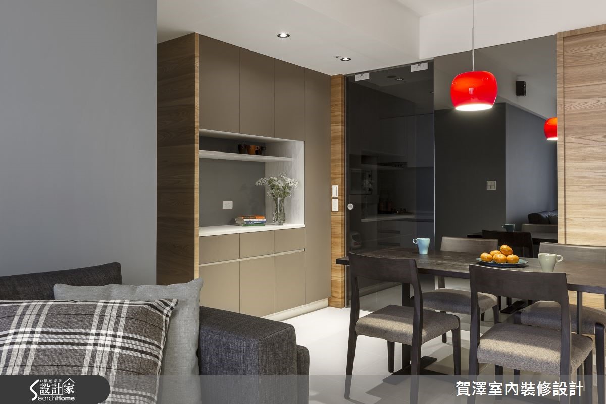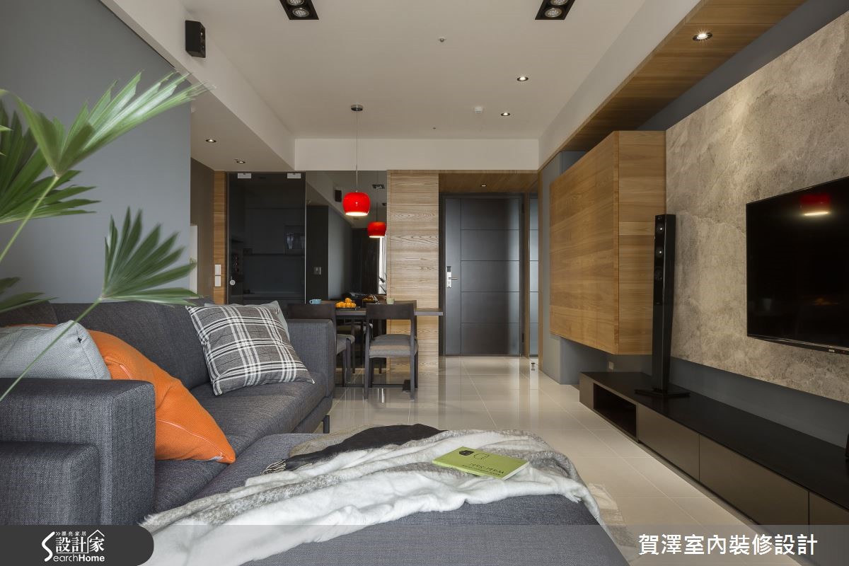 99平方米的3室2厅居宅裡,住着一对从事科技业的年轻夫妇,两人找来设计师规划风格,替空间注入现代风语彙,营造稳重的居住氛围,并佐以合宜的色彩计画与材质搭配等,完成了超乎屋主想像的惊喜规划,快一起走进这个家看看吧!【简约沉稳气度,流畅的动线导引】玄关处于墙面妆点镜面,并规划一座展示柜,开启入口处的宽阔视觉感;以木质悬吊柜体结合电视墙,形成延伸入内的动线导引,在与大理石材色块拼接下,描绘出质朴天然的立面,并选配深色软件,注入沉稳静谧之感。客餐厅採开放式规划,以一面落地窗引进丰沛的採光,搭配餐厅领域的整面镜面墙,型塑出延伸、明亮的居宅视野;卧房则以木地板舖陈,增添温馨的暖意,让床头墙以灰色定调,在花卉墙纸的铺述下,形成优雅放鬆的休寝气氛!
