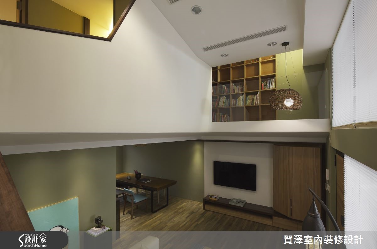 巷弄内的二手房,加入开放式格局及挑高规划,让重视家庭团聚的一家四口,可坐拥较为宽敞的公共空间,同时透过白、绿色的清新色彩计画,搭配实木材质地板等,打造温馨的森林感意象,让人一回到家,即可立即疗癒身心!【善用挑高条件,融入实用机能】跃层带来的挑高视感,搭配两层的大面积开窗,揽进美好采光与景致,同时佐以缤纷家饰添入活泼彩度;餐厨则采半开放式,以金属材质建构量体,透过镜面反射延伸空间感,注入一丝现代时尚风情;并让餐桌同时兼书房主题,打造一处工作、阅读、用餐的多功能场域。同时,透过墙面形成延展空间的错觉,在通往二楼楼梯的墙面上,刻意设计了钢梯装置,形成居家展示的平台,使收纳机能融入展示功能。卧房则以木材质堆砌床头墙,并透过顶天立地的墙面尺度,缓解天花板低矮的压迫感,型塑纾压放鬆的睡眠氛围!