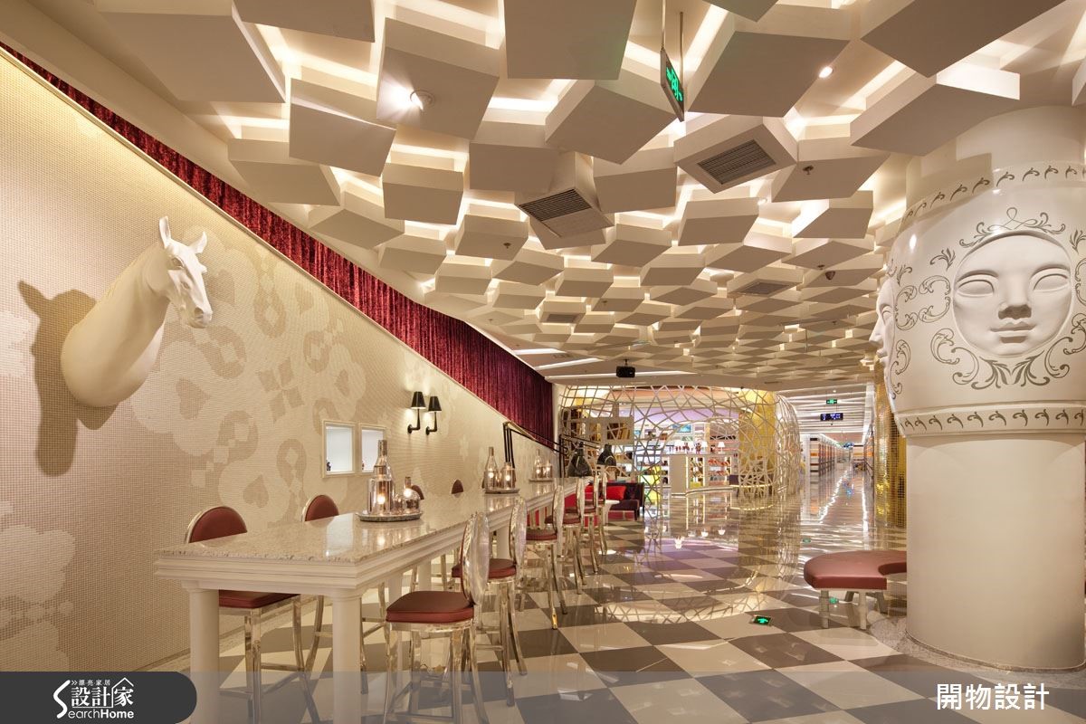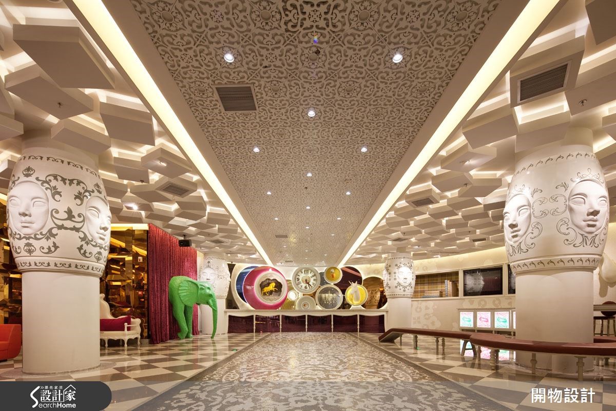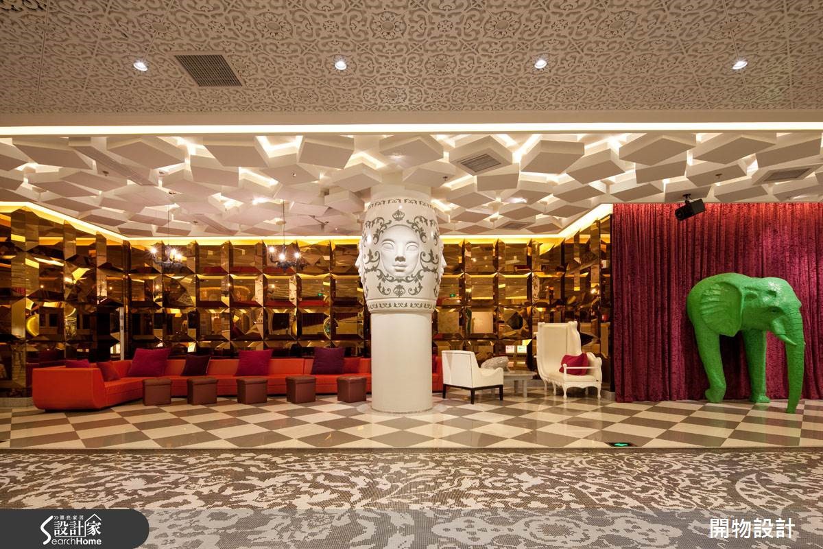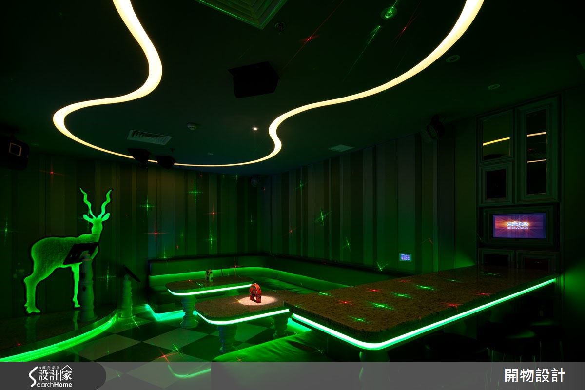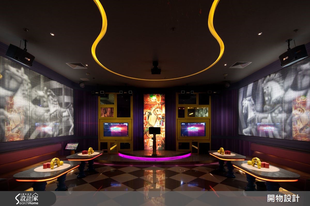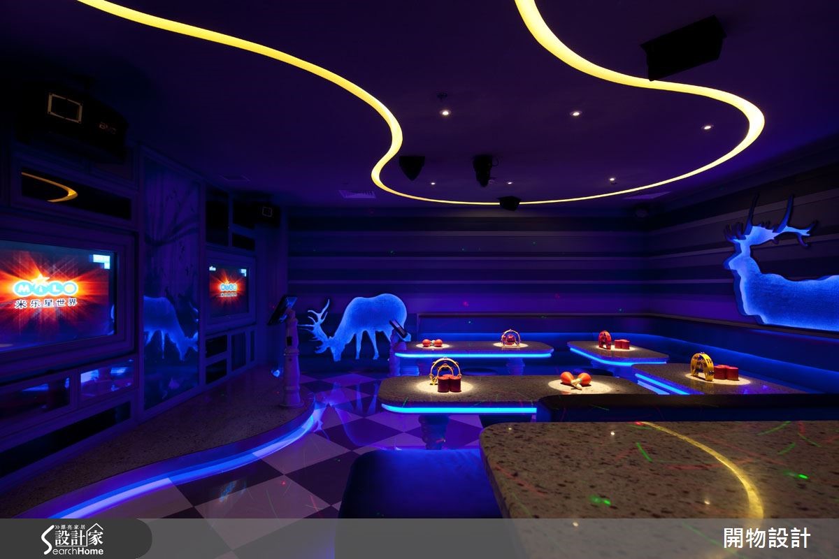 位于中国武汉的米乐星KTV,在开物设计的规画下,颠覆了一般人对于KTV既有印象,在童话与奇幻元素的融合下,打造出具嘉年华的空间氛围,带给人惊喜的声光体验。此案更曾获JINTANG AWARD 年度十大娱乐空间奖。【灯光与艺术装饰,造丰富层次】走进各个包厢,可见充满主题感的概念。设计师替每个包厢注入森林洞穴意象,以动物作为主角,搭配灯光设计,打造出缤纷的视觉飨宴。在VIP大包厢内,更以带有流线感的灯带规划,并以旋转木马成为艺术装置,宛如西洋棋概念的黑白地面,搭配灯光、色彩等层次调配,展演出热闹的童趣画面。室外大厅则规划宽阔的廊道,两侧分别配置座位区,并让天花板、地坪花色相互呼应,与灯光互映成雅致时尚的视感。且局部妆点红色帷幕、沙发座椅等,营造出华丽宫廷般的意境。