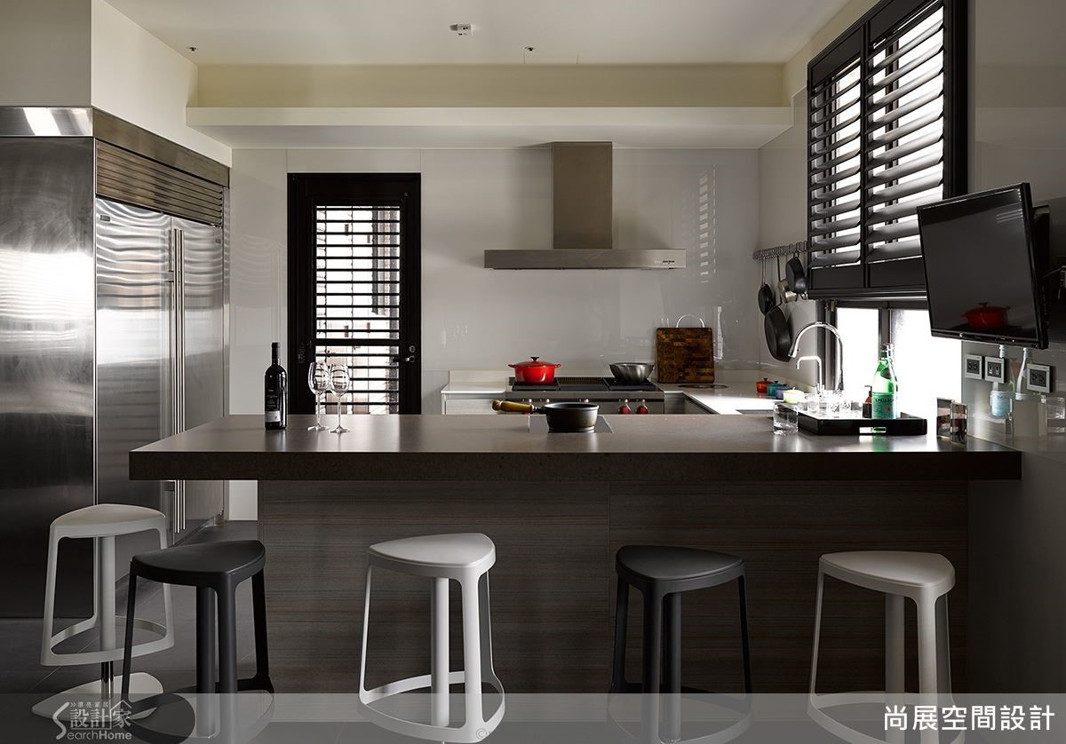吧台具有用餐、轻食料理的机能,是美式生活的经典设计。吧台的设计原理与中岛相似,都能让厨房开放自由。但比起中岛,吧台更能分割出餐厅和厨房的分界,让餐厨动线更明确。
