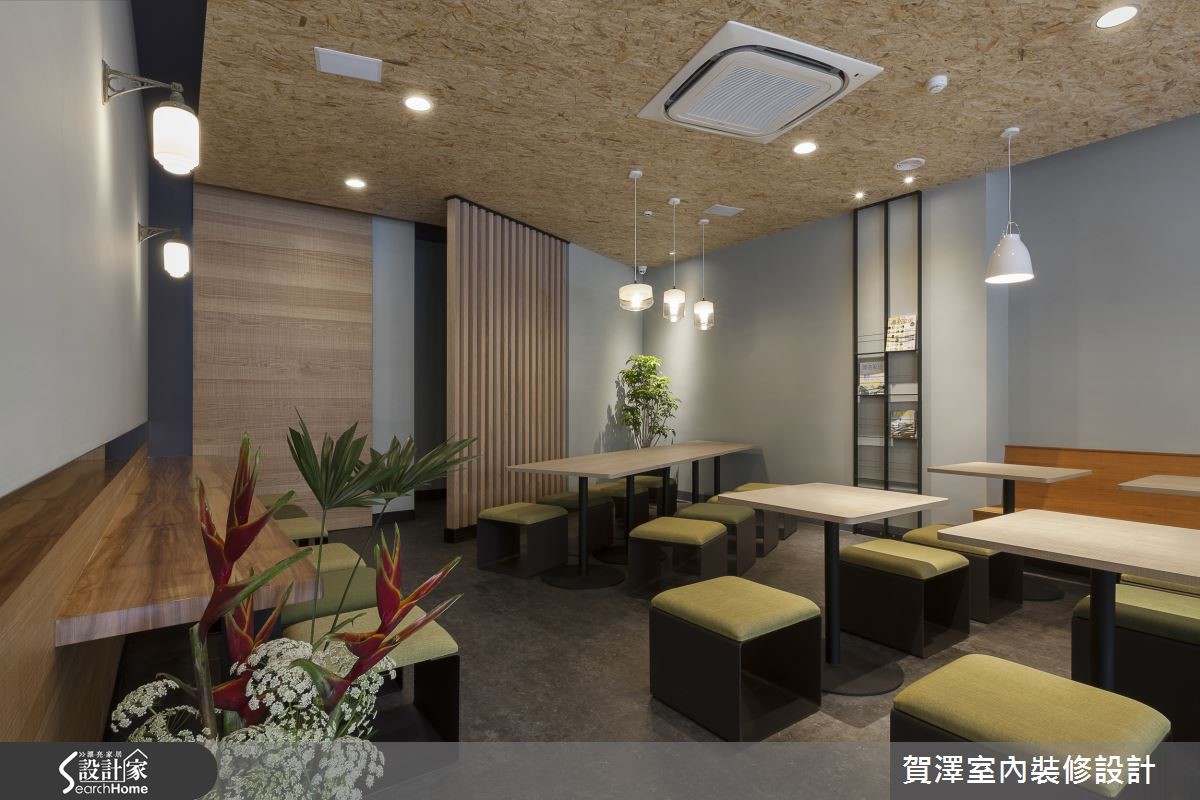 「à Table」是一间複合式餐馆,为50年传统麵店延伸出的第二代创新品牌,改良了老家的招牌食物,再加上法式糕点,创造出複合式的饮食空间。在店内规画上,设计师则将门面打斜,呈现独特的迎宾玄关,并以北欧风为定调,在家具材质上施展创意巧思,打造出充满趣味的餐饮空间!【穿透视觉感,空间更为延伸】外围以清玻璃为门面,营造延伸的视野,替室内引进丰沛採光,玄关则採斜角设计形成动线引导,并于墙面加入镜面材质,使空间产生延伸错觉;柜台则以木质甜点展示柜,搭配灰蓝调墙面背景,透过异材质的拼接,建构轻盈感的空间色块 。以清玻璃打造店面,并透过特殊的家具陈列方式,使长桌有了连结至户外的错觉,展现空间与众不同的特色!内部桌椅则依门口斜度配置,透过具弯折感的陈列方式,製造空间趣味,并点缀草绿色方块座椅,造就自然的用餐氛围。店内的木作立面则充满纹理花样,无论垂直或横向纹路,都让立面表情更显丰富;灯光设计也是令人瞩目的焦点,无论是天花板的嵌灯、造型吊灯,又或者墙面壁灯等,皆互映成美妙生动的光影趣味,在夜里释放具情调的氛围!