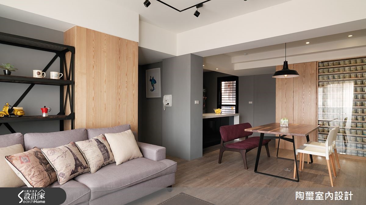 3室2厅的老屋重新翻修,设计师改善漏水、壁癌等问题,并以开放格局做规划,延展小空间视野,同时增设储藏区,满足日常收纳机能;整体虽以loft风为定调,但却突破粗犷的住宅表情,融入细腻的质感韵味,给予屋主清爽的居住体验!【粗犷與細膩質感兼具】走进公共空间,可见室内铺陈大面积超耐磨木地板,开启温润的氛围,客厅电视墙则以灰色仿清水模材质做规划,于左侧加入百叶门片设计,并结合收纳机能;在天花板做出轨道灯框架,搭配沙发后的黑铁置物层架,替轻盈主调勾勒出一丝沉稳力度。客厅桌子改为骨董皮箱,建构出随兴不羁的趣味;保留公共空间的天花樑体,替餐厅、客厅区域做出划分,并在用餐领域中配置木桌搭配悬吊灯饰,延续简约轻质的调性,一张暗红色餐椅则提升空间彩度,注入雅致的质感。整排的收纳柜体则结合立面,开启机能满分的便利生活;而厨房採用了开放式规划,搭配天花板嵌灯与通往阳台的玻璃门片等引进採光,改善照明不足的问题,替居住者构筑一幅温柔的餐叙情境!