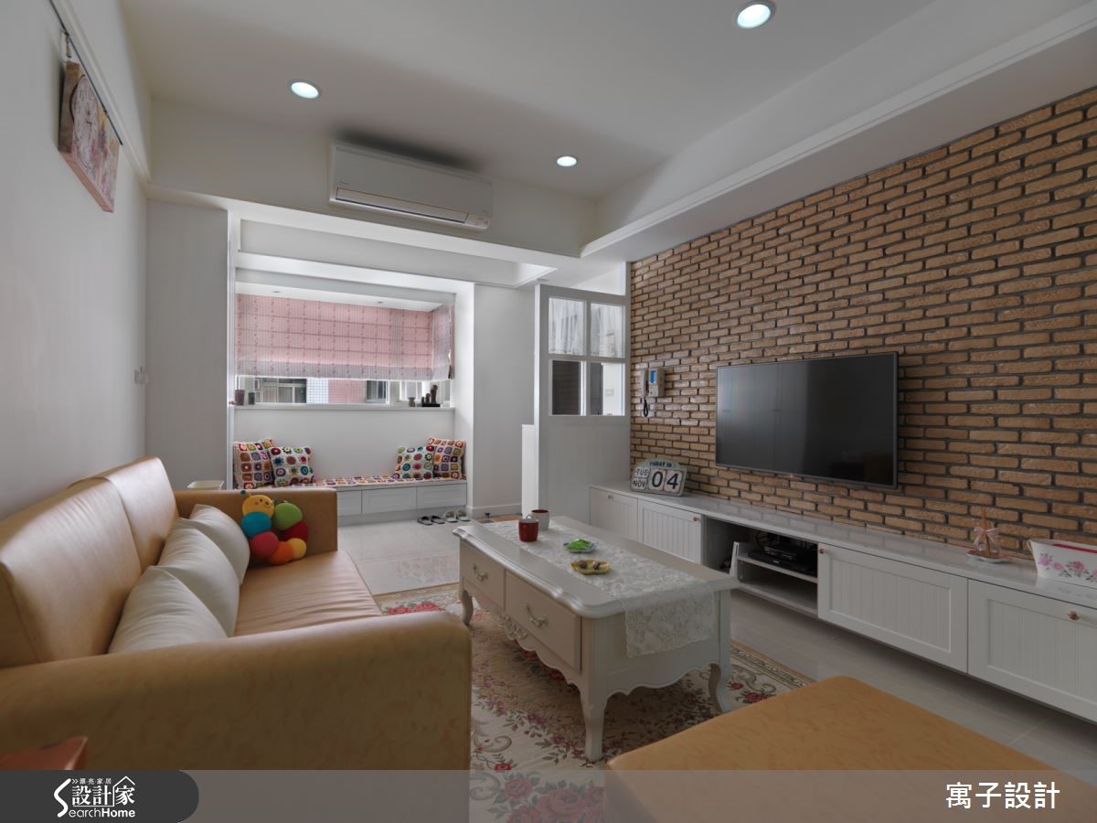 这户老屋有著阴暗采光、格局狭小的问题。在设计师巧思之下,变身成为三室两厅的乡村风美宅。整体以柔白色调作为基底,搭配大胆鲜明的家饰,十分符合女主人的甜美个性。【黄蓝对比,勾勒鲜明印象】开启大门,白色鞋柜结合通透屏风,并刻意点缀蕾丝,温柔而精致。一旁的飘窗区则兼作穿鞋区使用,扩增机能的同时,也打造舒适的入门印象。进入客厅,电视墙铺陈立体黄砖,搭配樱草黄沙发;壁面则浅蓝色调,带入亲切自然的氛围。则以黄蓝的对比,建构鲜明视觉。餐厅墙面则铺陈复古砖,并搭配餐桌椅与吊柜设计,型塑纯朴的乡村格调。主臥则注入大片的简白色调,带来纯粹无压的气息,同时加入透光窗帘、金属色泽把手等,替居室注入精致格调。