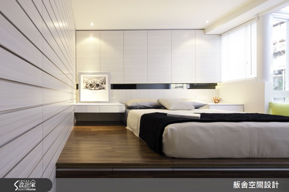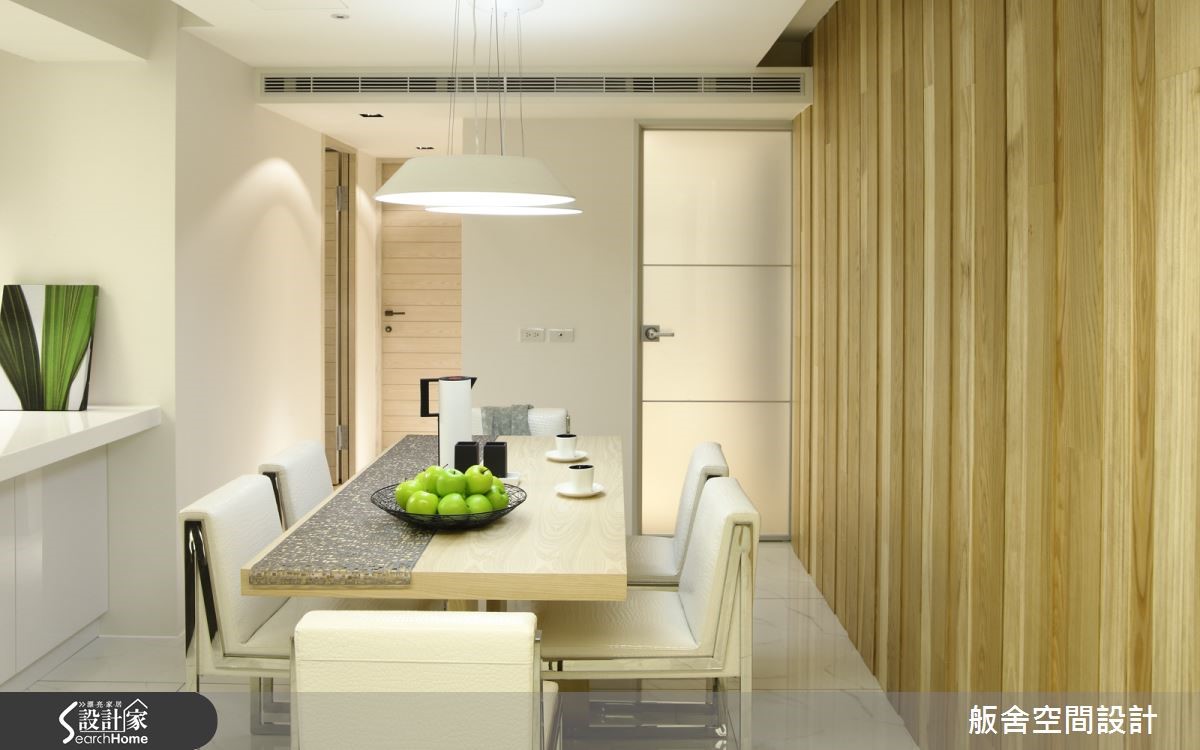 位于市区的老屋容易有对外窗紧邻防火巷,或楼距过近而阻挡光源的问题,造成室内光线不良、阴暗等问题,失去居家温馨感,透过设计师的巧手挽救采光问题,将原本的窗台降低,并采用透光材质,有效解决光源不足的问题。 【投射灯给予空间温馨感受】除了室外光源的巧妙引渡,设计师将室内装潢嵌入大量投射式照明,给予各角落温暖光线,搭配明亮轻浅的木皮内装与色彩缤纷的软件,给予专属客厅与书房温馨惬意的休憩空间。【玻璃材质,让阴暗居家亮起来】开放式厨房与餐厅一气呵成,使动线不至于局促,透过主卧房的磨砂玻璃门将光线带出,让位处房屋中央的餐厅更增添了明亮舒适感。主卧与次卧皆利用原有采光明亮的优势,以大面积开窗将光线引进房屋内部,搭配各式浅色系木皮材质,使光线得以无线延伸,主卧卫浴利用相同手法,达到明亮效果。主卧房门采用具有穿透效果的磨砂玻璃,让餐厅得以援引大量光线,解决室内阴暗的问题,加上大面积的格柜,使收纳机能大增,将物品散乱的可能性降低,有着美丽外观与实用功能的加乘效果。