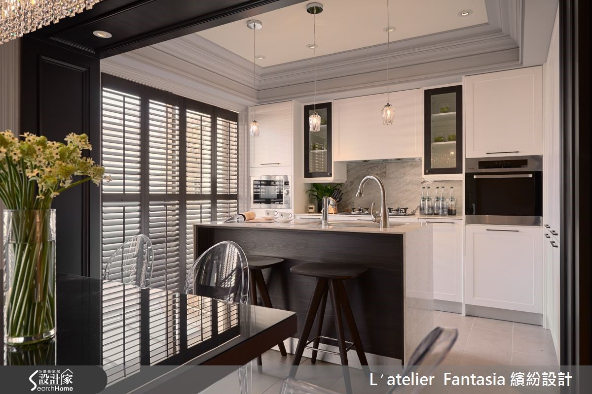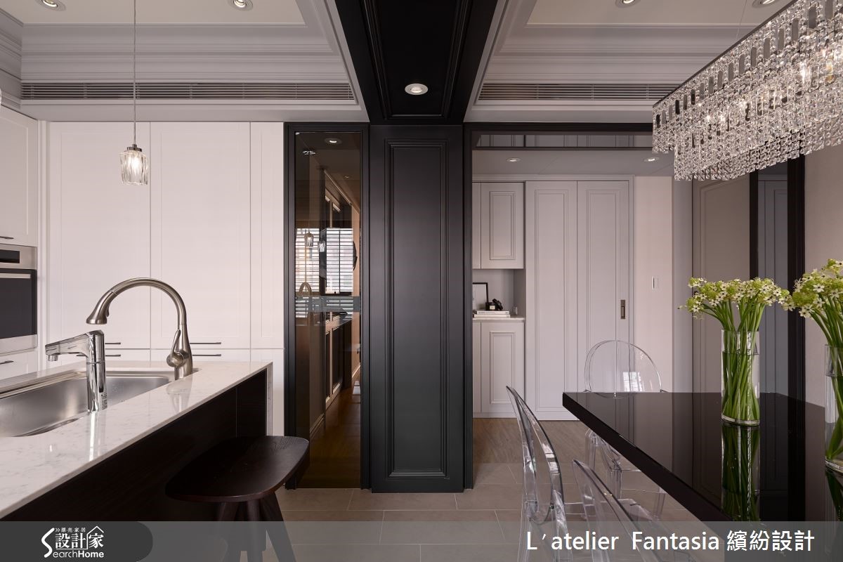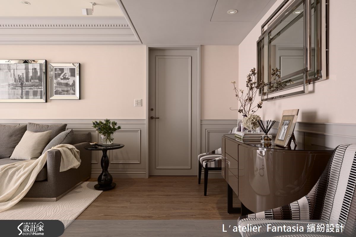 以优雅沉稳的线条,搭配寂静、温和的米白、浅灰与黑色系家具家饰,营造古典而不失新颖的时尚空间。本案前身为老屋,设计师采全室重整的模式,整顿漏水、壁癌及采光不良等问题,再以古典融合现代的设计风格,让空间展现优雅的面孔。 【彻底解决漏水壁癌等老屋问题】112平米老屋,设计师在拆除旧有屋架后,发现有壁癌与梁柱不平整等问题,此外地坪也不平整,虽然在视觉上难以察觉,但居住久了仍会产生风险,因此设计师重新抓地面水平,利用设计手法界定楼板高低区,达到视觉的平稳效果。【利用家具与色彩创造清新古典风】在家具家饰配置上,设计师以复杂和简约的线条做结合,使用古典的线板墙融合具现代感的家具,不仅没有突兀感,更能突显新颖的设计手法,从色系及家具配置就能感受设计者的巧思,达到温润兼具设计感的感受。