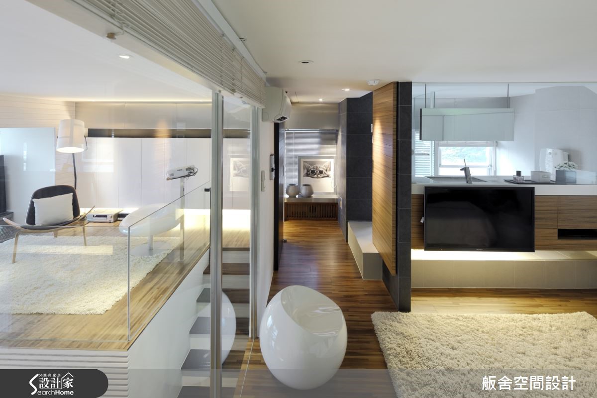 早期盛行的跃层设计,试图在有限的空间里,采取向上延伸方式,多争取空间也创造趣味的室内设计。本案约99平方米大,居住人口除了一对夫妇还加上一只猫,他们希望该有的机能不要少,同时又能享受穿透的视觉环境。【格局配置,让跃层宽敞不拥挤】空间藉由交叠方式将格局做重新配置,除了基本的格局规划,还把原空间仅有的卫生间做改善,并在二楼主卧旁多设置了宽敞的卫生间设计,使用上更加方便同时也满足了屋主的需求。【玻璃建材,不可或缺的扩容角色】设计师在材质挑选上,尽量以具穿透性、轻量的玻璃为主,视线看去不会产生阻碍,同时也能让空间变得轻量不会显得过于局促。此外,也适时地搭配木作并运用在壁面、门片上,增添整体色系、视觉的变化,另外也达到平衡整体空间调性的作用。
