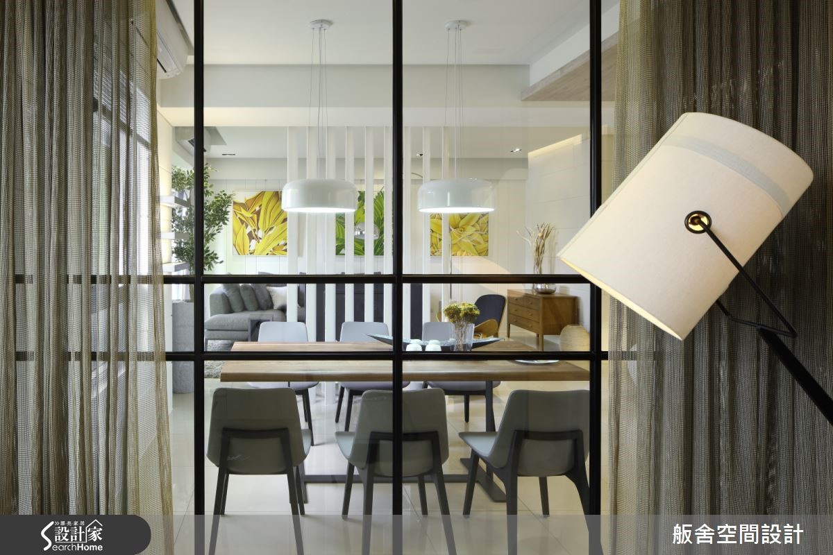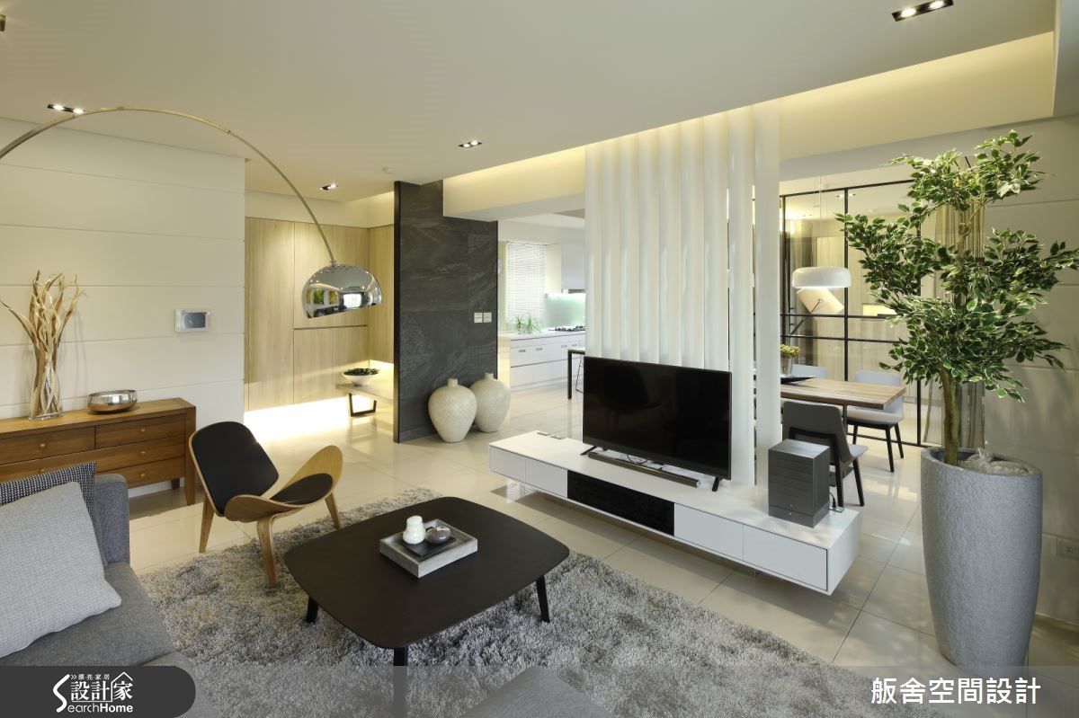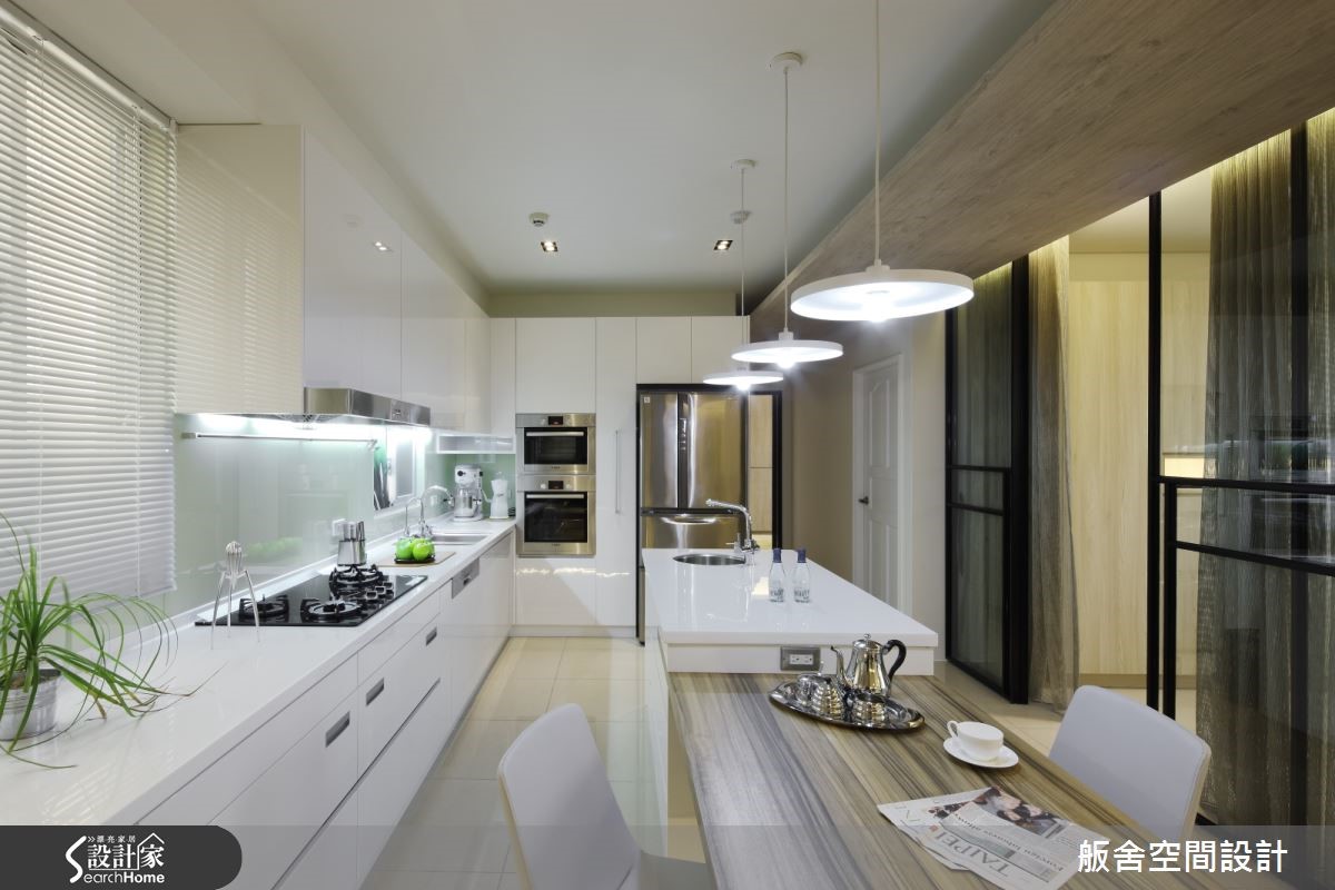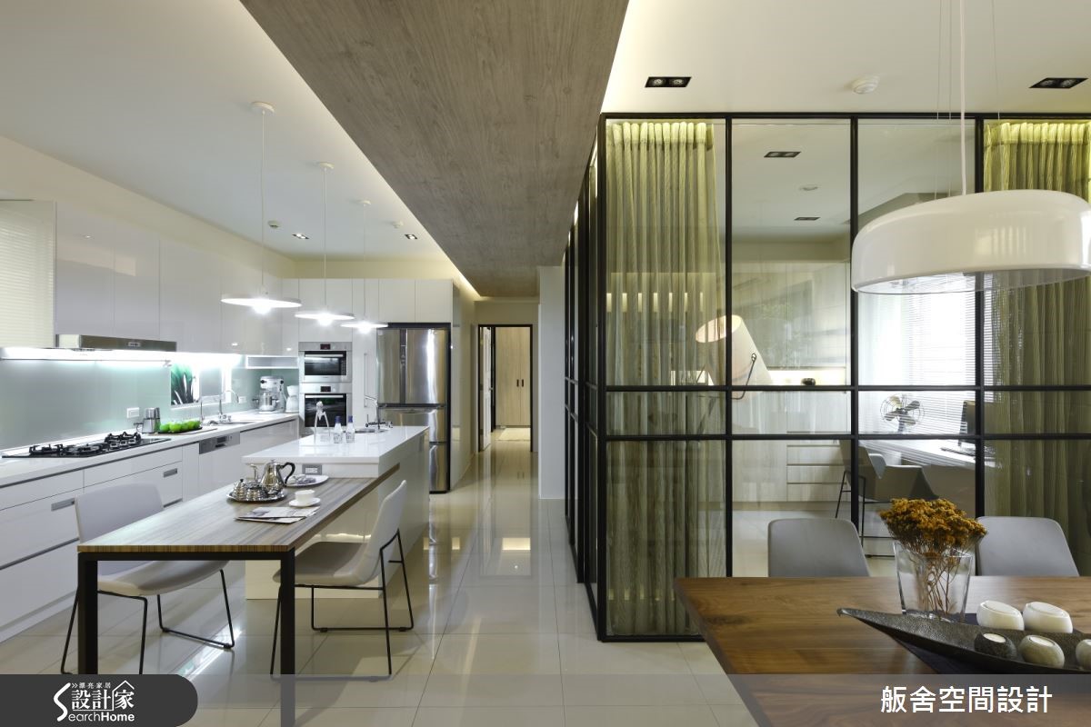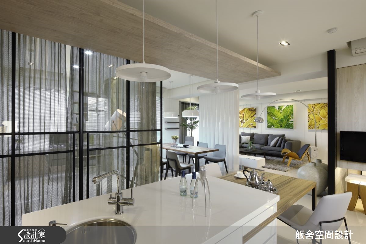 约116平米的新成屋,由于屋主夫妇俩喜爱现代风格,加上本身空间的采光优势,因此设计师综合两项因素,运用材质来带出现代、简约的味道。【慎选建材,打造轻盈的空间感受】整体空间运用开放式手法铺陈,适度在环境里使用玻璃、格栅、薄纱等这些元素作为隔断材料,既能够让格局空间获得界定,同时又能够形成穿透特性,让屋主夫妇俩身处其中,可以感到穿透与轻盈,自在地享受其中的美好。 【大面积线性建材,降低繁复感受】设计师善用材质引出轻透、明亮的效果外,材质在表现处理上也紧扣线条表现。尽量让所使用的材质以大面积、线性化、片面状呈现,降低繁复感,除了能够更清楚建材的质地特色,同时也能藉由它们所勾勒出来的线条丰富室内空间的线条变化。空间中整体采光搭配设计师辅以开放手法,结合能够突显通透效果的材质表现、变得轻盈明亮,同时又能保有自己的独立性。比如厨房跟吧台区部分,整个空间因为这样的设计手法,整合在一起机能满满,同时又能让该区域明亮又舒适。