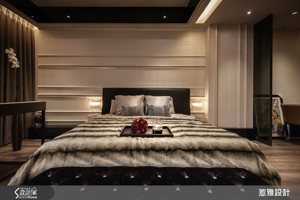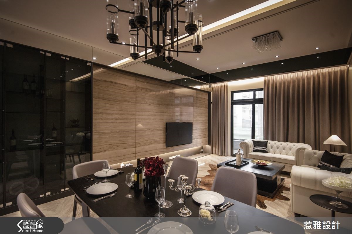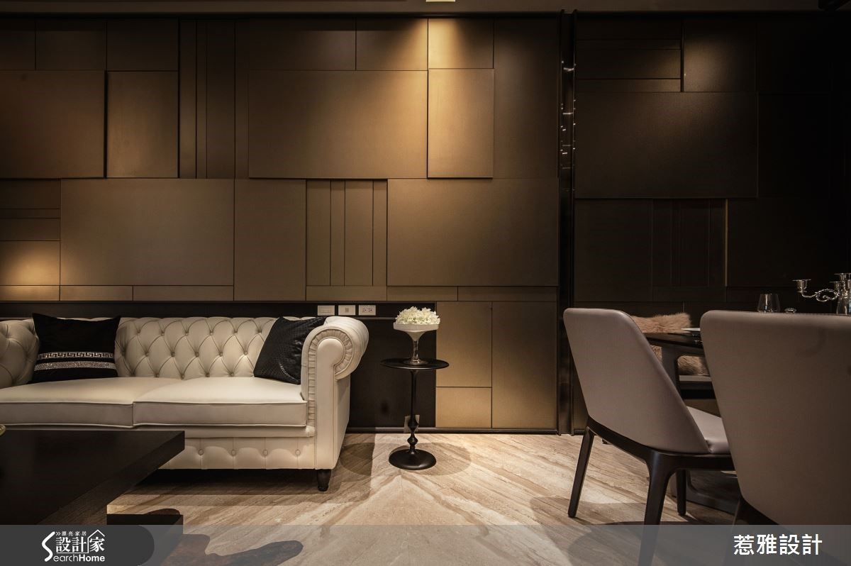 462平方米7室2厅的豪宅,以"小时代"为案名,透过光影、材质,替空间带入电影般的低奢氛围,让奢华、简约做出和谐融合,打造绚丽的居家场景。【以暖色石材,塑造沉稳大器】整体以酒店风作为设计语汇,设计师于空间注入流畅的生活动线,同时将收纳机能整合于客厅电视墙内部,外层铺述暖色石材,并加入切割线性与半悬空造型,形成大器不失轻盈的视觉感。【线条与几何规划,呈现立体美感】电视墙和墙柜形成连续沿面,沙发背墙则呈雾面光泽感,透过线条与几何规划,型塑凹凸的立体美感,搭配优美的白色古典沙发,打造出前卫时尚的气韵;客厅、餐厅、厨房则采全开放格局,仅在天花板加入黑色框架与间接灯光,作为界定。【长轴式动线,连贯宽阔视野】在长轴式延伸动线之下,让餐厨与客厅交叠连贯,形成宽阔敞朗的迎宾场域;卧房空间则在床头墙加入利落线条,让墙面尺度产生更为宽广的视感,并规划大理石电视墙,赋予等同公共空间的大器质调!