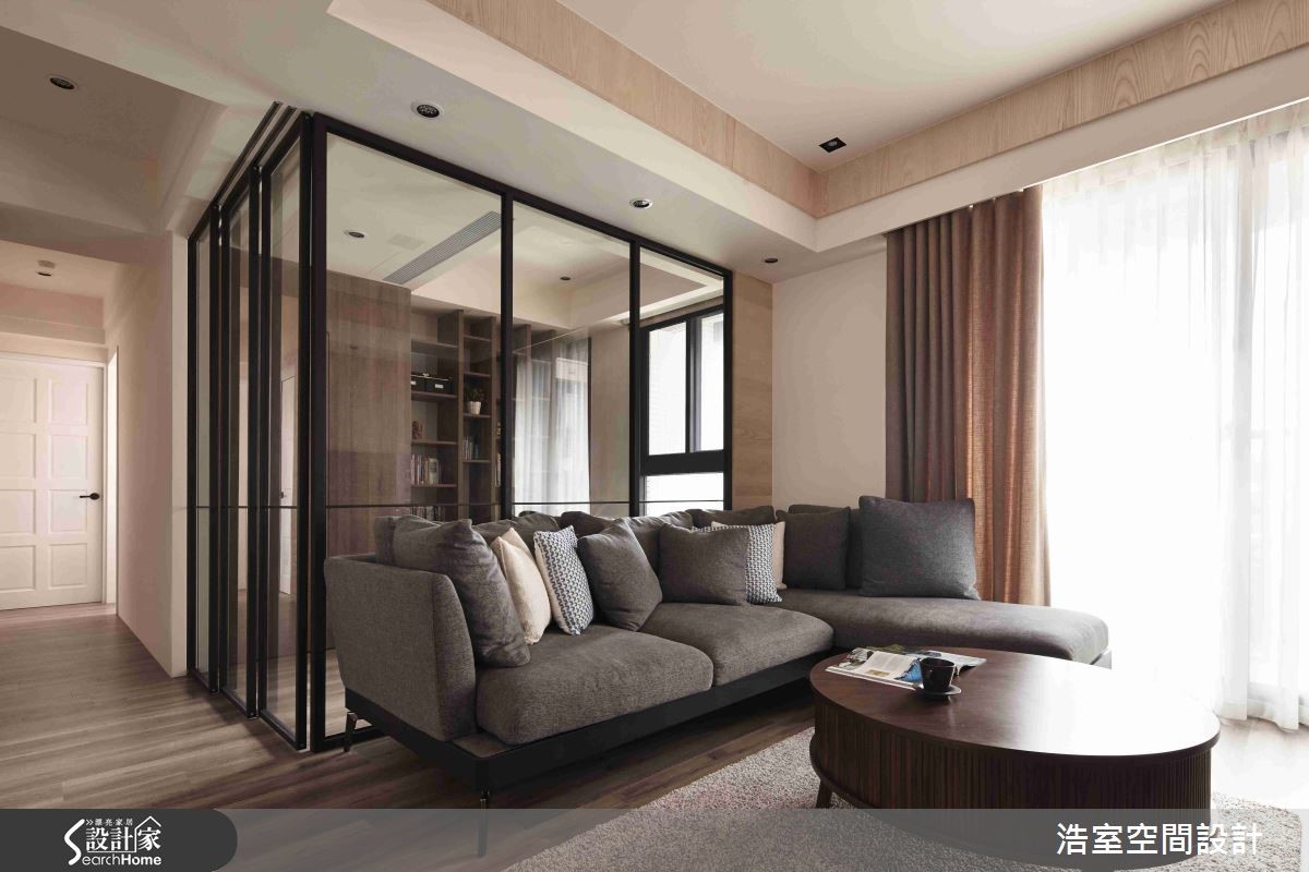 116平方米的居宅,设计师以现代风为主要定调,清楚划分各个区域的机能与作用,同时兼顾穿透性,使单层居宅也有着宽敞明亮的视觉动线。 【玻璃隔断,让公领域视觉开阔】设计师以轻浅干净的白、灰、棕等基本色阶搭配全室,让室内在和煦阳光下散发温馨的氛围,并以大面积玻璃将客厅与后方阅读区隔开,精准划分两者区域,却又将压迫感及空间隔阂程度降低,除拉长走廊的视觉效果外,更能将光源有效引进客餐厅,加强视野的透明度。另外,以文化石砌成用餐空间的壁面,有效去除白墙单调感,搭配天花板与玄关隔板的纯白长形木条,营造出明亮温暖的氛围。主卧整片木质贴皮与系统柜的布置井然有序,色阶调和得相当合宜,充满简洁明快的气息。