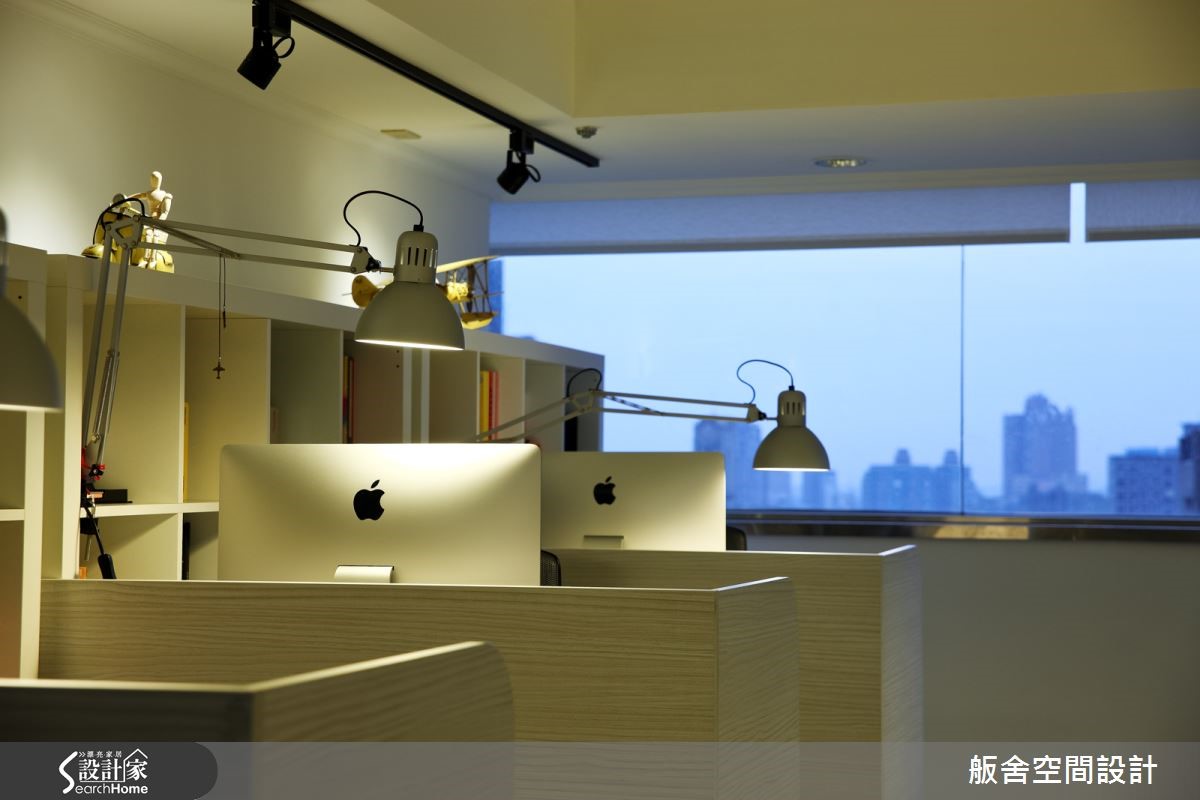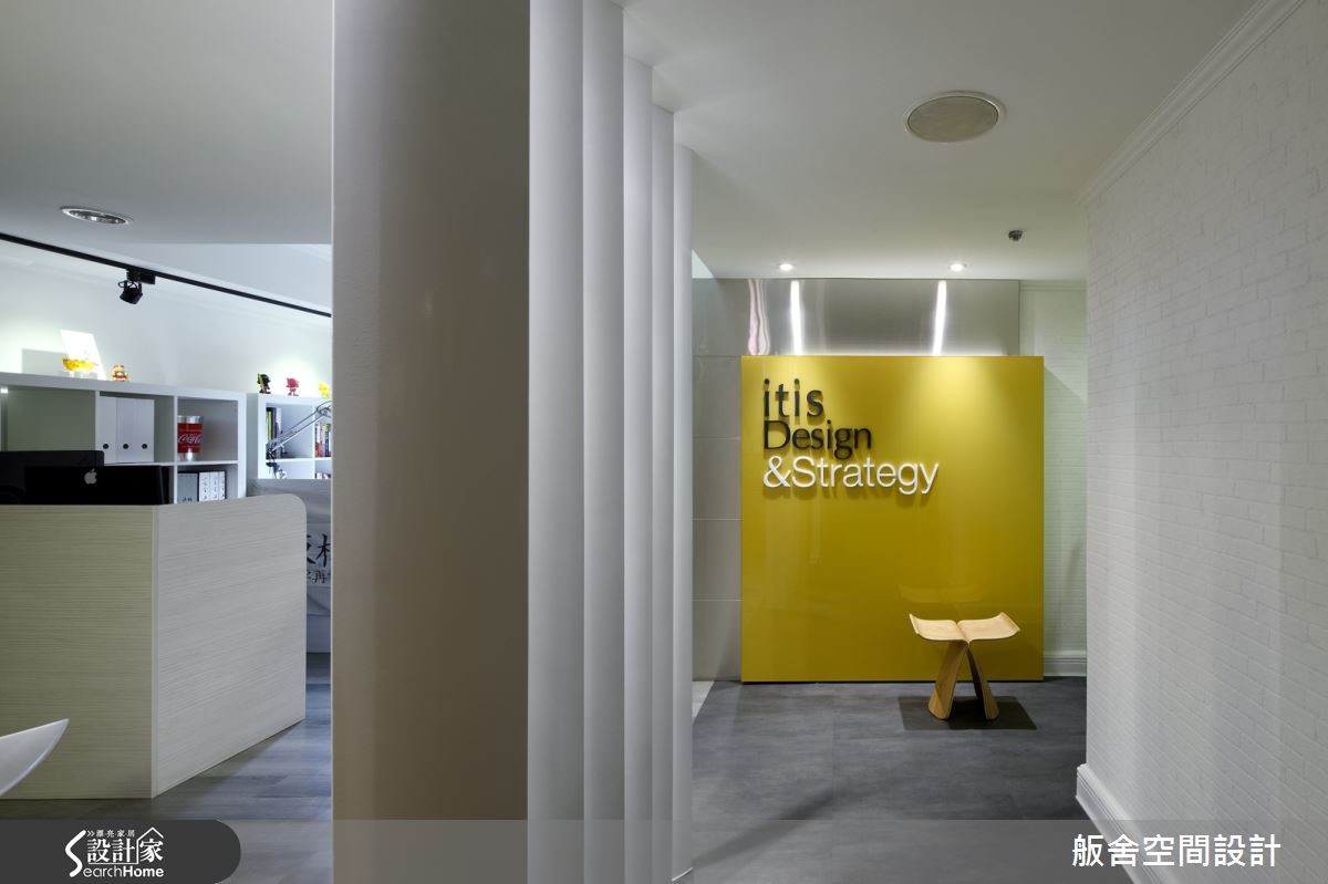 走进这间视觉设计公司,明亮、富有设计感的场域给予工作者友善的环境,搭配井然排列的桌次与格柜,不显局促的开放空间,鲜亮的黄与简明的白相互契合,使工作团队与环境关系更为紧密。【巧用黄色系打造积极企业形象】因应企业主需求,设计师将代表企业色彩的鲜黄主题墙面镶嵌在不锈钢板上,走进玄关即可感受飞扬、充满企图心的氛围。室内则呼应企业色彩使空间充斥着明亮活泼的氛围,并去除制式的隔断,以白色板材与移动式桌灯给予工作者简洁明亮、保有私人场域的工作空间。