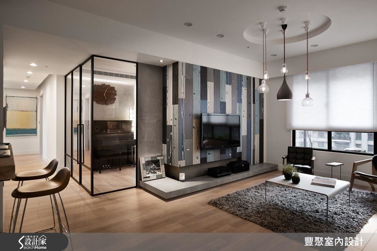 屋子双面采光,房间则位在走道两侧,为了不让居中的走道变暗,设计师充分利用靠窗侧的良好光源,将四室变成三加一房。至于书房的墙面,以彩色木纹砖电视墙结合清玻、铁件的设计,打造穿透感十足的半开放空间,不仅空间感变大,光线也能打亮走道。