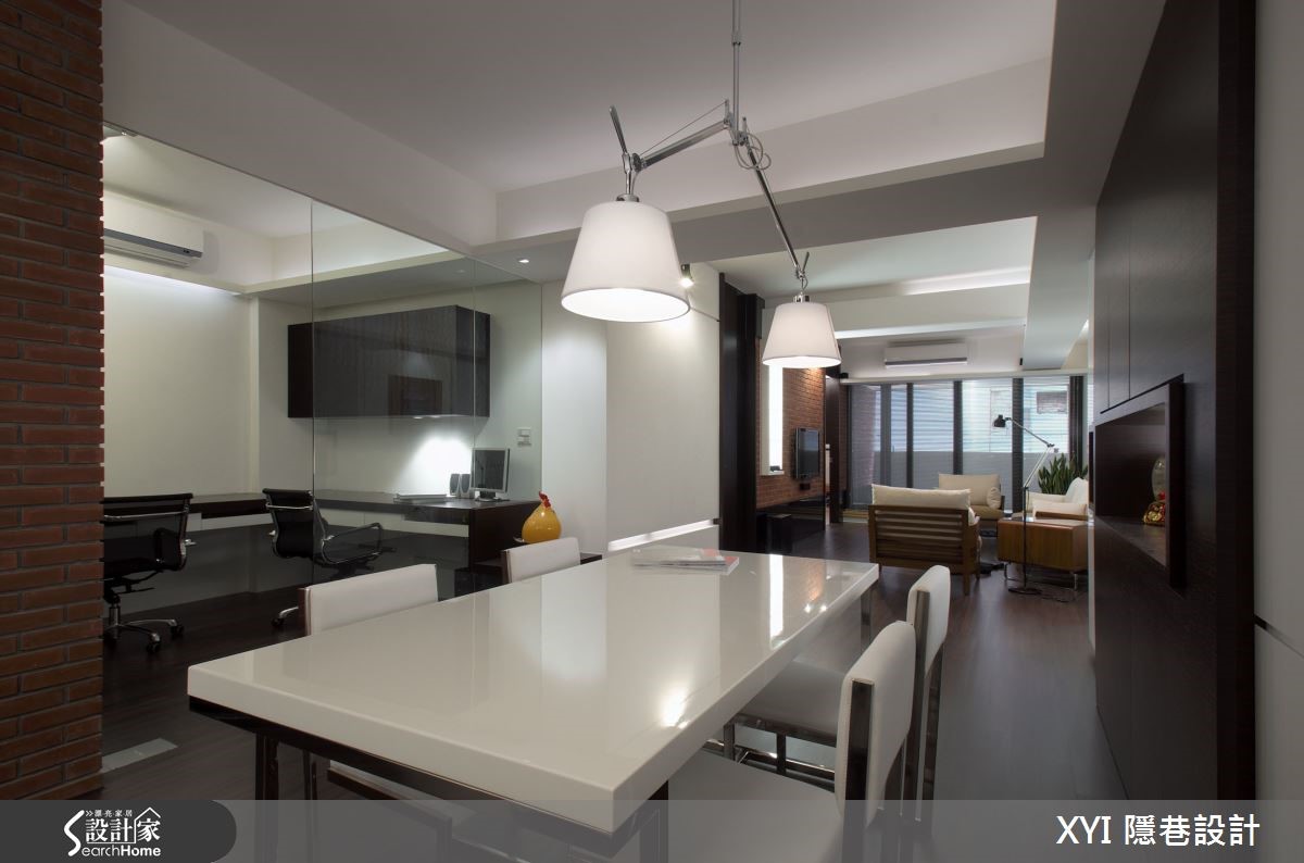 由于建物基地为长型,导致中段采光较差,且基地中段有公用电梯,恐造成住户居住隐私及安全上疑虑;为此,设计师藉由去除隔断,以及"自然慢活"的概念,勾勒出符合屋主对于生活的想望。【位移厨房去除隔断,重现宽阔】除去客厅及餐厅的界线,保留都市生活中难得的阳台空间,创造连贯且充满互动性的空间使用度。客厅电视墙以火烧砖为布置主轴,而右侧黑铁烤漆及分别镶嵌于上下方的灰镜,搭配南洋风格实木与麻棉的布料家具,融合了工业与度假氛围。为有利光线穿透,厨房位移,同时将走道及阅览室的墙体更换为钢化玻璃,使长形空间富有通透感。其次,设计师将公用电梯口打造成同色系移门片与对内锁具,除隐藏电梯,也避免他人误触电梯,同时兼顾美感与安全性。主卧采用与客厅相呼应的火烧砖与水泥粉光,加上墙灯及大面积色块,创造工业风格。另一卧室则回归成熟稳重,以雅致寝具搭配宽阔卫浴设备,满足居住者不同需求。