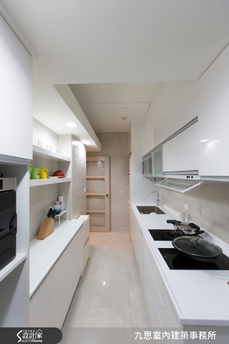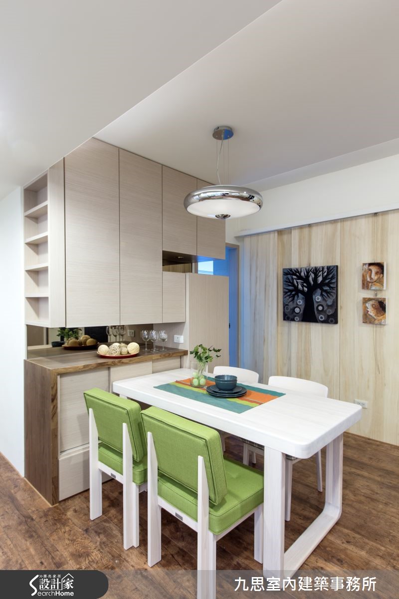 本案的四口之家,为一户屋龄15年以上的老宅,每个空间及设备皆稍嫌老旧了些;为重新赋予新面貌及传递家的温馨,设计师以北欧风作为设计主轴。【清新木色,勾勒温暖舒适氛围】整体空间利用温暖的木质地板搭配石材及白、米白等色调,再于局部加入纯色或花色图案点缀,替环境注入一股家的生命力。公共场域则采开放式设计,客厅在胡桃木地板上铺陈与沙发同色系地毯,相互映衬出慵懒怡人的气氛。【纯白厨房,放大整体空间视觉】餐厅则以简约的白桌搭配抢眼的苹果绿椅,后方墙面融入浅系的梧桐木钢刷板,让用餐的温馨氛围再次提升。厨房摆脱原先的老旧感,全面刷白展现清新质感,加上长型的延伸空间,简约中亦带着时尚气息。书房为正规格局,长型空间的两旁皆设置书架,长桌的大面积足以让三人同时在这学习或工作。卧室采取简约的白、木质色和茶镜相互融合,不过于浮夸但在细处展现拼接设计的层次与巧思。家中共有两间卫浴,一间具干湿分离功能,另一则是备有澡缸。前者以石材拼接鹅卵石马赛克为主,后者则采西班牙窑变砖搭配大理石,给人彷佛来到度假酒店,使盥洗成为每日的惬意享受。