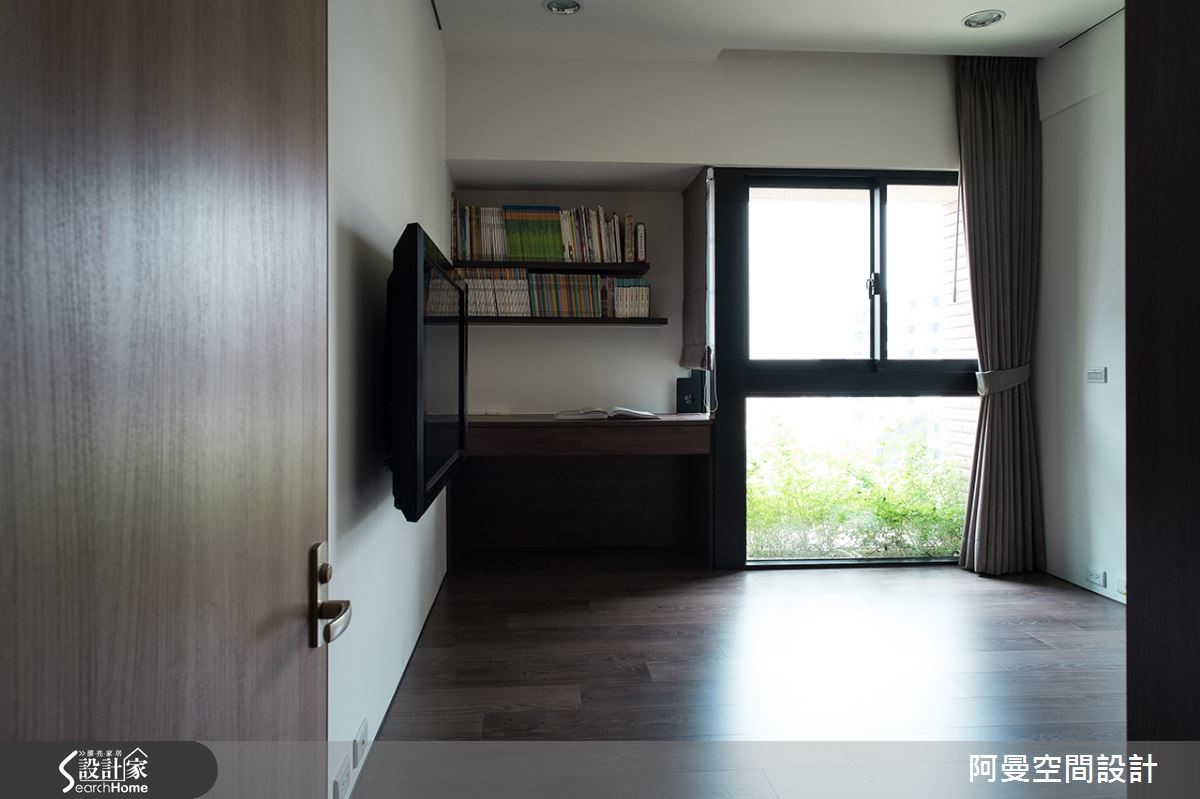 若想要了解一个人的个性,就看看他的家吧!位于台中市的单层住宅,因为男主人为工作负荷较重的机师,相当重视居家环境装潢是否能带来放松感,来看设计师如何利用大面积采光打造纾压空间!【沉稳色调有效稳定空间情绪】玄关进门即可将视觉向外推展至户外空间,有效扩容视觉。客厅电视墙面石材与家具形成和谐色调,搭配深色木地板,提供沉稳的休憩氛围。光源自后方照射,明亮却不显刺眼;阅读空间则自成一格,让人得以心无旁鹜的浸淫在文学世界中。而设计师更利用中岛设计,破除餐厅与厨房的藩篱,吸顶水晶灯与特殊造型木桌以及厨房茶烤玻壁面,结合木作烤漆,营造整体优雅用餐环境。而踏入阳台,设计师善用空间铺设木地板,并在边缘以植栽增添绿意。卧房皆以大面积开窗使充足光源进入房内,增加通透感;主卧则巧妙将床头墙面与原先墙面隔间成为更衣室。主卧卫浴为干湿分离设计,且在窗台旁嵌进浴缸,泡澡时可一边享受温暖日光,使疲惫身心达到全然放松。