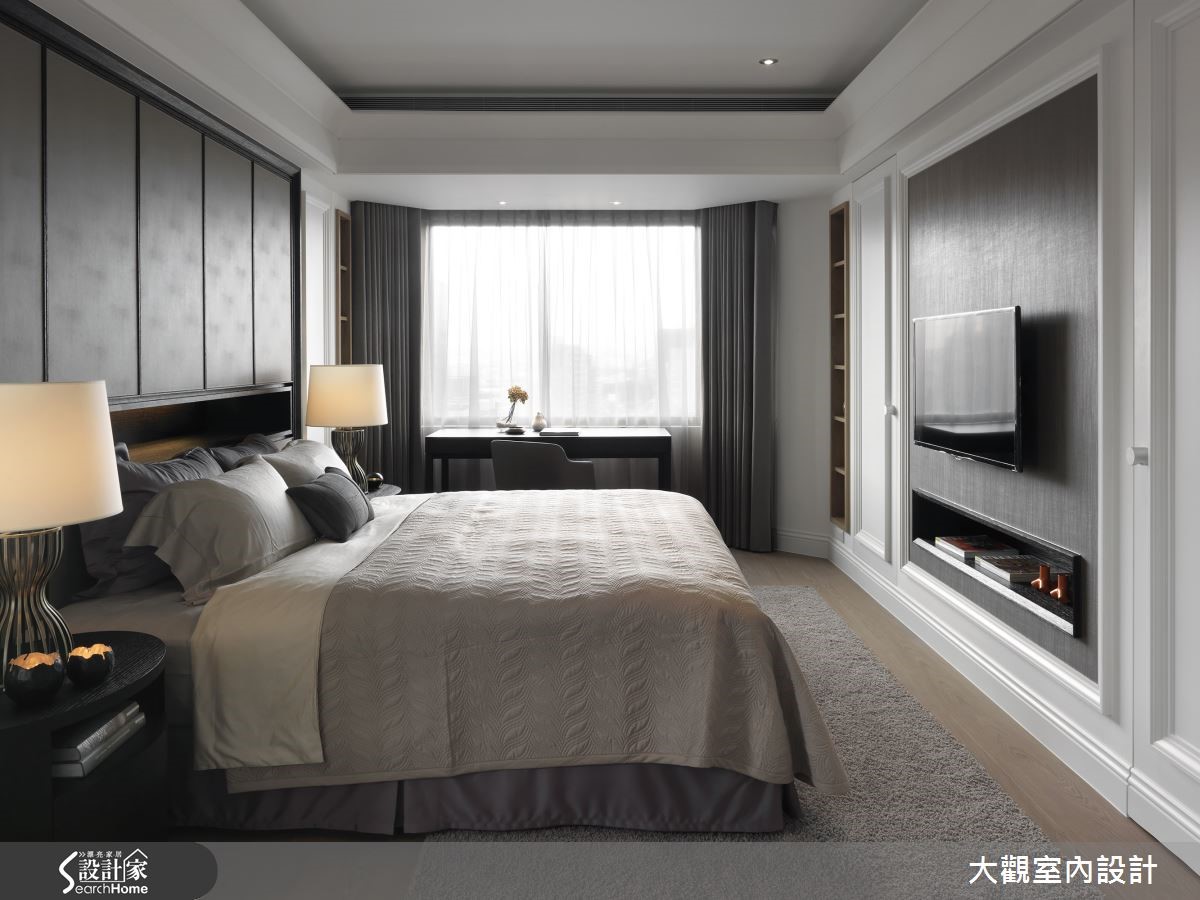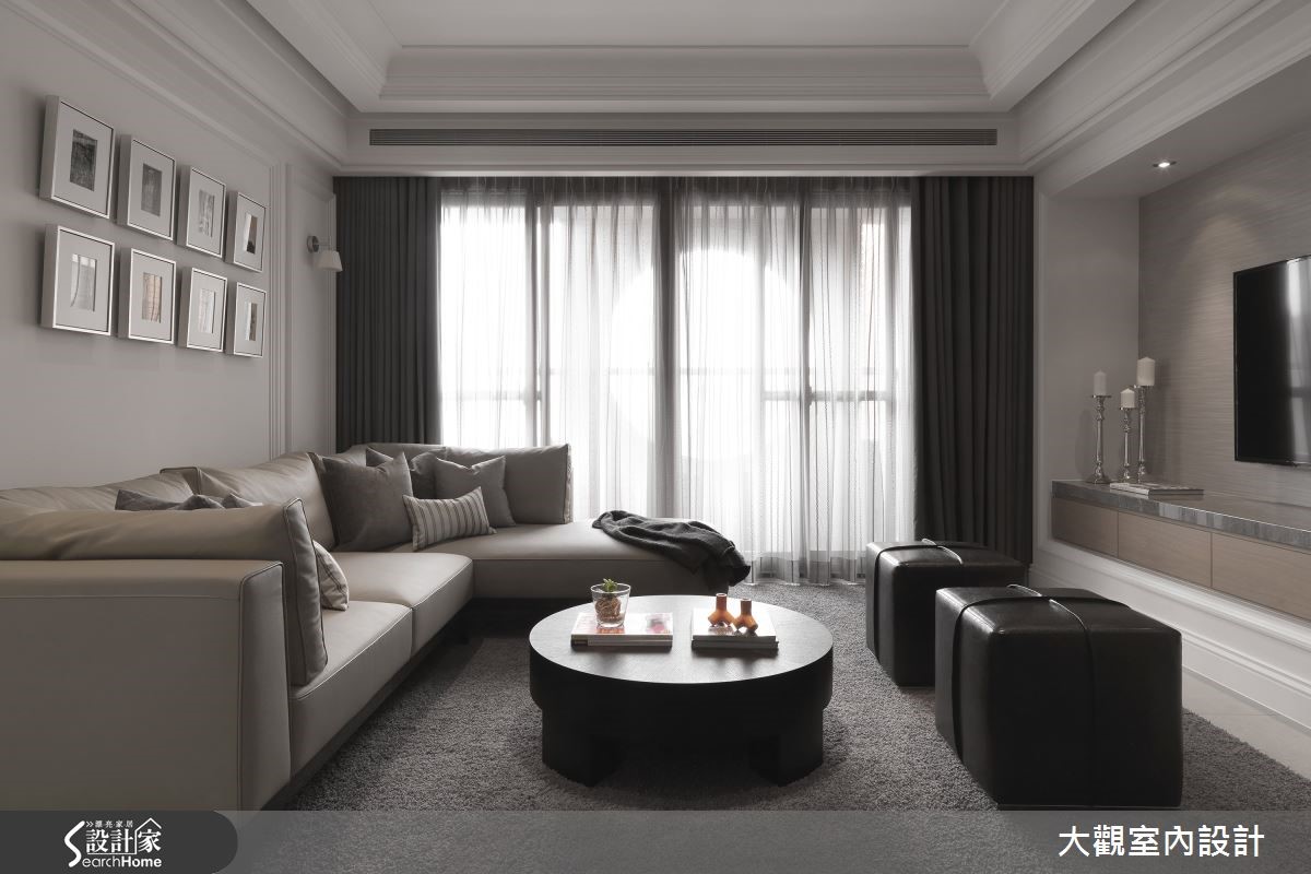 132平方米的居宅,经由设计师精心改造,突破了制式且繁复的新古典设计,以更为简洁利落的线条,将华丽的元素轻轻化简。并搭配浅色木皮、大地色调等,让居家空间更贴近自然,并呈现优雅的现代品味。 【净白线板装饰,营造清新文艺范】在公共空间中,设计师以白色做为空间基调,搭配充足采光,让空间看起来更明亮宽广,并于壁面、天花板点缀净白线板,增加线条的精致度却不琐碎。沙发墙则在两端加装壁灯,衬托家饰挂画的立体度,凸显居家品味。餐厅天花板则悬吊一盏水晶灯饰,与一旁的镜面形成华丽优雅的感官享受同时运用隐藏式手法将门片、柜门等隐入立面,并加入垂直线型设计,让墙面延伸,放大视觉感。卧房延续了利落的线条层次,并铺陈木质地板,电视墙、床头墙则采用深灰色调,让整体空间有低调奢华的质感。