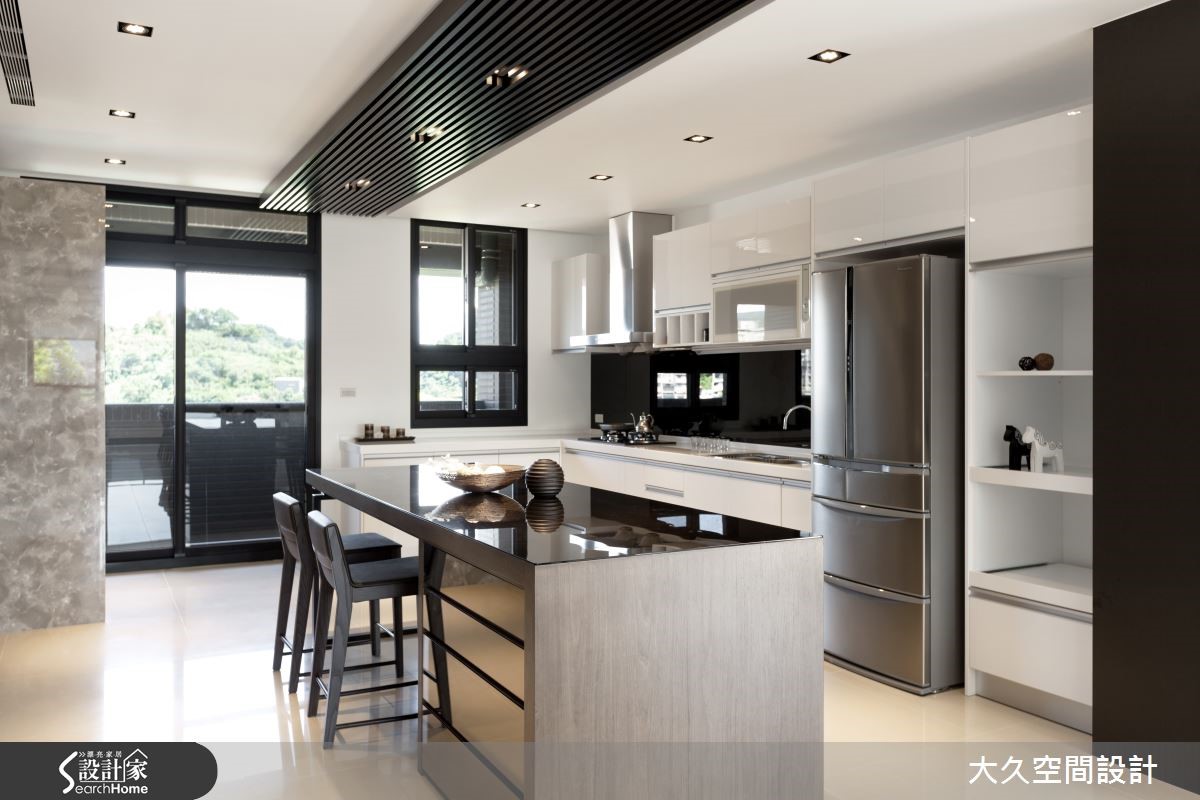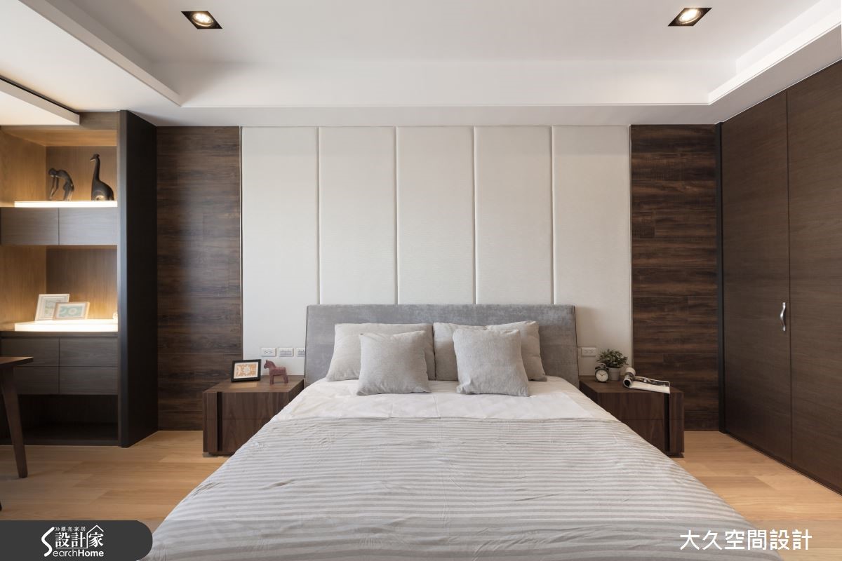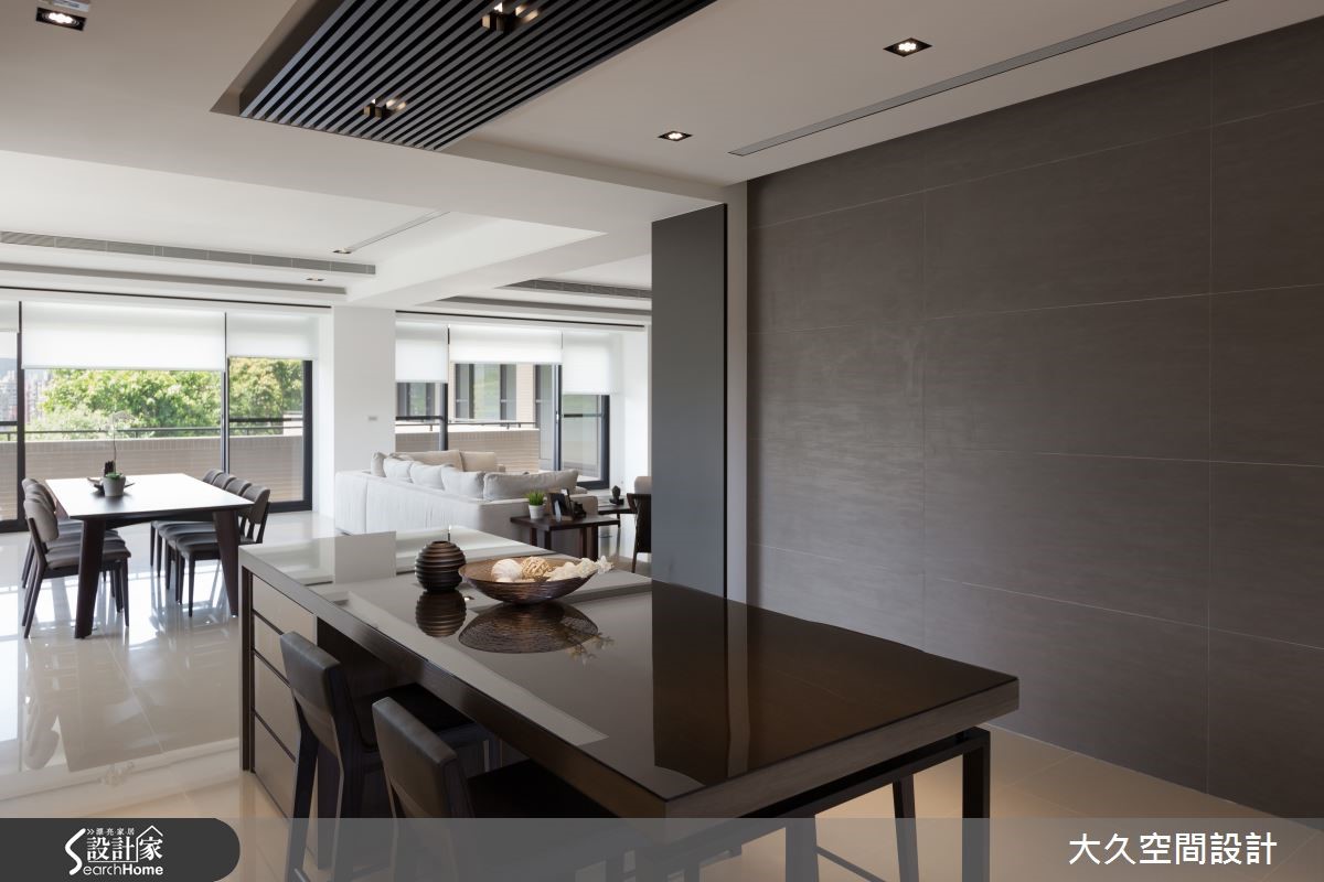 "Less is more",将空间化繁为简,打造纯粹的居家环境是许多人所梦想的。此案设计中,将动线整齐划一,且采光互通,搭配简约的配色和设计。除了木质外,设计师也适时地融入石材,让空间视觉有所变化,同时也达到平衡【设置深色柜体,对比纯白空间】设计师利用木质、石材与白地砖打造出色调统一的简约风格,使人站在屋内便能感受到一股清新的气息。整体格局方正,采光优良,多处的落地窗,让屋内的光线相互流通更加明亮。从深色石材与木材搭配的玄关,再加入浅系色调为主的公共领域,看似对比但营造出空间层次感。公共领域采开放式规划,客厅墙面以浅木皮为主导,恰巧与L 型的浅灰色沙发相互呼应。餐厨区则融入了黑色调,使整体除了简约外,更增添沉稳与时尚的气息,结合收纳层柜的多功能厨房吧台,除了料理外,亦提供了另一用餐功能。主卧房的部分,维持一统的深浅木质搭配灰白色调,打造出舒适、减压的起居环境。
