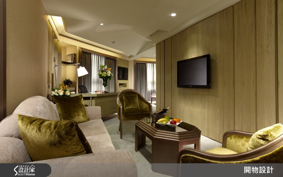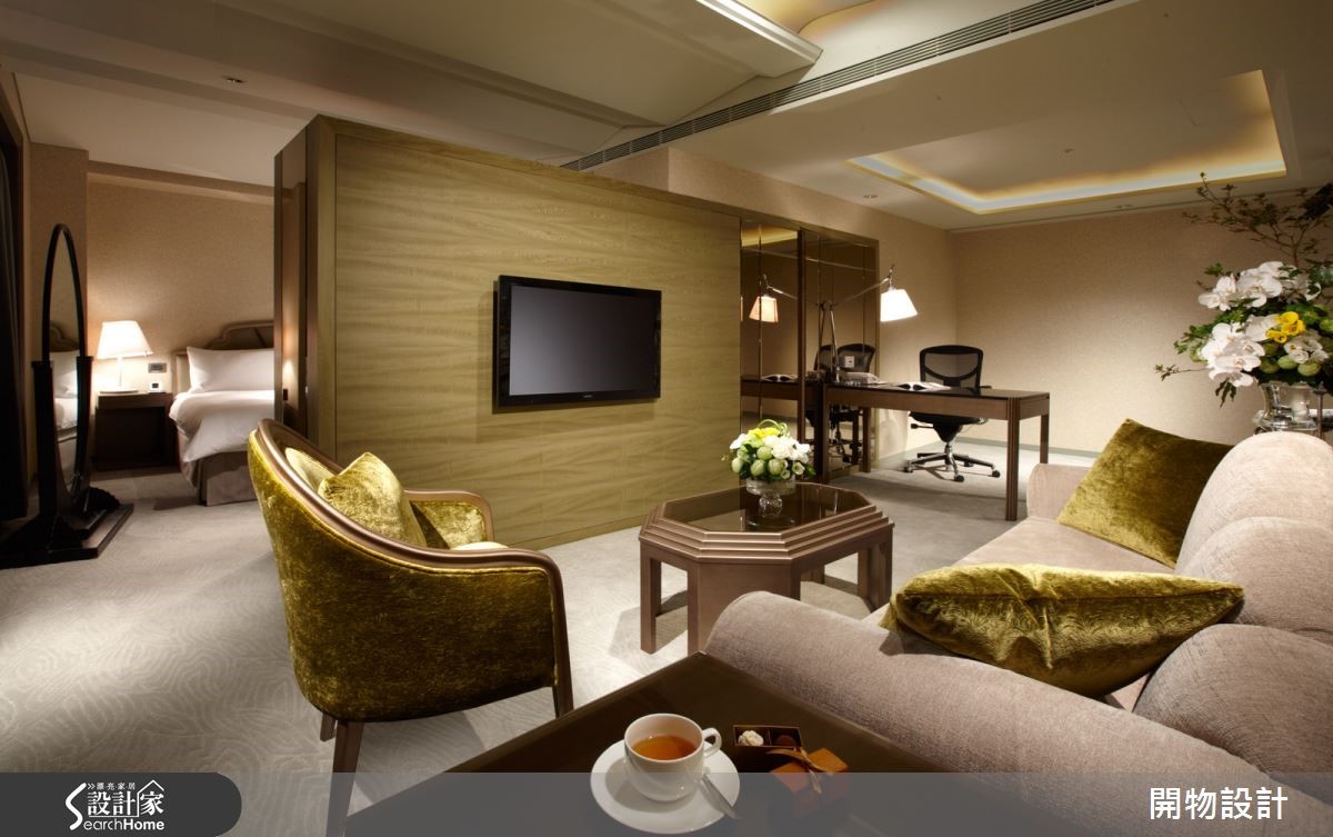 在台北市五星酒店的居室中,设计师替七十多间房间设计。以低调奢华作为设计主轴,加入木质调、大地色彩等,搭配同色系灯饰、家饰品妆点,营造香槟般的高雅质地,使入住房客享有舒适体验。【椎体吊顶设计,空间更有层次】每间居室内皆采用同款地毯样式,象牙白绒面隐约可见细致纹理,彰显精巧的工艺风范。天花板则做出倾斜锥体造型,加入不规则的高低线条,辅以间接光源投射,展现丰富的空间层次。电视主墙则采用浅色木皮大面铺陈,与充满光泽感的单椅、抱枕等,交织成高雅质调。茶几、书桌设计则相互呼应,透过桌缘、柱脚的层层堆叠,把家具轮廓展现得更为立体。无论是立灯或床头灯,皆采用相似的简约灯罩,透过柔和黄光带来暖意,消除旅人的疲惫身心。