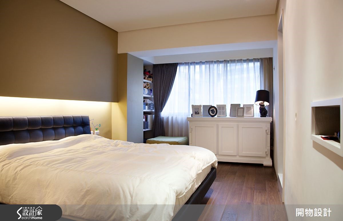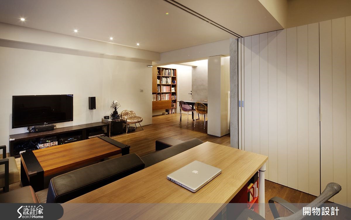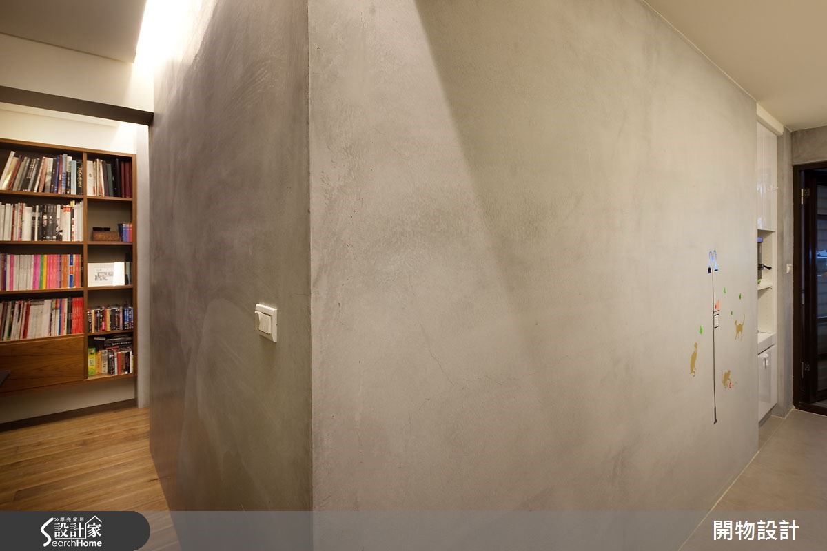 针对此案设计,设计师在理解居住者的生活型态后,以大面积水泥粉光打造淡灰基调,同时将屋主的家具、家饰植入空间,让家跳脱既有风格框架,展现出屋主的独特气场【材质与家具,形塑空间层次】空间整体运用梁柱、门片等打造互通空间,使玄关、客厅、餐厅、书房等彼此界定分明,但形成连贯的流畅动线。居宅采大片水泥粉光铺陈墙面,加上相框、图绘等,叙述专属于一家人的生活故事。客厅陈列简朴的家饰,搭配造型细腻的水晶灯,引领视觉焦点。沙发后则设置拉门,让客厅和书房也能彼此享有独立空间,并将书房的橱柜整合齐墙,在关闭时形成简洁立面。餐厅区则陈列折叠餐桌,搭配色彩新颖的餐椅,展现出活泼的用餐气氛。卧房则回归质朴简单,运用白床搭配白色柜体、墙面,在床头铺陈大地色彩,并让家具局部点缀稳重黑色调,彰显层次分明的素雅感受。