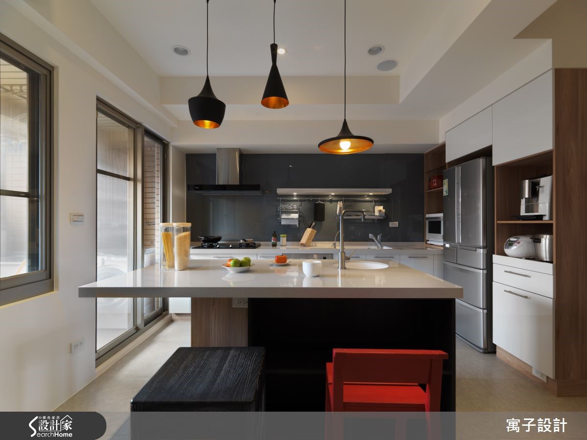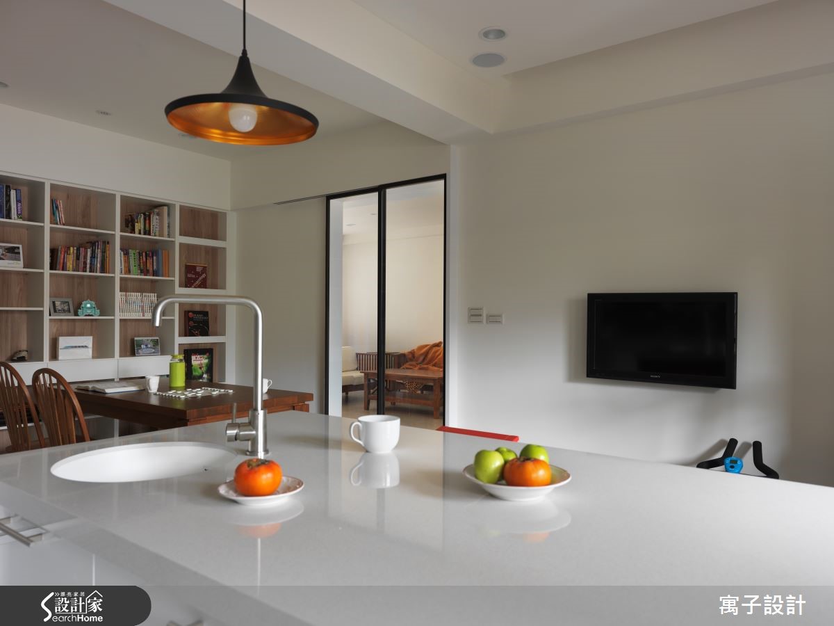这户有著116平方米的老屋,设计师以北欧风为调性,采木作搭配浅色系,融入具古朴味的家具家饰,且注入开放动线、通透材质等,替老屋重塑清新的氛围。【整合客厅和餐厨,强化家人互动】走进空间,可见墙面配置白色不落地鞋柜,并让柜体局部转为展示平台,陈列古朴家饰营造宁静画面。客厅则让电视墙居中,两侧保留开口,营造开阔空间感,并于简单纯白色之中,融入木质柜体,带出具古朴味的禅意。同时将靠近玄关的一面墙设定为家庭备忘板,透过手绘涂鸦、生活照等添入情感记忆。沿电视墙旁开口可进入餐厨区,刻意配置玻璃门片,让餐厅、客厅可随时作出区隔,厨房则加入轻食吧台设计,整合成方正格局。来到主卧,则让睡眠区、更衣间、卫浴相互连贯开放,引导成流畅的起居动线,并打造大容量的开放衣柜,让卧室俨然成为专属服饰店。