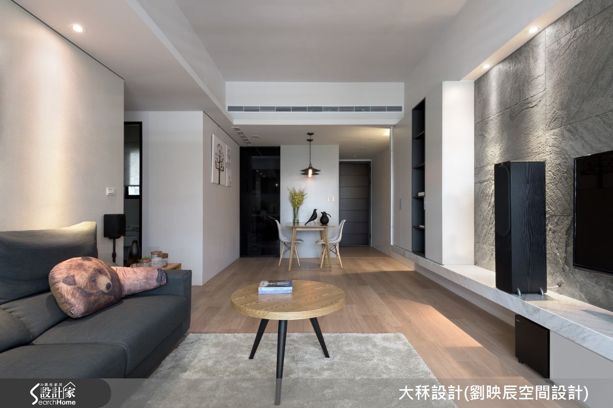 自为人父母的那刻起,每件事情似乎都会先以孩子为优先。132平方米的现代宅,为年轻的新手父母与小孩共同的幸褔居宅,屋主花费了无数休假时间与设计团队讨论其对装潢的想法,无不是想为家人们打造出优质的居家空间。【善用材质,堆砌出空间层次感】由于屋主本身喜欢简约、带有现代感且具层次的设计,因此整体以灰、白两色为基底,展现出沉稳的质感,并特意选用木地板与木制家具,替空间注入一股暖意,调和冷色调的室内氛围。公共领域采开放式格局以增加活动范围,具环保特性的板岩石电视墙,以不规则形式排列,展现出层次感与独特之处;而电视墙面旁除了收纳橱柜,亦做了可展示用的夹层,让屋主能随其所好摆放收藏品。主卧区则延续了整体的风格调性,持续以无负担的色调与陈设进行,以纯净的白色搭配户外暖阳,呈现出无压的舒眠环境;而结合收纳机能的床头柜设计,则满足日常的收纳需求。