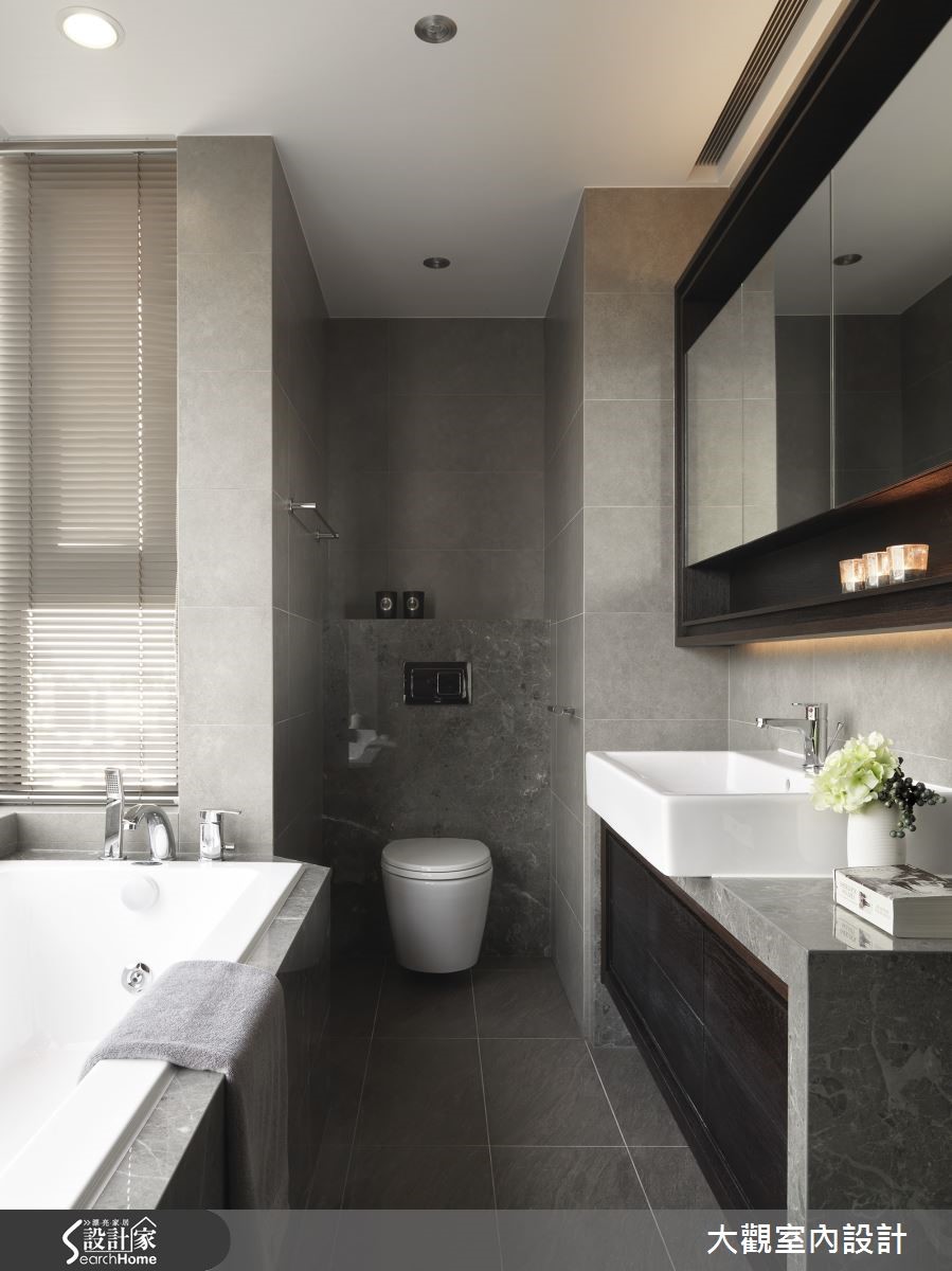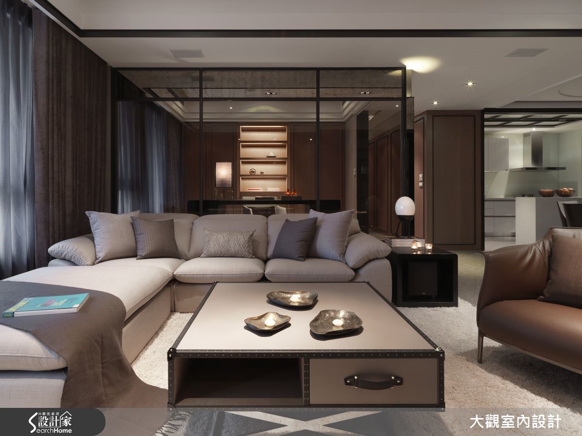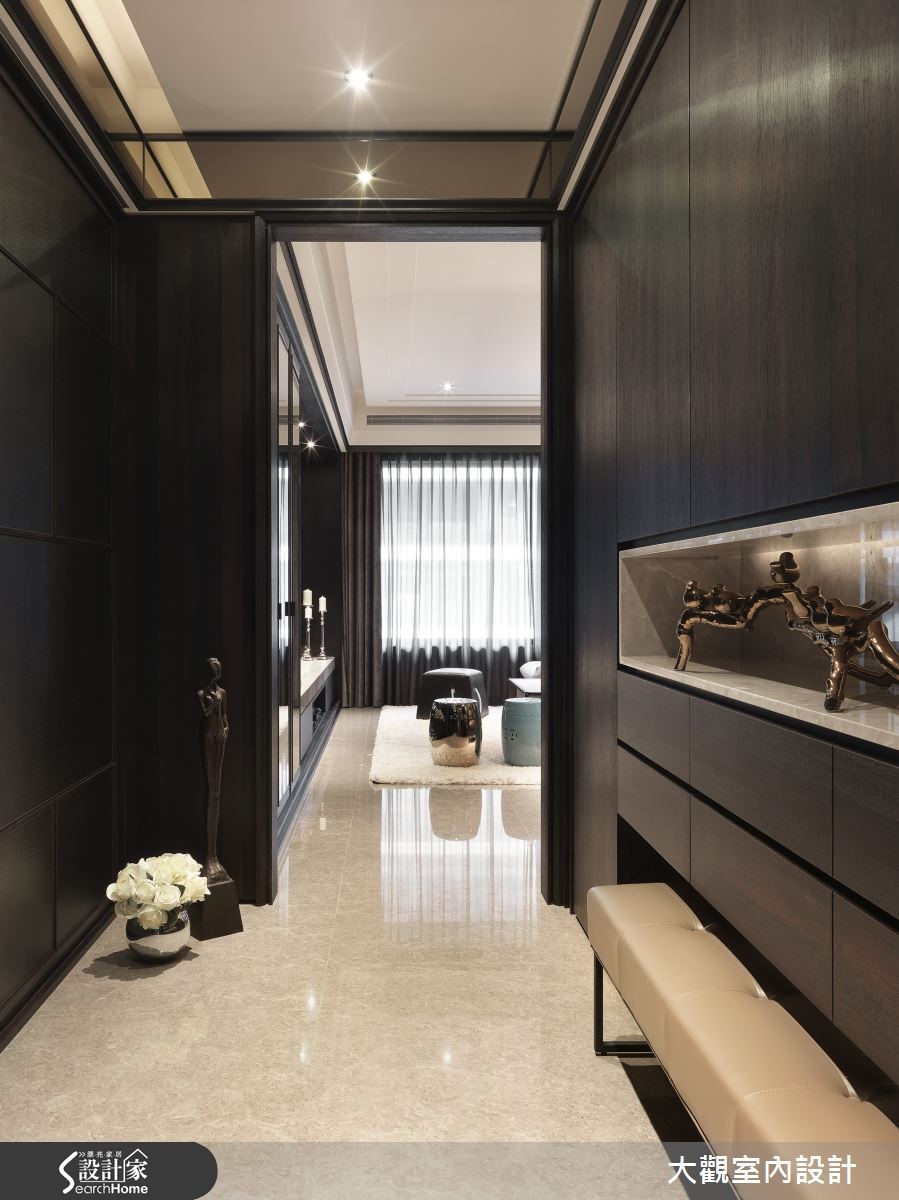 132平方米居家,以大观设计团队擅长的现代风格为发想,多处利用染色木皮、大理石与铁件等,替屋主打造出宛如酒店般的高质感居家。屋内无不弥漫着一股优雅氛围,且整体空间采光良好,连卧房与卫浴设备也不例外。【简约线条诠释奢华材质】自玄关处往客厅方向为长型走道,延伸的路线使整体有了景深效果,空间更具层次感。走道两旁皆为柜体,满足屋主对收纳的需求。客厅的深色电视墙面结合了透亮石材,沙发家饰的色调则选用柔和的浅系为主,加上一旁的镜柜,使整体在明暗之间取得了平衡。餐厅内吸人眼球的莫过于那奢华的水晶吊灯,搭配着给人圆满印象的圆石桌,更多了份贵气感。而卧室分别表现出明亮与沉稳截然不同之氛围,卫浴空间并以石材为主,辅以木质注入温暖,沉静之气氛使人有来到酒店般的错觉。