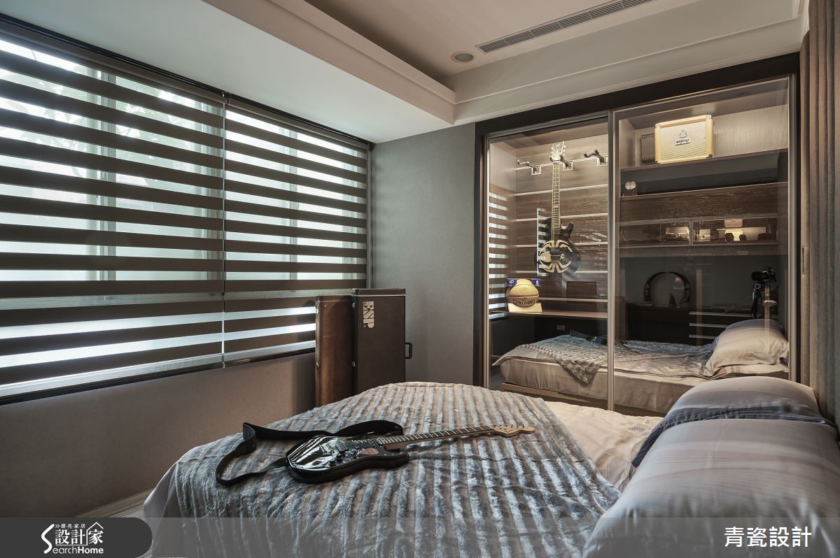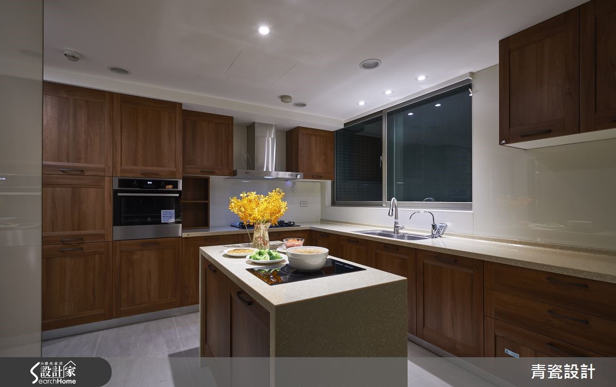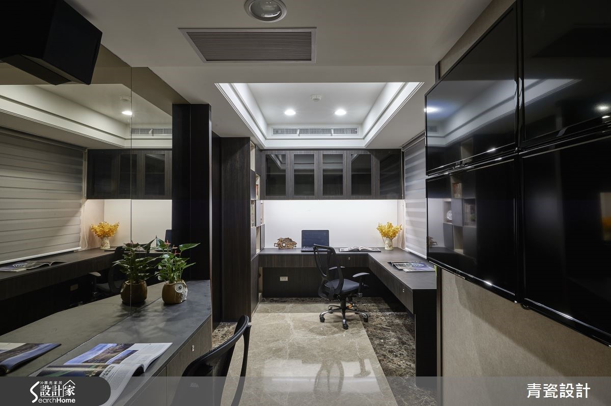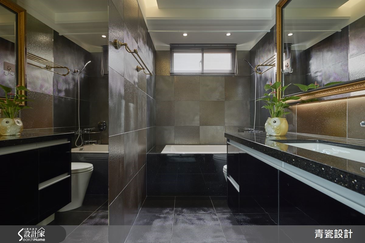 这户坐拥264平的宅邸,深具大器典丽的元素,加上宽敞的内外玄关、富有沉稳质调的客厅与精致的用餐空间,透过新古典风格别出心裁的设计,居住者的品味与气质。【铺陈镜面、金箔,造轻奢质感】设计师为屋主量身打造,将中古屋翻修成可全然放松休憩的气派大宅。从矜贵的外玄关设计,即可看见屋主对风格的要求。大理石地板、造型水晶灯及钛金属板相互辉映,在茶镜的反射下显得格外华美;进入内玄关走廊,即可由金箔镂空隔屏,略窥开放客餐厅的优雅风貌。陈设沉稳家具的客厅,选用奥罗拉蓝大理石电视墙,搭配两端金箔柱体,显示居住者的气度非凡。餐厅采用金箔吊顶与水晶吊灯,搭配8人圆桌,衬托得宏伟雄大。黑镜墙面与后方有着金箔滚边、数量可观的酒品与收藏展示,更显雍容。主卧以优雅墙纸与黑檀木柜体为视觉亮点,配有金质玻璃拉门的大型更衣间,更显时尚质感。兼具时尚与品味的次卧,衣橱则有着茶色玻璃的特殊设计,可做为穿衣镜使用,在注入轻奢质感的同时也富含机能。