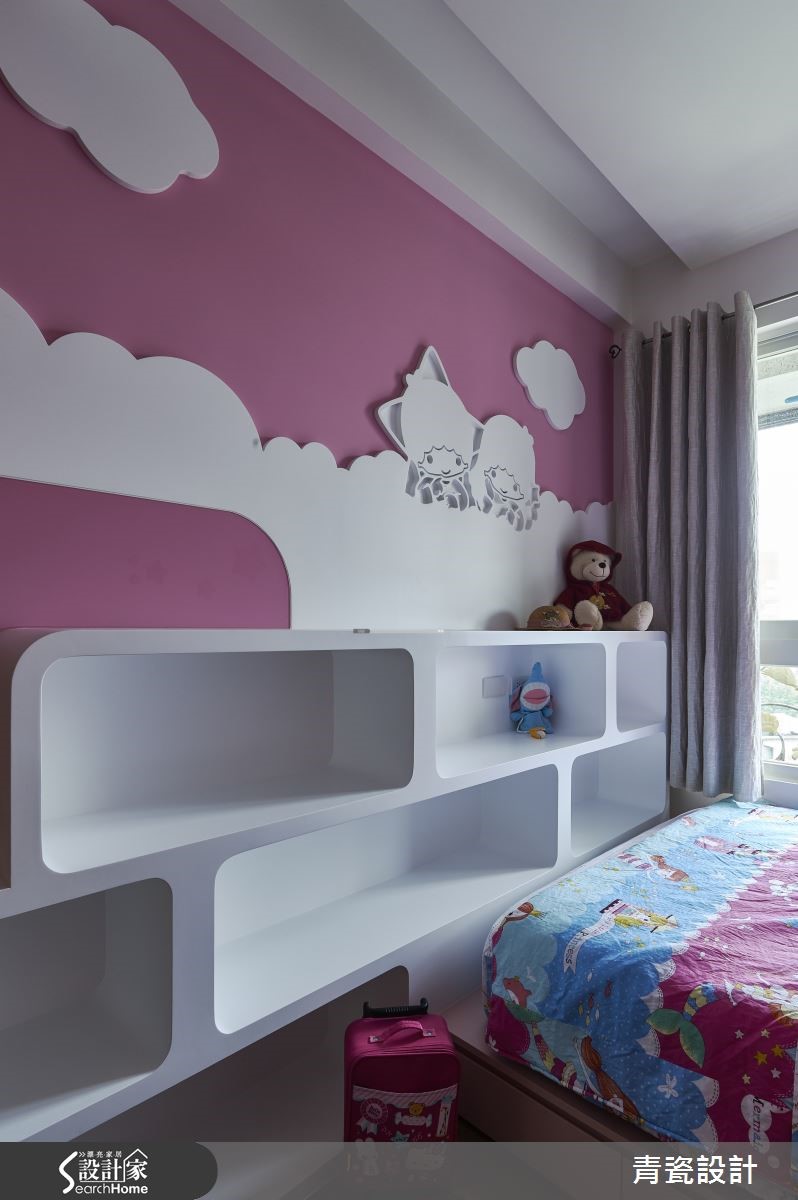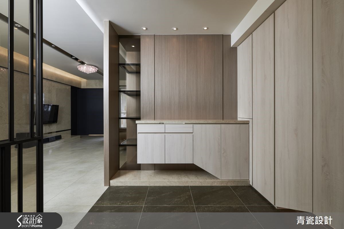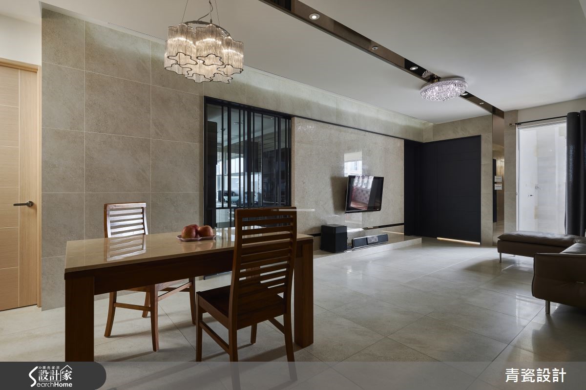 125平方米的空间,虽并非宽敞,然而透过设计手法的运用,也能打造出气派的质感宅。设计师巧妙运用造型、材质连贯每个空间,且善用利落的线条设计,使空间开阔感倍增,打造出独具特色的现代风大宅。【开放设计搭配拉门,扩容空间】走进大门,映入眼帘的是简约的玄关领域,运用柜体型塑流畅线条,搭配木质的温润表情,诠释气派印象。客厅则赋予素净的色调,保留大片留白空间;沙发后则规划半高墙结合书桌,规划开放书房,建构敞阔视感。天花板规划镜面灯沟,以金属材质映照时尚气度,并透过线性设计串联客厅、餐厅,使视觉更加延展。厨房加装了玻璃铁件推拉门,呼应玄关隔屏的设计,亦保有餐厨之间的分界,适当阻绝油烟四溢的干扰。有别于公共空间的沉稳风格,女孩房充满了个人特色,设计师以粉红色做为主调,规划立体感十足的墙面造型,并结合实用的收纳柜体,打造出美观、机能兼具的梦幻儿童世界。