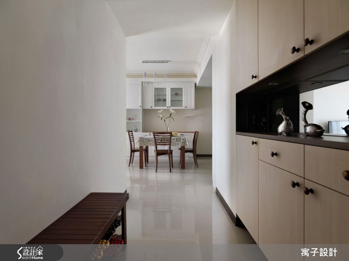 这户83平方米的新屋,由于格局方正,设计师不动隔断,以乡村风的温馨甜蜜为空间定调,运用线板柜体、碎花家饰,并利用淡雅柔美的色彩,打造出专属两个人的清新风格。【线板柜体奠定乡村风格】玄关贴心配置衣帽柜,中间的镂空设计能摆入喜爱的装饰品,为生活妆点小乐趣。高度适中的穿鞋椅同时兼具收纳机能,相当实用。客厅的大面落地窗带入美好清新的采光,客厅与餐厅以开放式设计连结,简单而淡雅的空间配色营造了静谧的氛围。餐厅一侧布置丰富收纳,透过线板柜门的表现,奠定乡村风的基础,而简约感的木桌椅、如风铃般的吊灯,点亮用餐的唯美情调。走进主卧,墙面以浅紫色调搭配白色的欧式床架,淡蓝色的床帘伫立在落地窗旁,很有异国的浪漫风情。