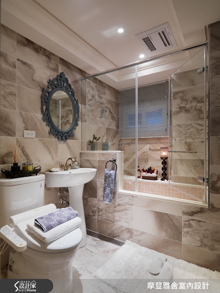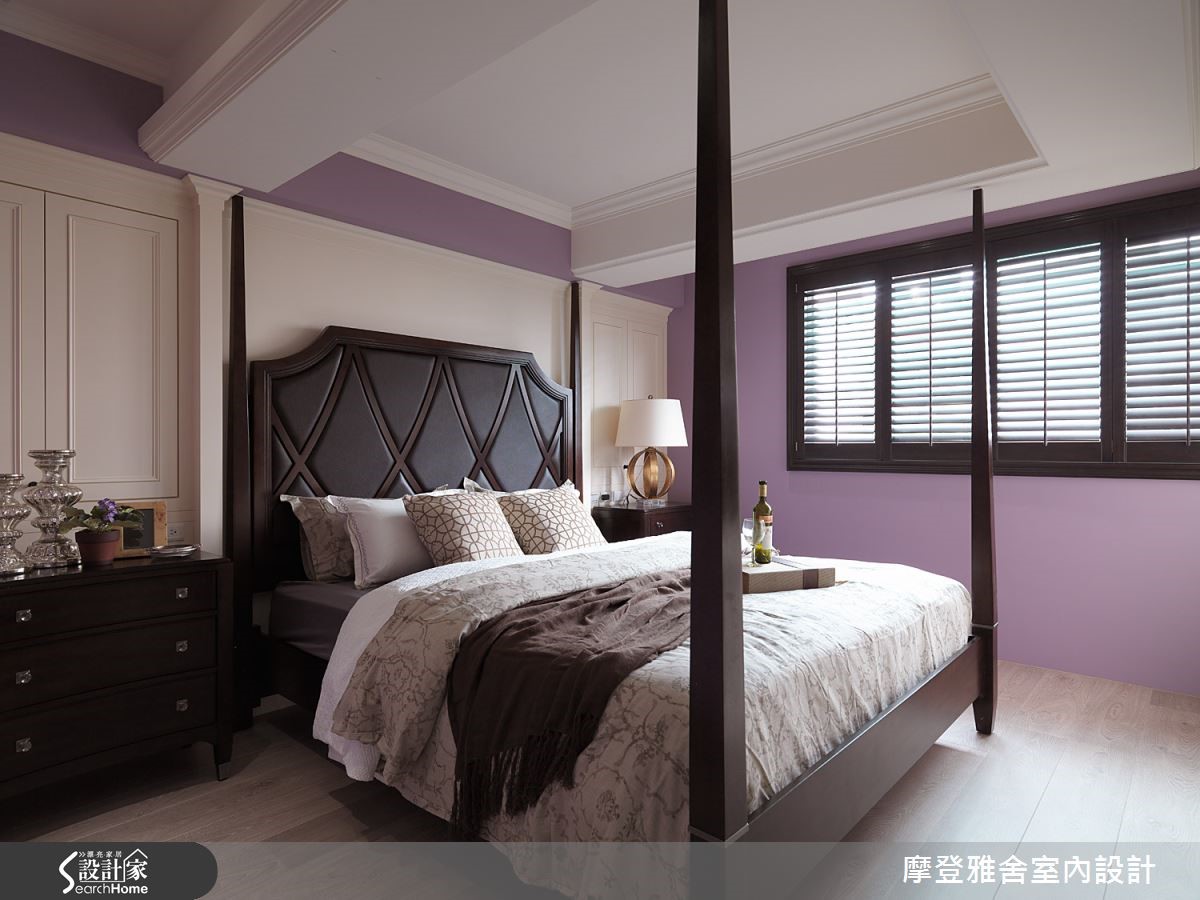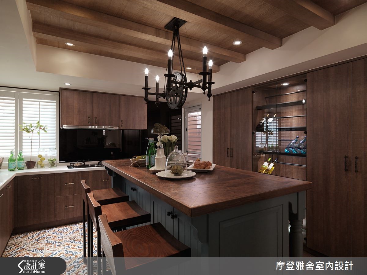 设计师以基本美式语汇串联各场域,形成鲜明的风格主调,但处处可见多元的细节巧思,无论是仿小酒馆风格的餐厨领域,又或者度假感寝卧,皆针对家族成员作出不同的客制规划,快让我们一起走进这个家看看吧!【场域重新分配,建构通透视野】公共领域内,电视墙经由方位转换,采以半高设定安置于玄,不仅区隔入口与客厅,更打造通透视野;同时在客厅作出一道黑框,形成利落框架,沙发后墙则采以白色文化石铺陈,加入十字架图腾构成焦点,且在墙体置入收纳机能。【度假感居室,体现舒眠情境】一家人皆爱品酒,在餐厨天花规划木作格栅,并配置一座中岛吧台木餐桌,透过沉稳木色,注入国外小酒馆般的风韵;主卧天花板则规划假梁设计,平衡空间格局,搭配淡紫壁面与木质四柱床,挹注度假感十足的岛国情调。走进女儿房,可见缤纷有如马卡龙般的多彩色调,采以柔软床具建构轻盈感受,营造缤纷梦幻的调性,而卫浴铺述西班牙板岩砖,则营造质朴的空间调性,且舍弃制式浴缸,施做泥作浴缸搭配瓷砖拼贴,打造独树一帜的泡澡天地!