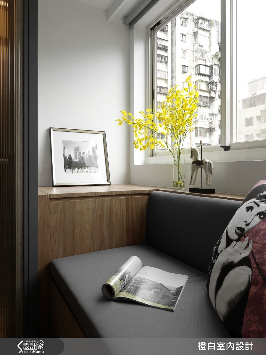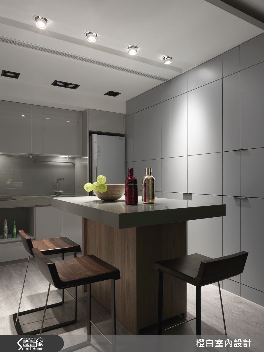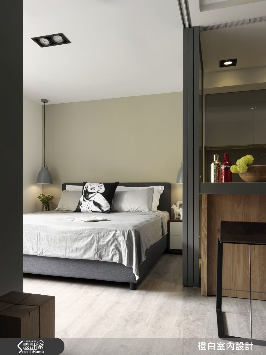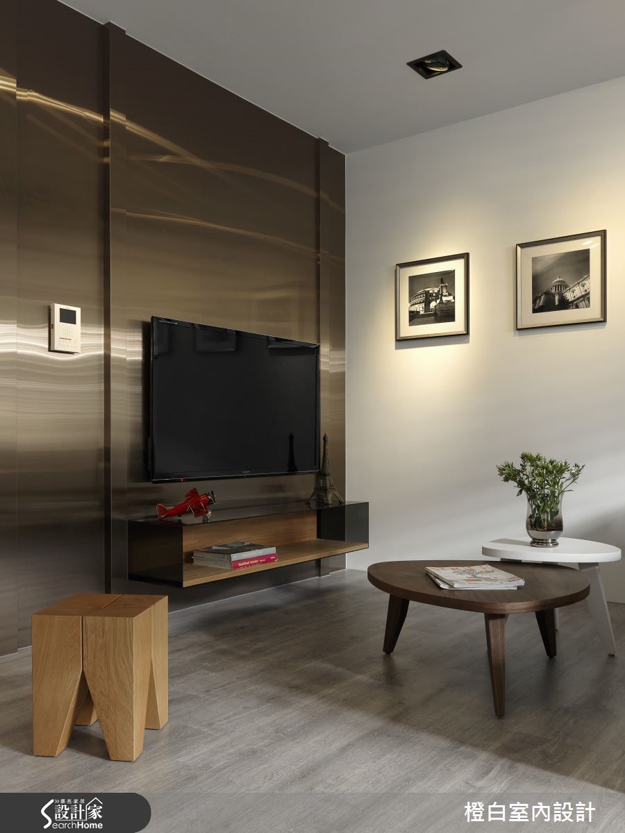 对于43平方米老屋,屋主希望拥有蕴含质感、舒适简约的居所,设计师除了以酒店风格满足屋主想望,更破除了原先老屋的不良采光,让日光悠然倾泻,进入专属2人的个性生活。 【移动吧台,餐厨不狭窄】拿捏空间比例划分出客厅、餐厨与卧房的分野,让全然铺陈木质地板的家中,具有独立性又不失通透感。白净的客厅墙上悬挂简约相框,打上聚光灯营造艺廊质感;搭配草绿沙发与深浅不一的边桌,让视觉浸润在清爽闲适的氛围。客厅金属电视墙面提升轻奢感,佐以轨道照明,展现高雅气息。天花做吊顶隐藏空调,并区隔客厅与后方阅读空间。精致的吸顶灯散发柔和光芒,搭配窗外和煦阳光与绿意,在定制木质写字台上静静书写快意人生。开放餐厨运用可移动的吧台餐桌与高脚椅,让动线更加多维,且屏除了空间的局促性。内嵌式投射灯让浅色收纳墙更显利落,搭配纯白一字型厨房,营造时尚气息。灰色门片兼具了私密与明亮性,色调清雅的卧房内有飘窗更显闲适,卫浴收纳柜以木石材质展现酒店般质感。