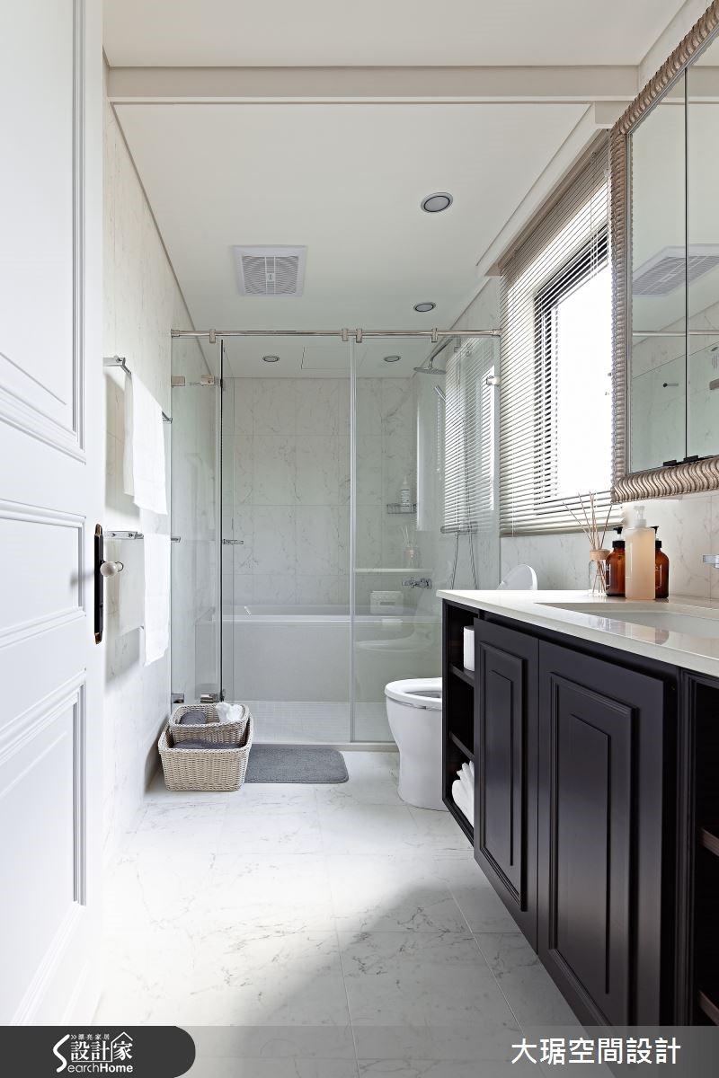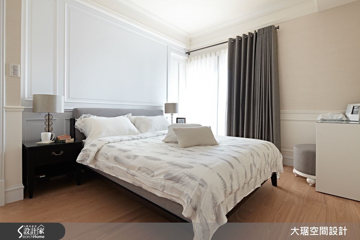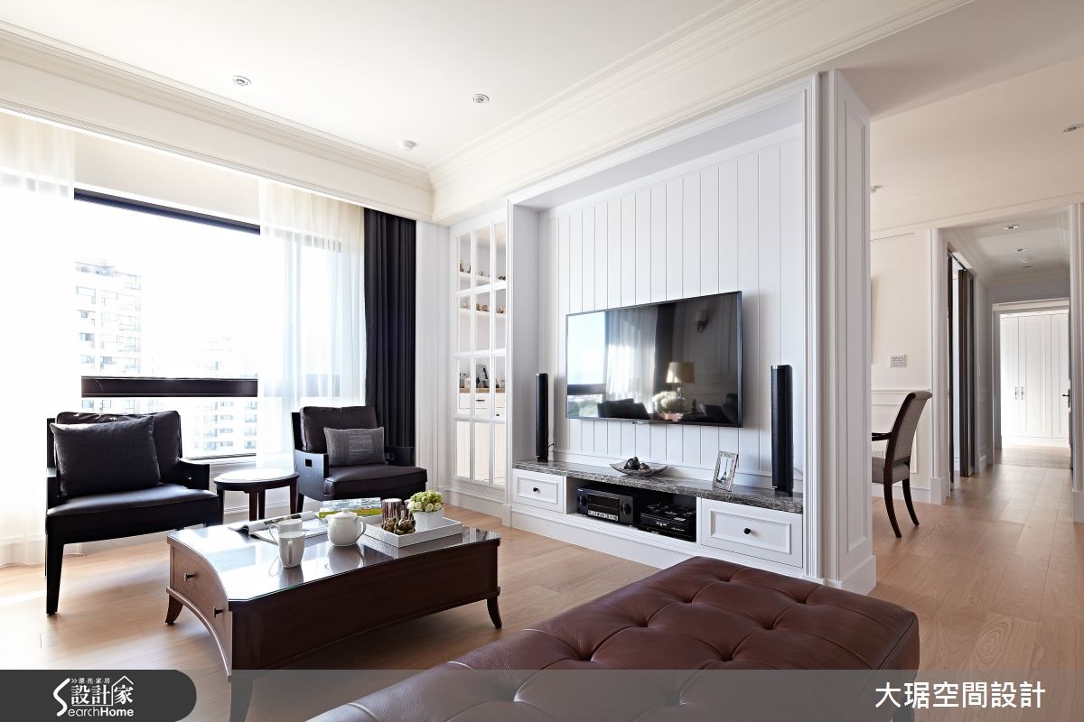 以大量纯白色调为基底搭配木质地板,佐以经典美式线板与木百叶,营造明亮舒适的异国气息,彷佛身处美国曼哈顿的上城阁楼套房。【细腻巧思展现经典美式氛围】客厅中,纯黑格状的皮制沙发与棕色钉扣长椅,搭配壁面嵌灯与木质茶几,有着复古的经典美式氛围。纯白电视墙不只作为客厅与用餐区的界定,同时也是餐厅区的置物格柜,展现出多元应用的机能性,细致的格柜线板,更进一步带入浓厚的美式气息。【清爽透亮,让轻松感倍增】洁净透亮的 L 型厨房,以米色系统柜达成清爽视觉一致性,有着现代气息。采光绝佳的半开放空间,木质书桌面对大面书墙,开启了阅读乐趣,室外阳台上方的木质隔断,在阳光照射下增添满点度假气息。【多元色系营造专属品味】三间卧房则以美式基调,分别运用家具摆饰与色彩调和展现三种风格。主卧床头线板与灰白色调、次卧的木百叶与地灯以及清新粉蓝色调,显示了沉稳大方、温柔知性与清新可人的最佳演绎。