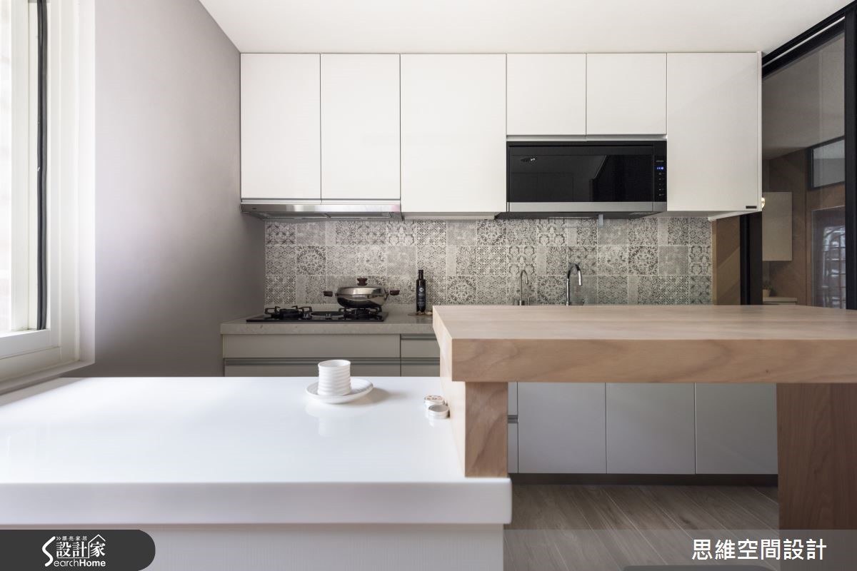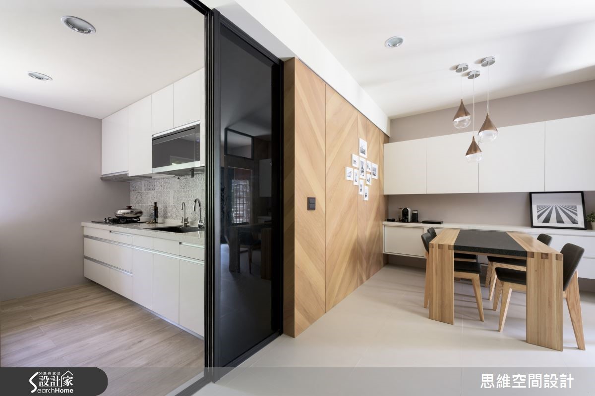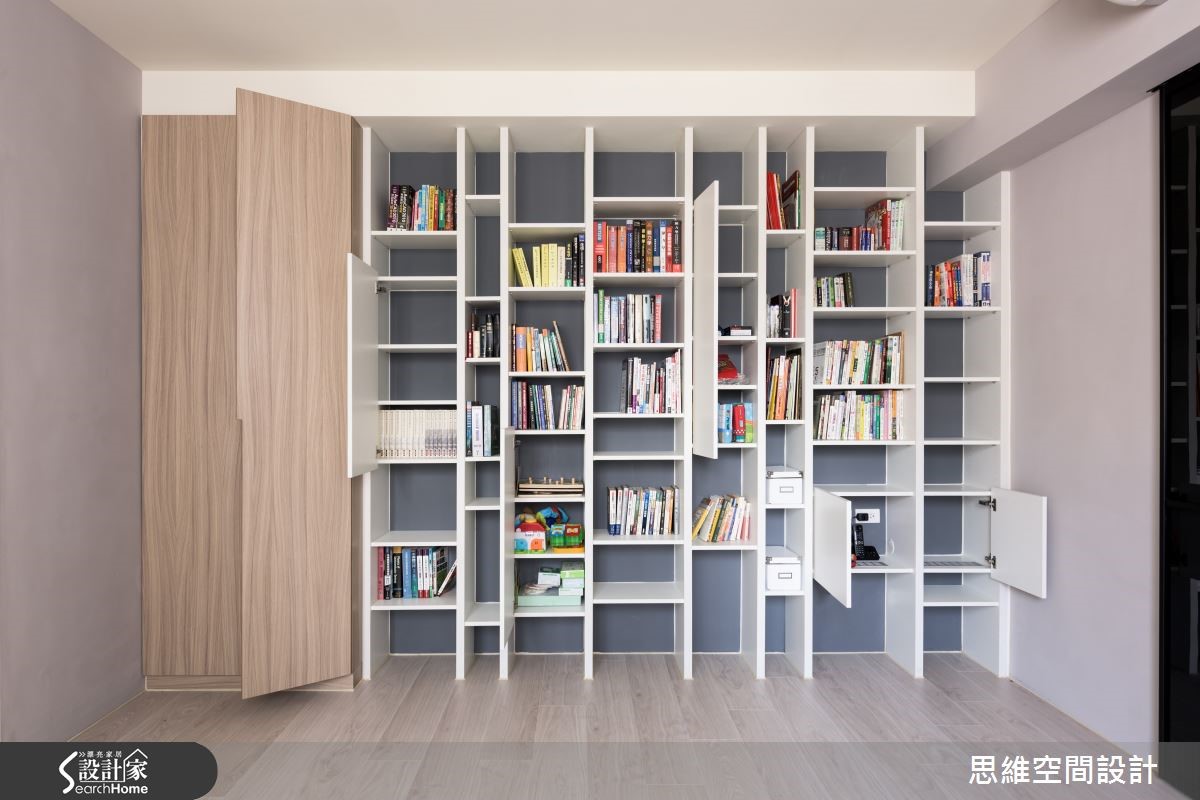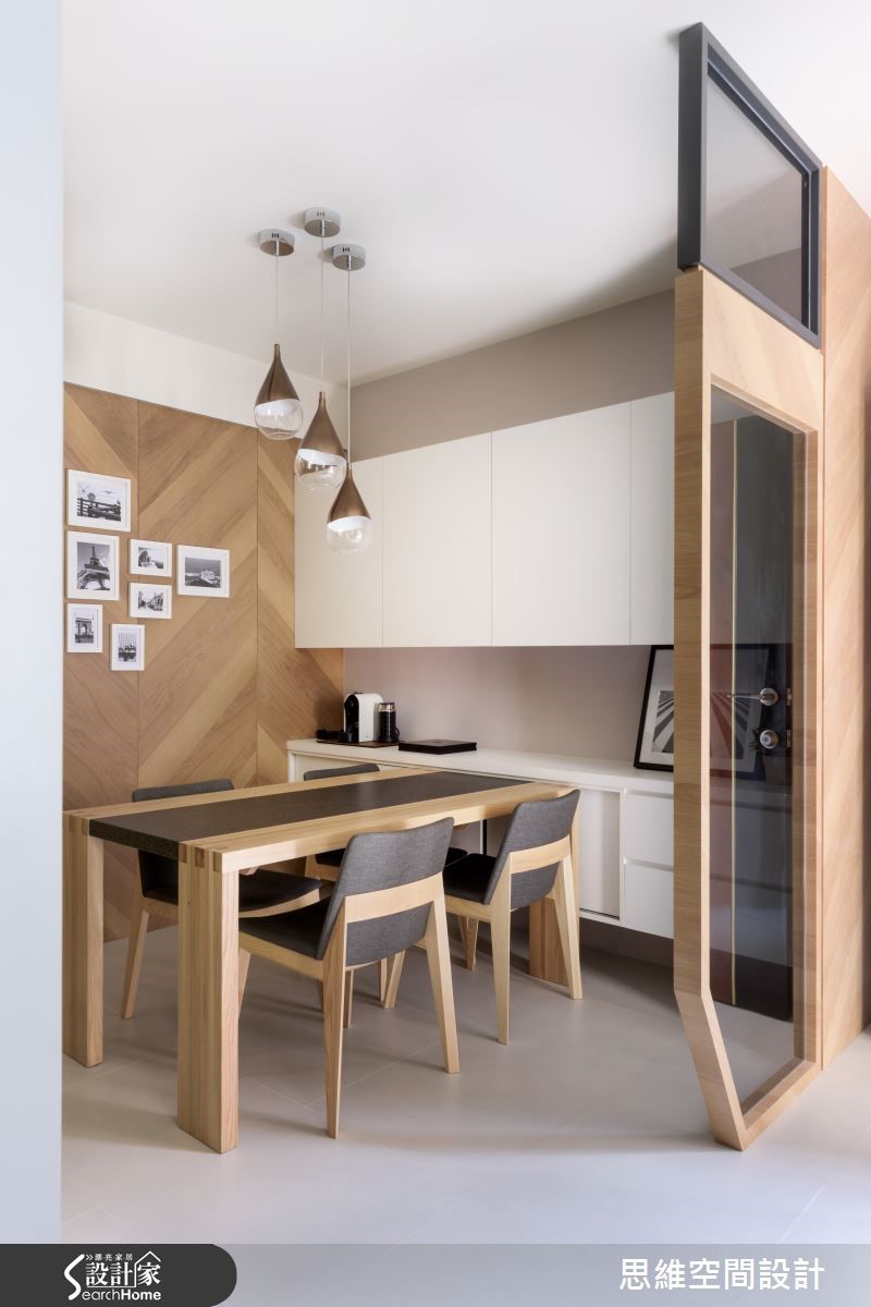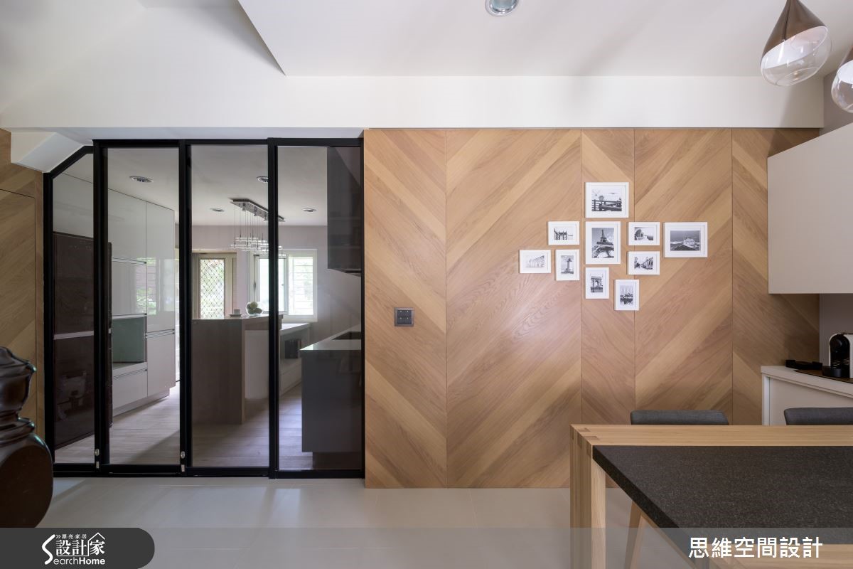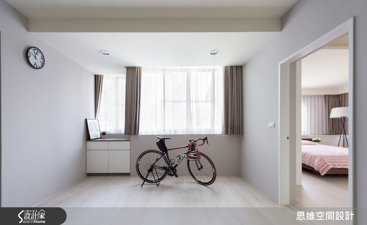 此栋楼本为屋主长期出租,近期因成家收回当作自住,请设计师进行翻新与装潢。虽无过大问题,但屋龄偏高、加上格局相当特别,两层楼高中竟暗藏两间跃层空间。看设计师如何巧妙规划,给予一家四口完美居住空间。 【巧用木质和色彩,空间不单调】一楼主要为夫妻接待客人的公共空间,因此将客厅安排在两面采光的位置,形成通透明亮的空间。电视墙采用浅灰色铺陈,搭配深灰柜体和灰质沙发,深浅相间的同色调,形成舒适协调的视觉效果。通过玻璃木质隔屏,进入餐厨空间,木质餐桌椅在水滴型吊灯衬托下、搭配纯白悬柜与实木墙体上拼贴的照片,视觉不单调。大面积玻璃滑门,可阻绝油烟进入室内。纯白空间与木质吧台的组合,搭配墙面花砖,透露唯美气息。 一楼通往二楼的跃层房,为从事音乐工作的女主人对外授课的钢琴房。接着便是清爽大方的起居空间,特别打造大面书墙,为热爱阅读的一家四口营造了温馨的互动区域。二、三楼间的跃层则做为小孩房,整体居家空间运用一气呵成。