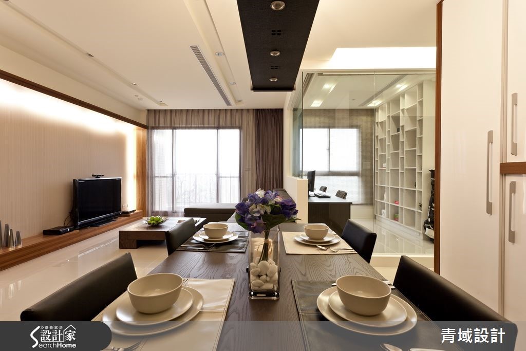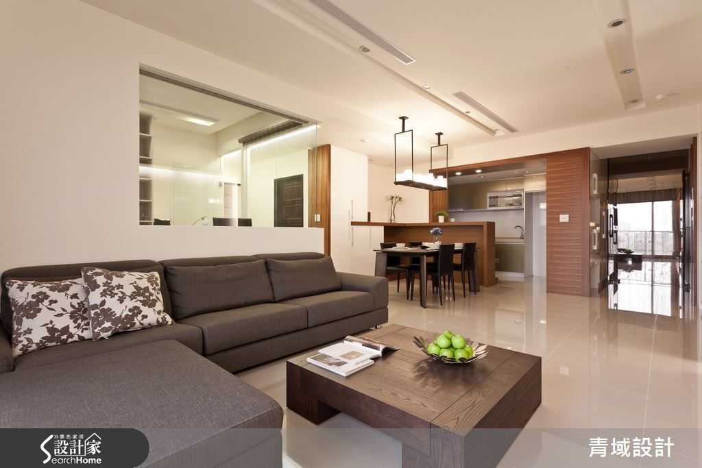 116平米居宅为夫妻二人的甜蜜居所,设计师在拆除原先的厨房隔断后,让公共空间采开放规划,使餐厅一跃成为空间主角,替生活增添了更多的互动性与情感! 【开放空间导引光线,营造明亮感】走进居家,可见开放的公共空间视野,赋予全室明亮清爽的感受,并佐以白色基调,演绎舒适的生活主张,且让沙发背墙局部点缀清玻,导引室外光线与对流,保有通透视野。【串联生活空间,创造流畅动线】餐厨空间则在拆除隔断后,形成可与客厅密切互动的开放格局,同时运用吧台、餐桌与造型灯具等,营造温馨柔和的情境;而延伸至主居室内,设计师则拆除了原先封闭的更衣间,采用开放手法型塑空间,让睡眠、更衣、卫浴三者相互连贯,开启流畅便利的生活动线!
