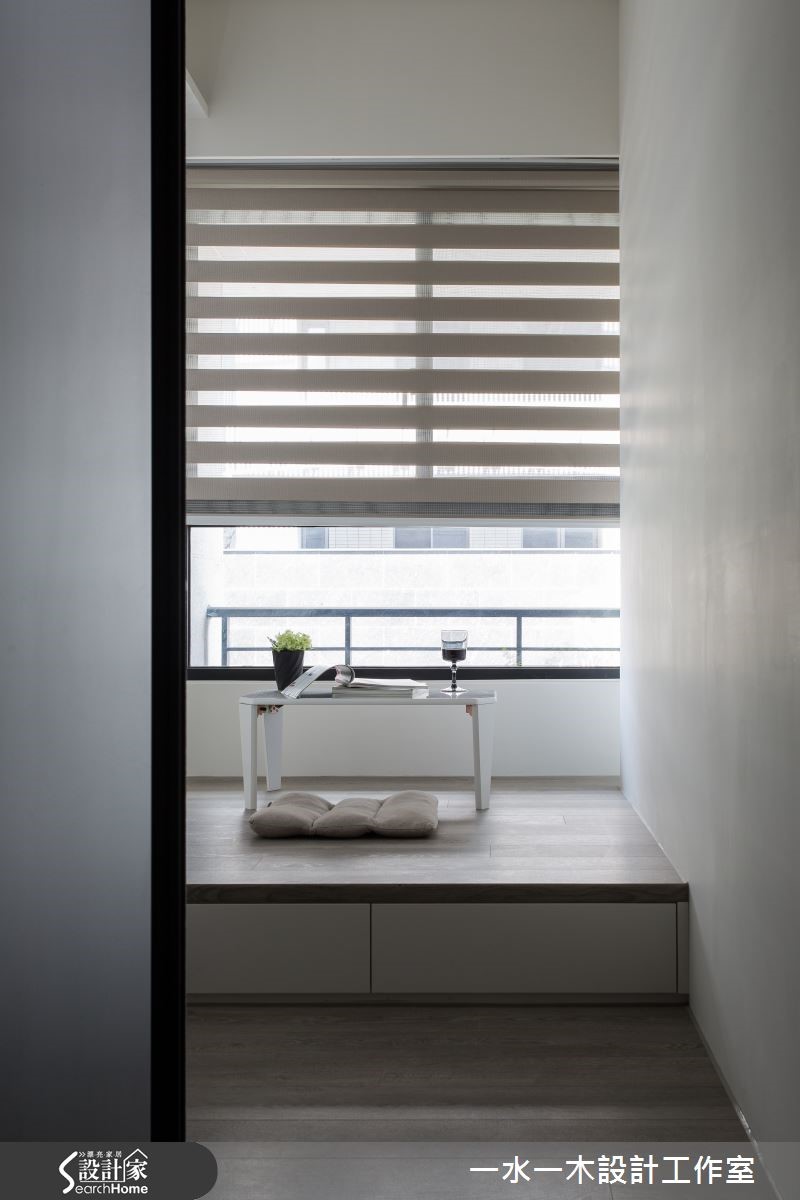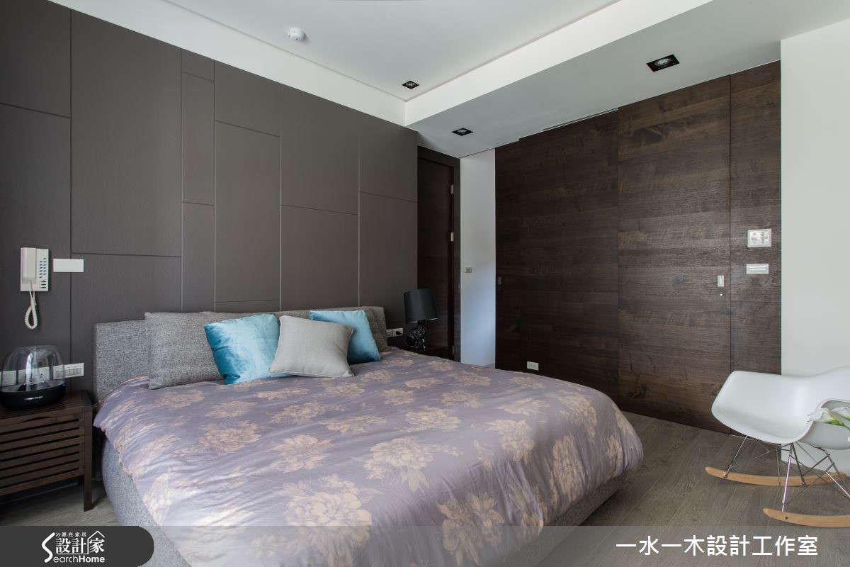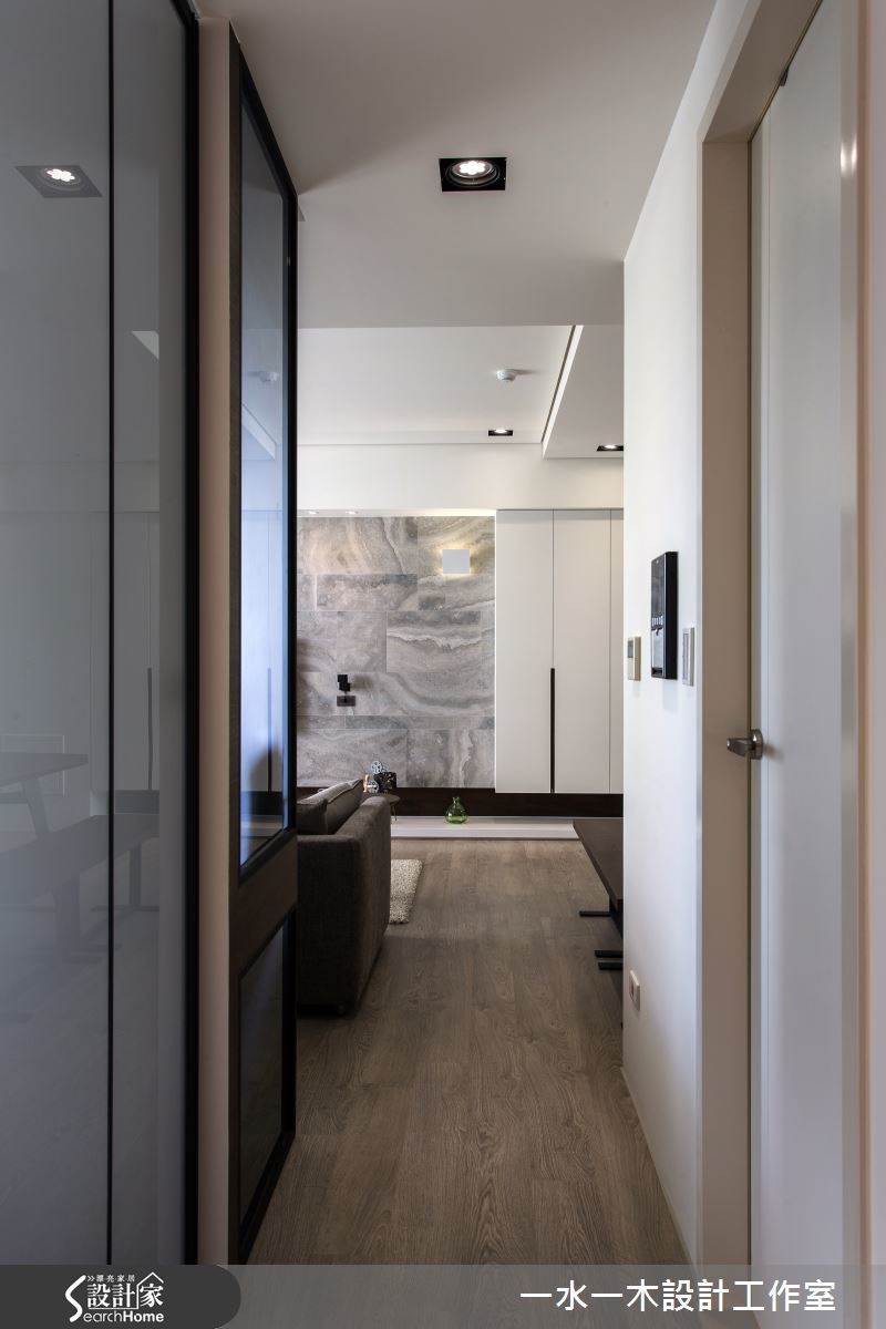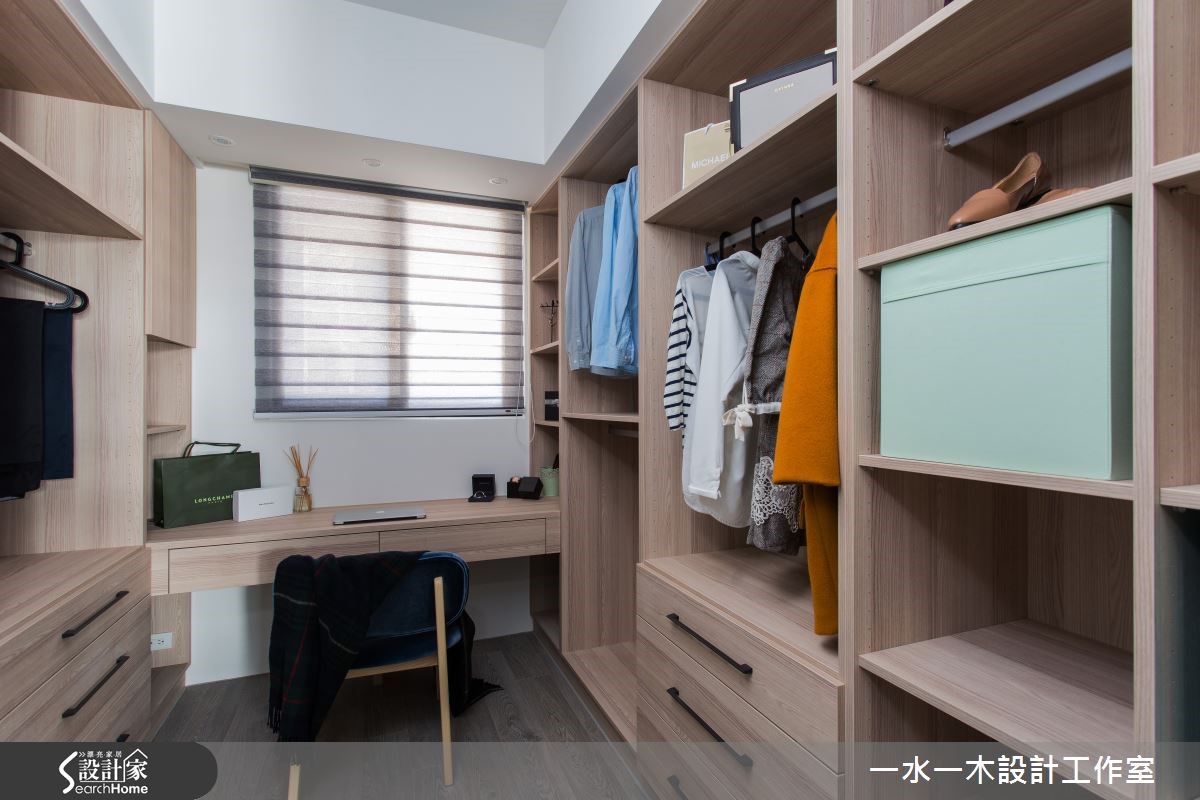 空间设计应当回归生活本质,规划繁为简,将繁杂过多的设计剔除,以开放式设计使区域通透明亮。不同的材质相互平衡视觉效果,各角落皆蕴藏充满温度的设计,营造了怡人的生活空间。【灰白石材搭木质,简约中添暖意】纯白吊柜自玄关延伸,与天花及墙面融合,延伸视觉深度。客厅电视墙采用灰白大理石拼接而成,流云花纹拼接营造丰富视觉效果。轻浅的木质地板与窗外日光一同平衡了大理石的冷调温度。巧妙的比例切分,让沙发后方的长型空间化为专属视听区域,镶嵌在墙面上的隔板成为具展示功能的收纳架。 餐厅以深色实木桌打造沉稳气息,点缀海蓝色餐椅凸显视觉,在透明造型吸顶灯的照耀下更显温馨。延续客厅电视墙的设计,主卧床头背墙也采取几何拼接,进一步提升设计感。设计师特地打造了更衣室,除了完整衣物分类功能外,更有一张宽敞的梳妆台,让妆扮空间更加舒适。和室运用架高地板,扩增收纳的同时,更可成为休憩与阅读的多功能空间。