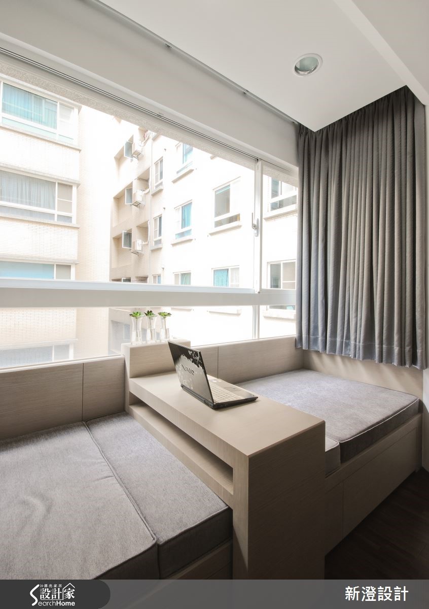 设计师以现代风手法,调和利落配色和简约线条,配合大面落地窗迎入充沛自然光,并依据居住者的日常生活习惯加进贴心设计,让二手房变身为一家3口的现代舒适宅。 【简约色调与线条打造利落空间】进入室内,大面落地窗带入清新光感,让室内看起来更加透亮,简约色调和线条将空间收落的相当整齐干净,开放式手法连结客厅与后方书房,约半身高的柜体和隔墙设计保留了空间的宽敞视野,也能界定彼此间的领域界线。 【飘窗与琴房为客厅注入多元机能】除了电视墙,客厅中也摆入钢琴和窗边的柔软飘窗,融入不同机能,构成日常生活的温馨交集。沙发与书房隔断墙一体成形,巧妙连结两个空间场域,后方的展示收纳架则加入铁件设计,打造简约时髦感。【利用木地板创造温润空间】来到主居室,保留木质纹理的海岛型木地板,铺叙温润舒适的梦境,墙面上嵌入展示格,可以放入喜欢的艺术装饰品,注入生活情趣,另外,房内的窗边也配置飘窗区,保留一方能让心灵沉淀的静谧空间。
