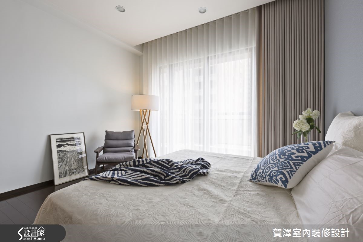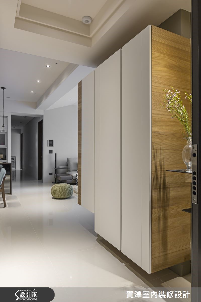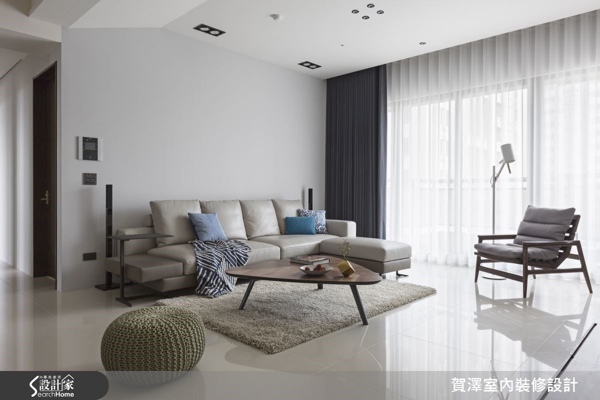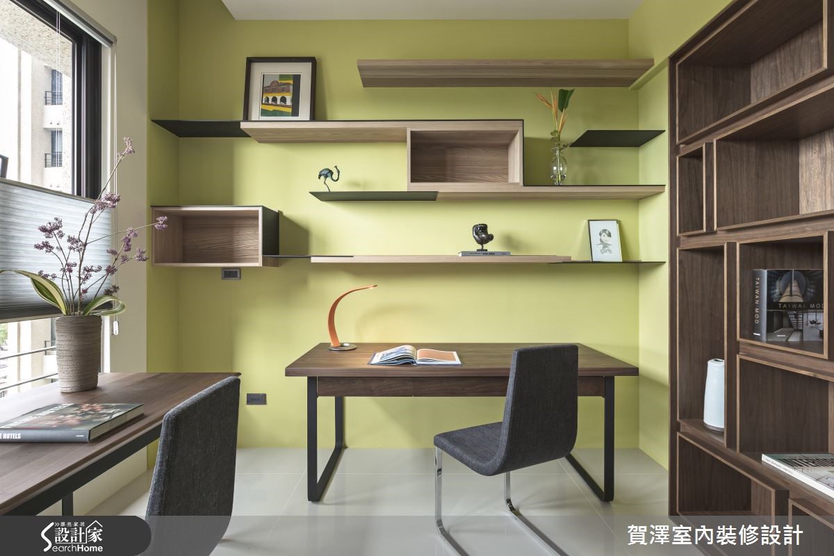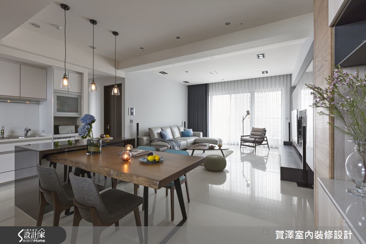 设计师有着敏锐的洞察力,常将屋主的外显气质反映在家的面貌上,打造富有个人特色的定制居家,让一家人可以在适合自己的环境生活。本案屋主有着单纯亲切的性格,乐于尊重专业并耐心沟通,因此设计师依屋主个性打造出清爽、通透的现代风居家。【轻爽透亮的采光,简洁流畅之感】宅邸本身具备优良采光与方正格局,设计师依循其优势,以留白手法打造清爽利落的视觉感受。宽敞洁白的玄关与榆木磨砂木皮悬柜的双重效果,成功制造轻盈感,同时与后方纯白空间形成修长的视觉延伸。主要光源来自客厅落地窗,使开放式客餐厅显得通透明亮,设计师将用餐空间置于收纳柜与一字型厨房之间,并将餐桌与中岛吧台进行垂直结合,达成多层次的运用机能,将整体餐厨空间巧妙化为一体,动线流畅大方。清爽色调的草绿墙面特别适合书房的阅读氛围,而因应家中成员数量,布置两方桌面,并巧妙利用木质格柜与隔板进行收纳,美观且富有机能。而拥有清甜色调的主卧为无压空间,简单摆设与木质收纳门片取代繁杂装饰,成为助眠好帮手!