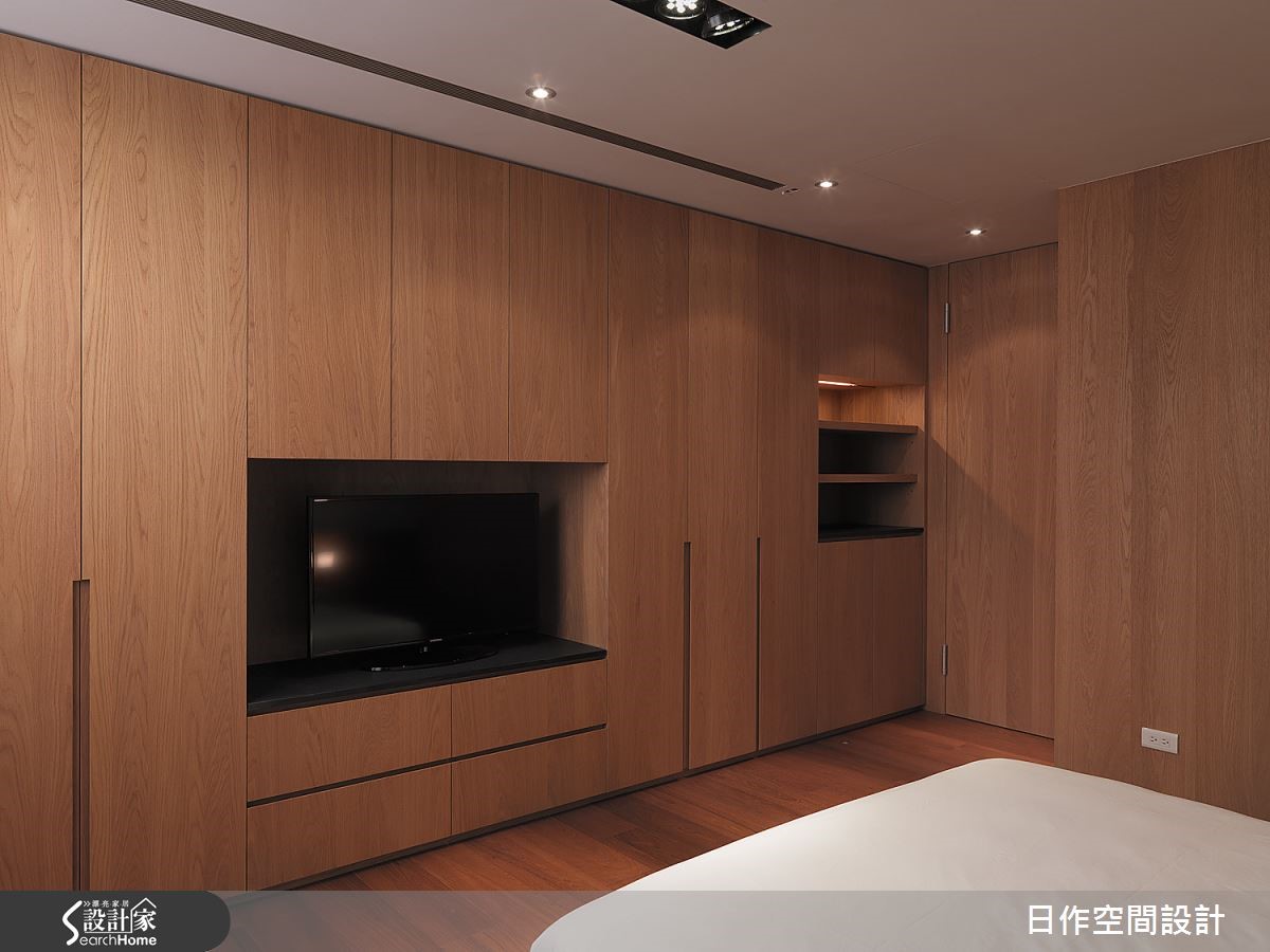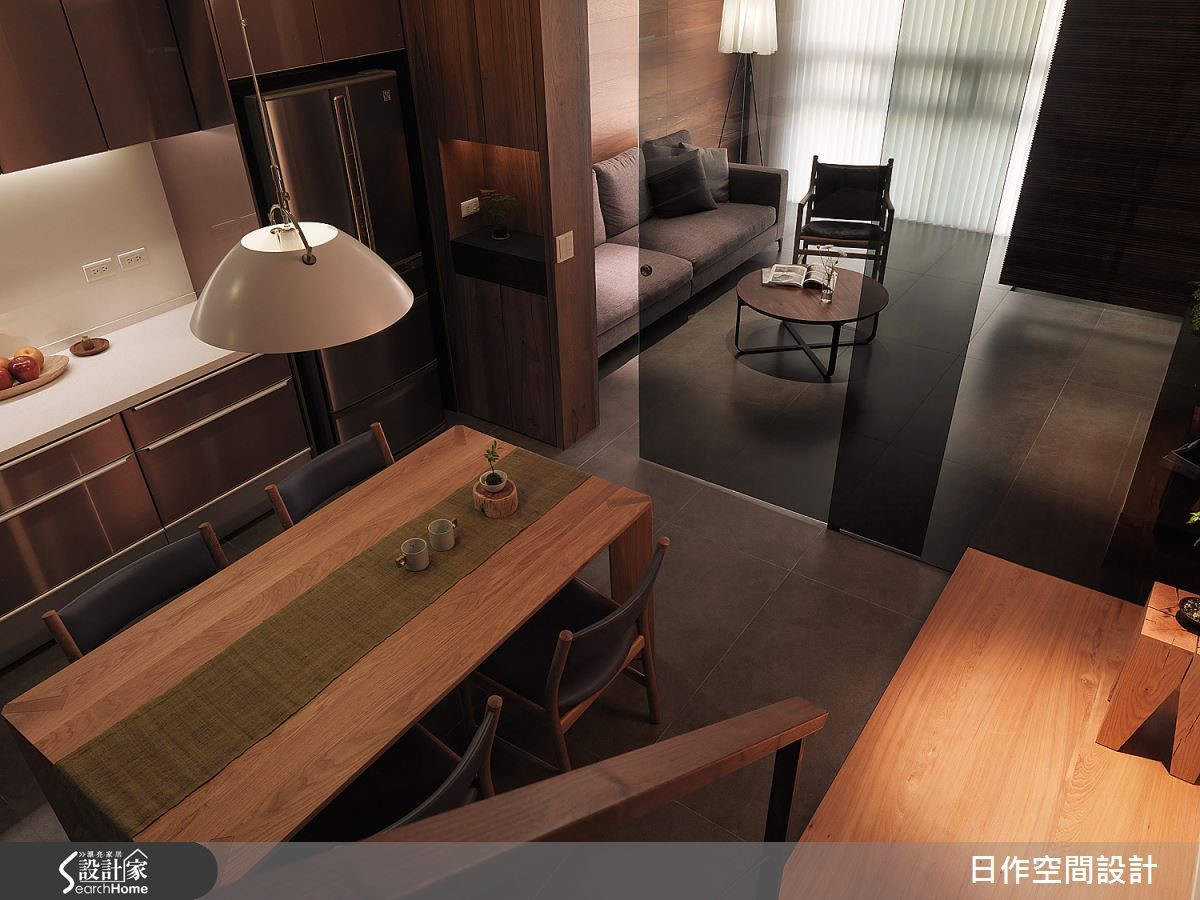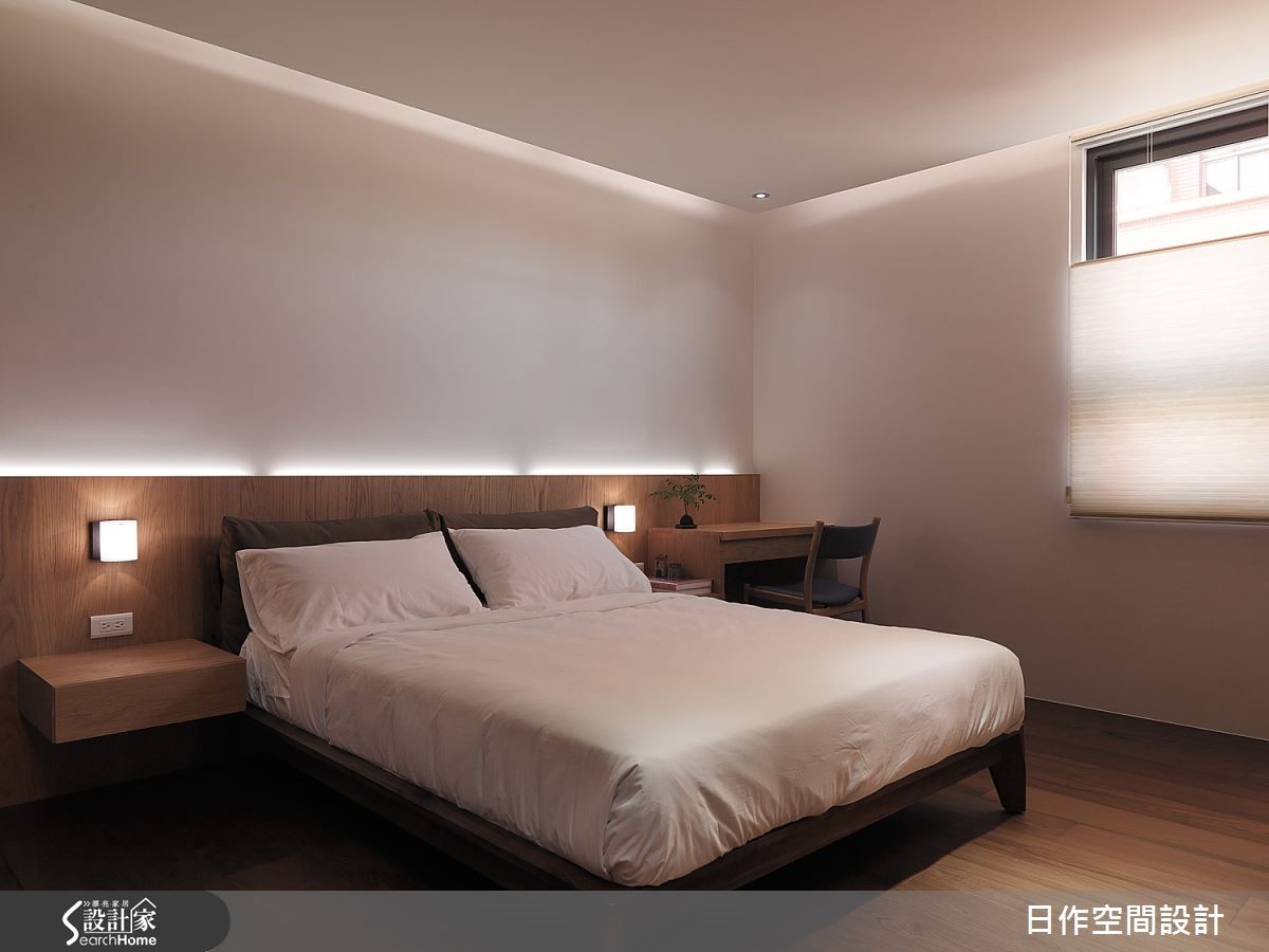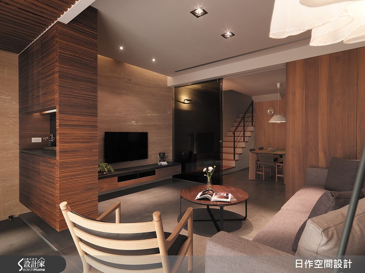 有着磨石子墙面与温润木造外观的独栋楼,宛如高级定制餐厅般的质感门面,在颇有年份的老屋住宅区中额外显得眼睛为之一亮。更采用大量引入窗光的方式,降低沉重感,让老屋活出生命力。【老屋微整型,光线引入温度感】细致木质悬柜化身玄关与客厅间的隔屏,与缜密的天花隔栅相互呼应,保有隐私却不显沉重局促。并利用拥有轻浅纹理的洞石由玄关延伸至电视墙,达成通透的视觉一致性,阳光经由镜面玻璃进入室内,洒落在柚木沙发主墙上,流动光影更使墙面充满生命力。 可随心收放的灰玻推拉门后即是餐厨区,为开放空间营造层次,大地色调的厨房与温雅轻浅的木作家具,和微醺灯光形成富有禅意的静谧搭配。后方大面积木皮包覆的收纳格柜,既美型又富机能,设计师更利用阶梯下方空间打造收纳空间,巧思与贴心兼具。阳光自窗户洒落,纯白色调与轻浅木质,为楼梯转角更添温暖与惬意。无论是公共空间的运用或是居室的布置,皆通用且百变,富有沉静和煦气息的主卧以木皮作为全室基调,散发舒适好眠的氛围。