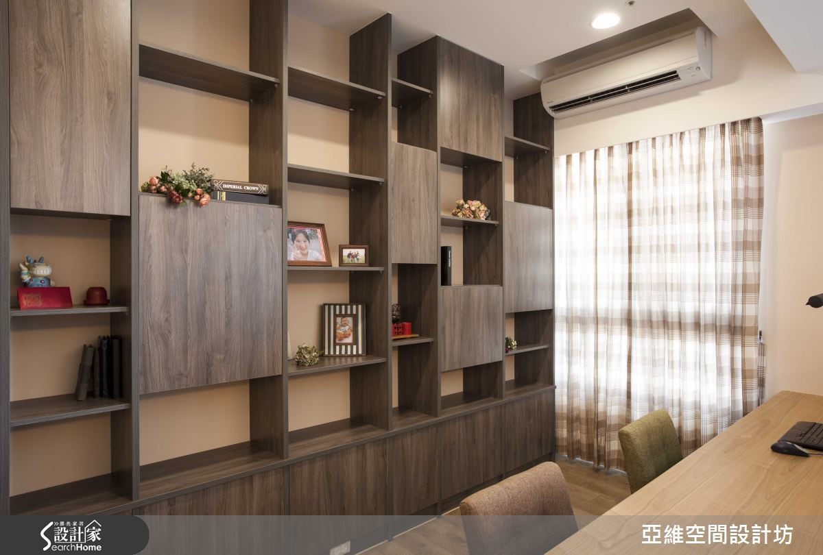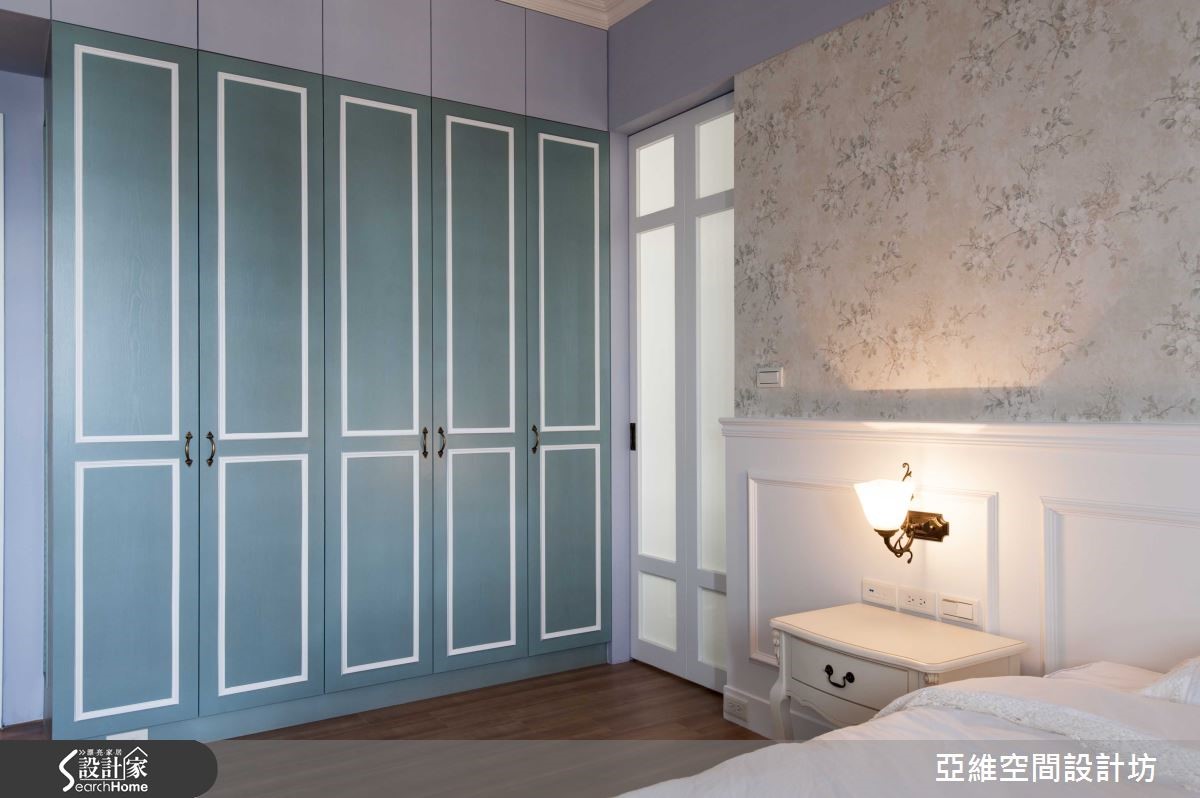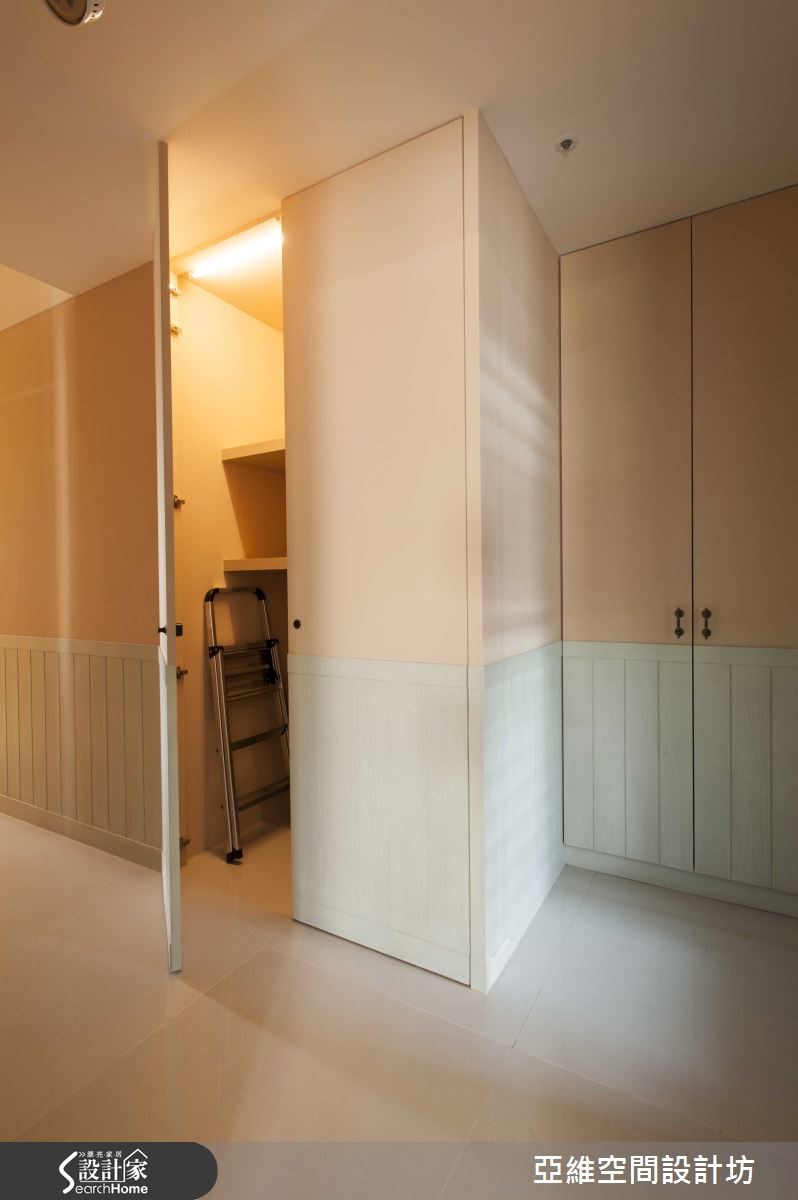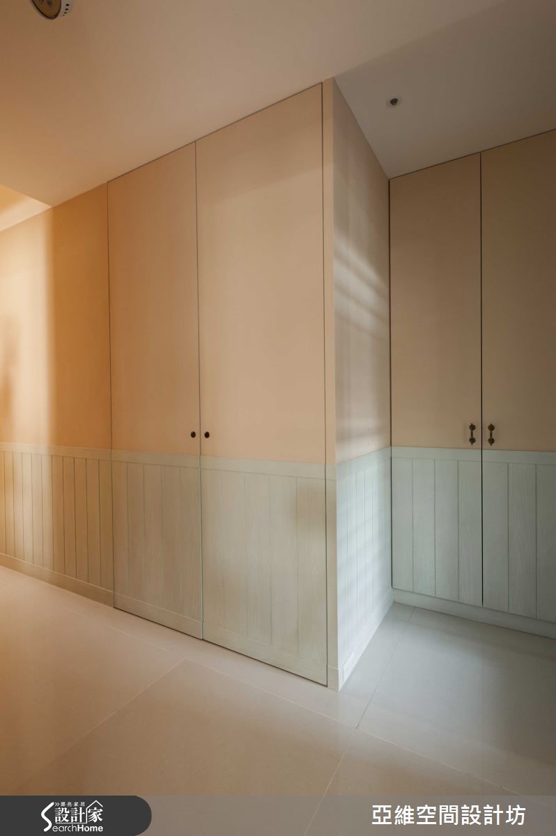 116平方米的空间,以开放式设计整合不同领域,展开3口之家的无隔阂生活,设计师以屋主钟爱的乡村风为空间定义,室内绘上恬淡柔嫩的色彩,让家变得甜美而温馨,另外也利用廊道的畸零区块打造收纳空间,满足生活需求。【隔断不做满,增进家人交流】以原有梁柱架构界定客厅、餐厨以及书房领域,厨房中岛及与书房区隔的沙发背墙皆为约半身高度,让采光和视野不受拘束。厨房以线板和欧风造型的桌椅融入乡村风语汇,并在厨房中岛旁延伸餐桌,增加互动参与感。【融合几何方格,赋予趣味律动】可同时容纳两人同时使用的书房,铺设木地板及整面木色展示柜营造沉稳氛围,大小不一的几何方格框起收纳空间,带来律动感及趣味性。设计师也在室内廊道、卧室中融入大量的收纳机能,并结合美型设计,利用门板巧妙隐藏突兀感。