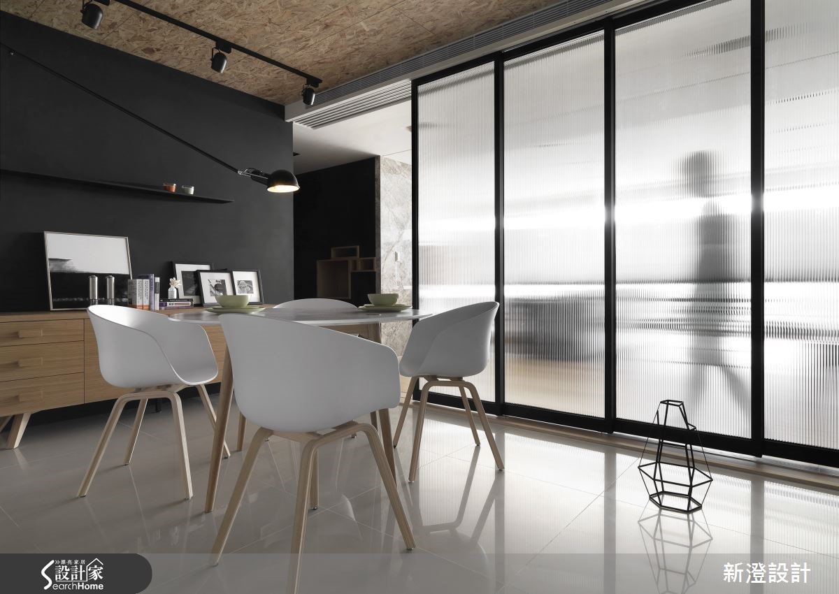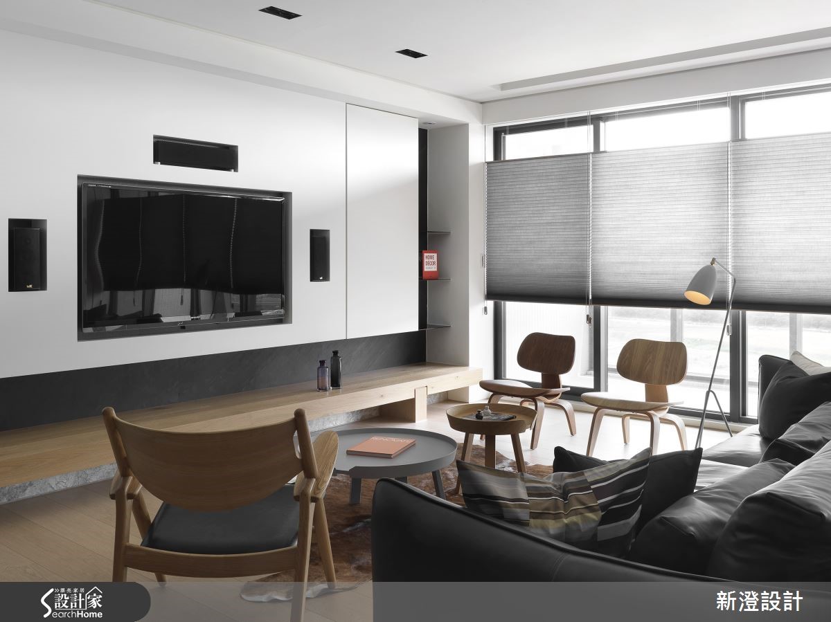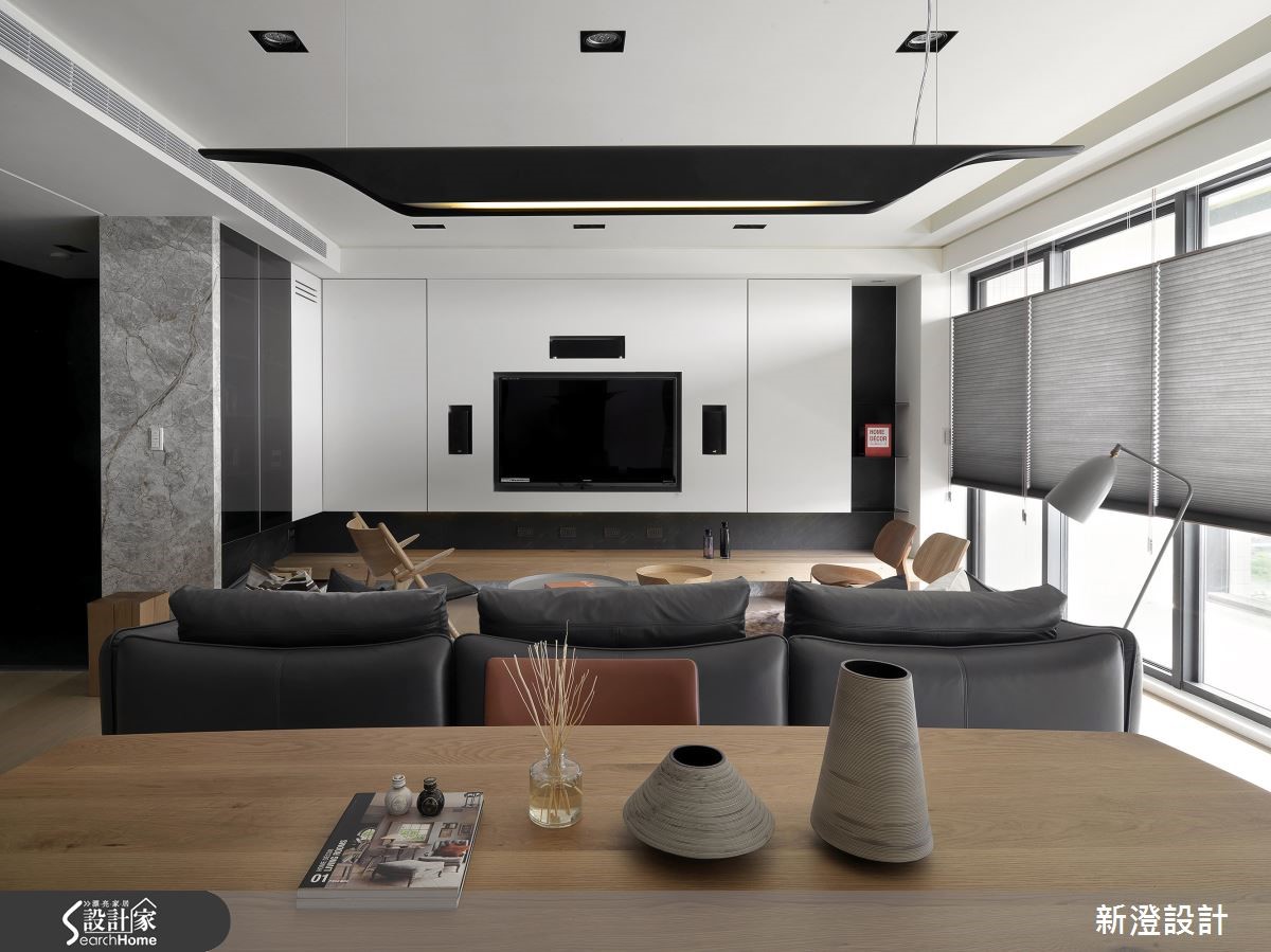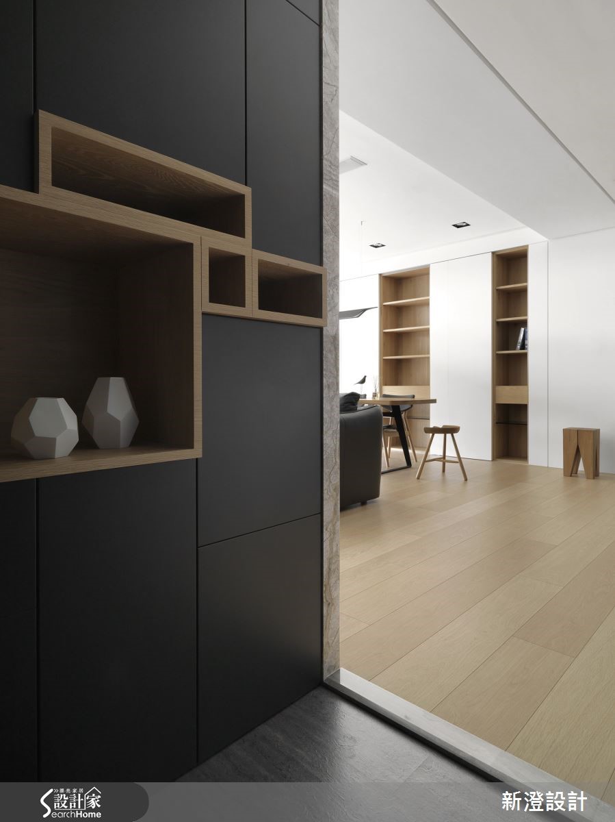 以惬意自在的北欧风格为设计概念,并利用黑、灰、白等简洁色彩作为空间的主色调,辅以木、石材质的自然温润感,与238平方米居宅,开启生活的纯粹对话。【以玄黑色玄关,沉淀归家心情】在进入主空间前,玄黑色的独立玄关将心灵沉淀,作为转换情绪的过渡区域,并利用大小不平的浅色木材质嵌格营造视觉焦点。公共空间以大面开窗将充裕的光线引流入室,也将河堤景色迎进室内。【减少实墙隔阂,采光恣意漫延】开放式空间串连多重的生活机能,客厅、餐厨及书房之间不加实墙隔阂,仅在餐厨区以玻璃滑门进行场域机能的弹性切换,利用材质的通透特性,令每个生活区块都能享有美好采光及景致。【浅色松石绿,营造卧室清新印象】富含收纳机能的主卧室拥有独立的储物室,并改变黑、灰、白色系的简洁印象,大量运用清爽的绿松石绿和木材质,营造清新舒适的空间氛围,并在窗边拓出飘窗,或是静心阅读,或是轻松小憩,都不失为让心灵放松的好选择。