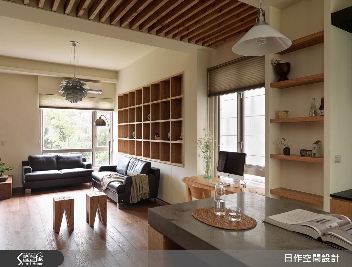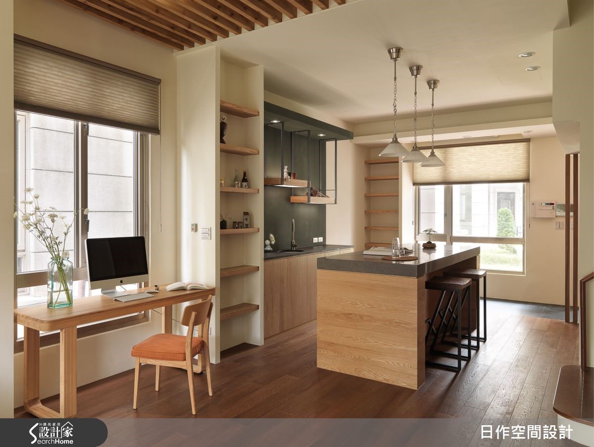 温煦日光、绿意木色,回到家彷彿来到森林中的木屋!位于新北市林口区的 80 平方米透天别墅,以香杉、柚木、栓木等木材质铺叙自然语彙,打造 4 房 4 厅,并融入实用收纳机能和清爽色调,为一家 4 口绘上舒畅爽朗的生活表情。客厅和餐厨区域以开放式设计连结,採光优良的空间採大面开窗,揽入户外舒适绿意和日光,沙发背墙嵌入木质展示柜,摆入喜爱的装饰和纪念品,成为生活中的美好端景。天花利用木榫作出造型,巧妙衔接客厅和餐厅间的过渡区域,下方迎窗处摆上桌椅,将封闭的电脑使用区移至公共领域,增加家人间的生活互动。向前走进开放式餐厨,观音山石檯面以典雅褐灰色泽,带来沉澱心灵的效果;收纳上则将柱体两侧包覆,採用木质隔板营造深度,虚化樑柱的存在感。楼梯侧边设置一面木质格栅,让光线能在疏漏间变换为巧緻光影,从另一旁的阶梯步行向上,来到一家 4 口的卧室,墙面上分别绘上抹茶绿、柠檬黄、靛灰等色彩,为空间换上不同表情,也因应居住者需求纳入书房、收纳,以及增设可塗鸦墙面的机能性。小编的最爱你也喜欢充满自然感的木材质吗?除了浑然天成的脉纹肌理,走进家中,空气中也隐约飘散着木材质专属的淡淡香气,十分怡人呢!